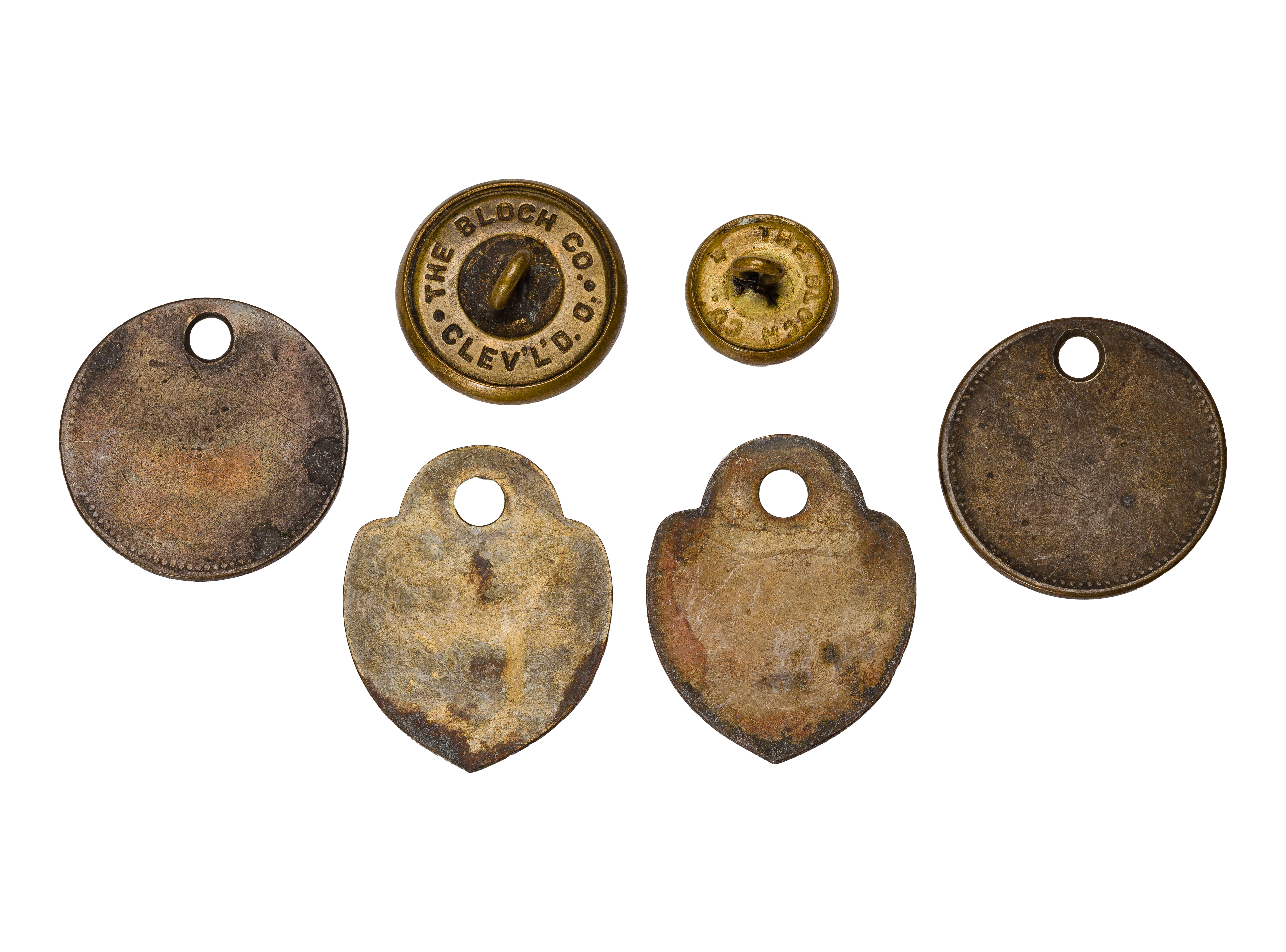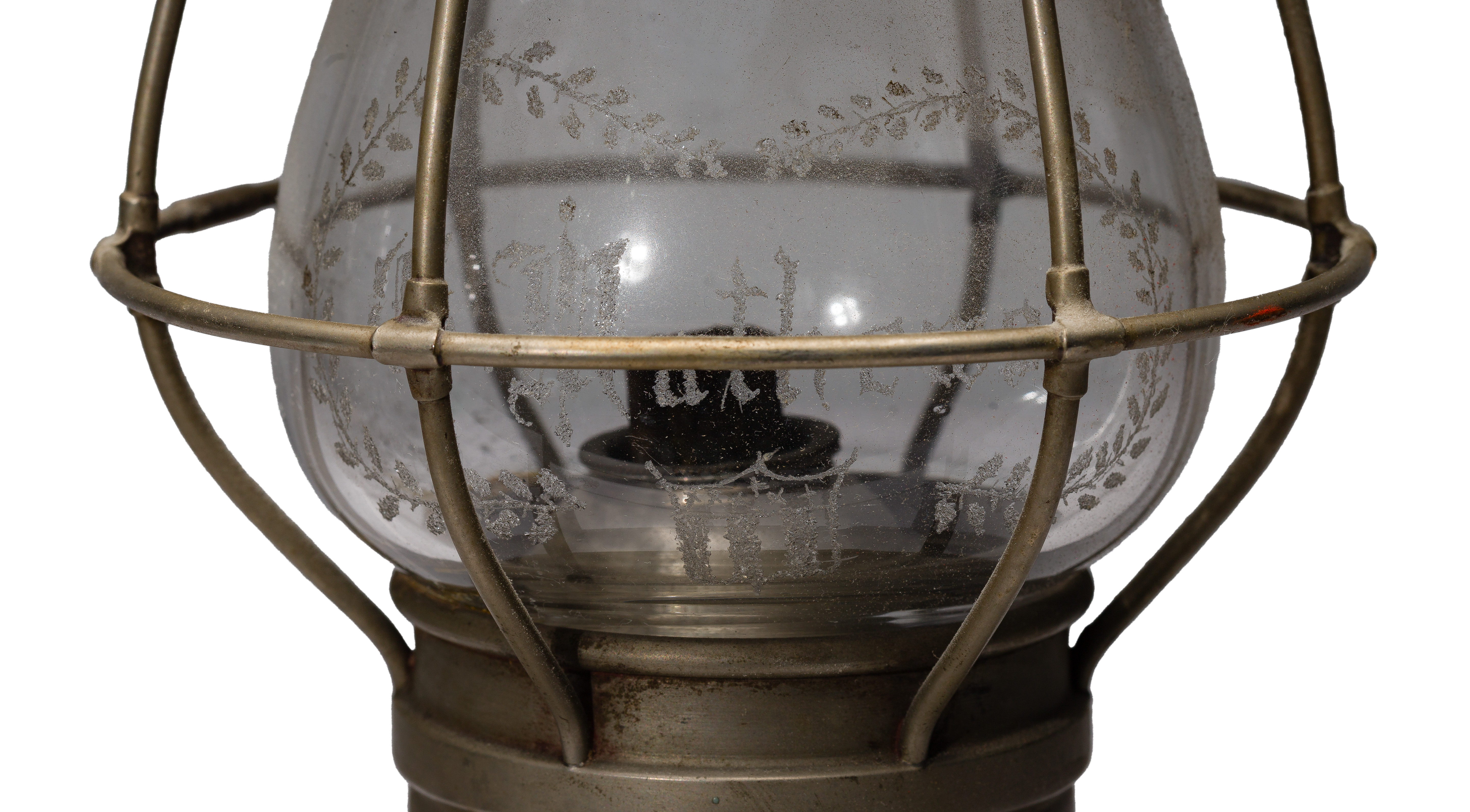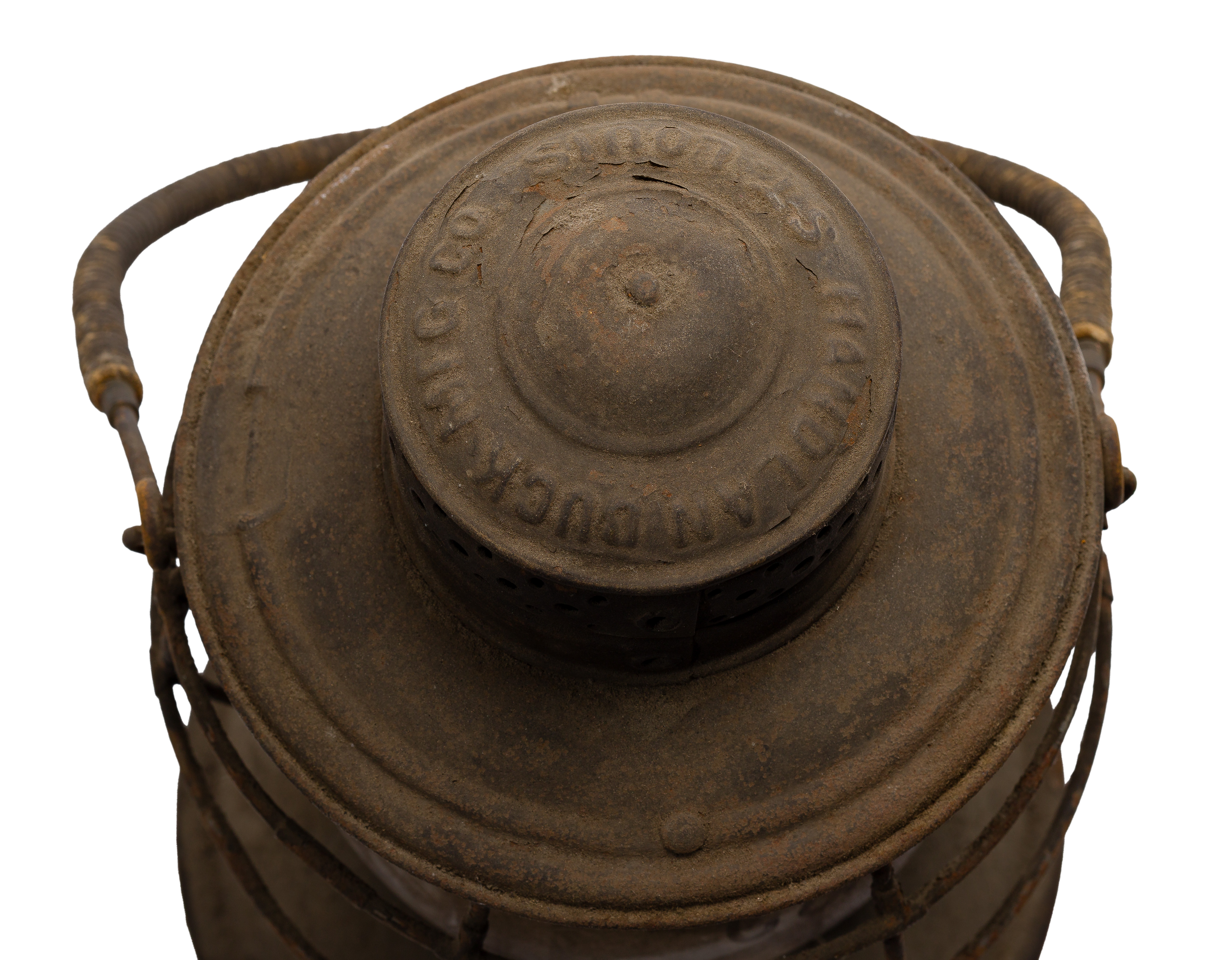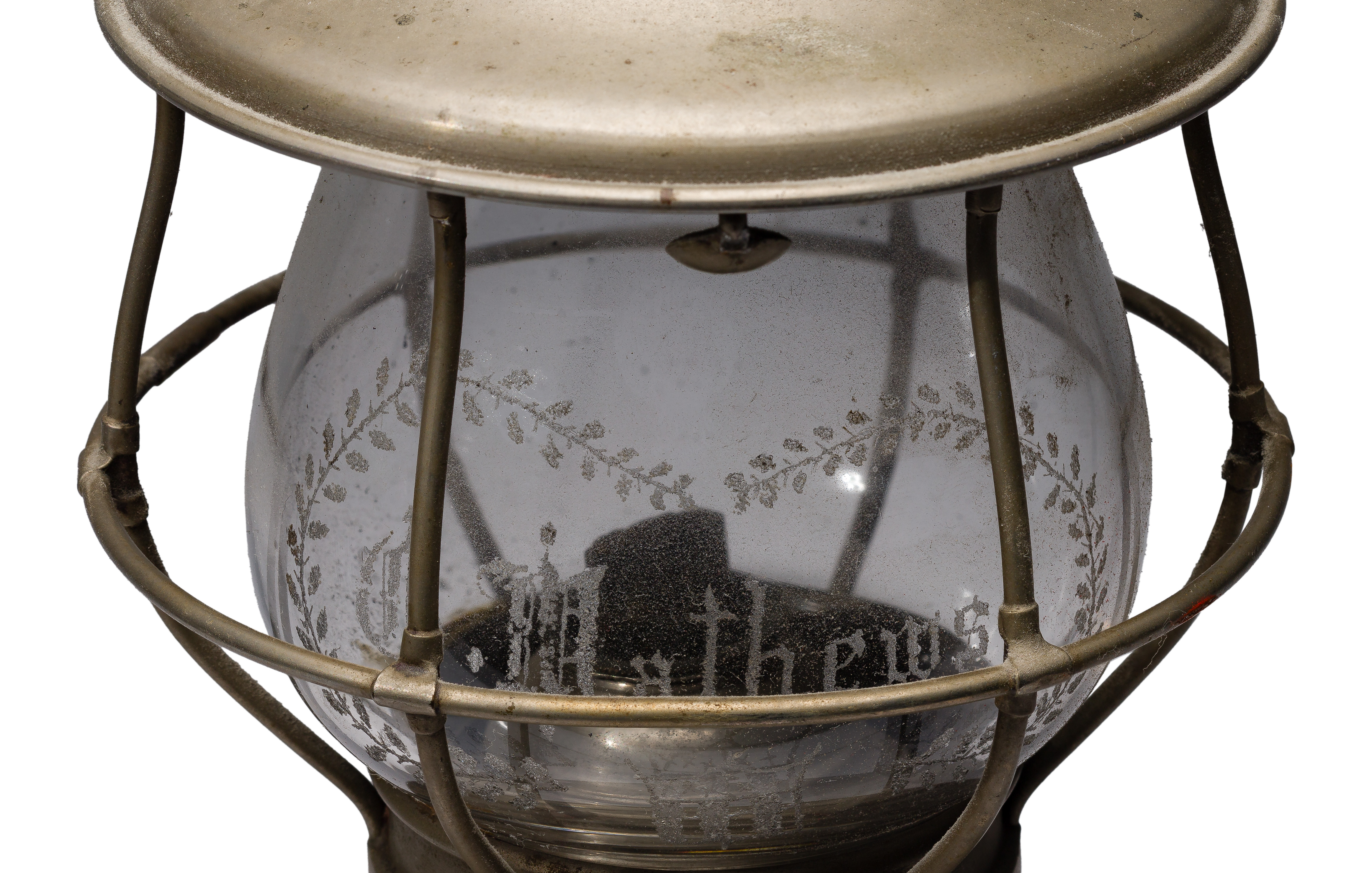 (9) total items including a Handlan and Buck lantern body embossed ‘Wabash R. R.’ with a glass insert marked ‘C. & P. R. R.’, an Adam and Westlake lantern having ‘P & P U. R. Y.’ embossed on body and an unmarked lantern having an etched and monogrammed glass insert; together with buttons and railroad tokens