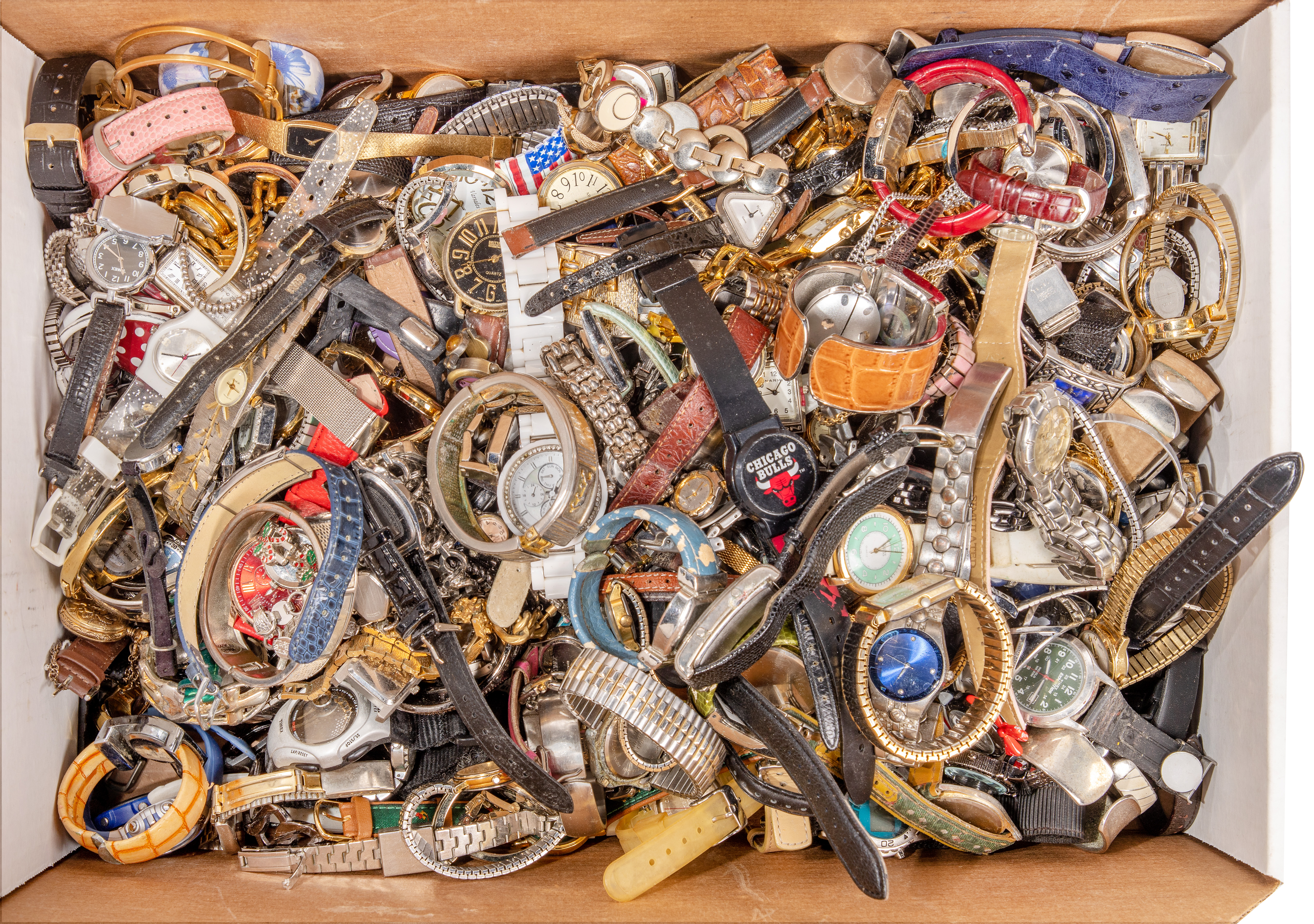 Approximately (20) pounds of fashion style watches from makers including Timex, Bulova, Witnauer and Guess, in various shapes and sizes