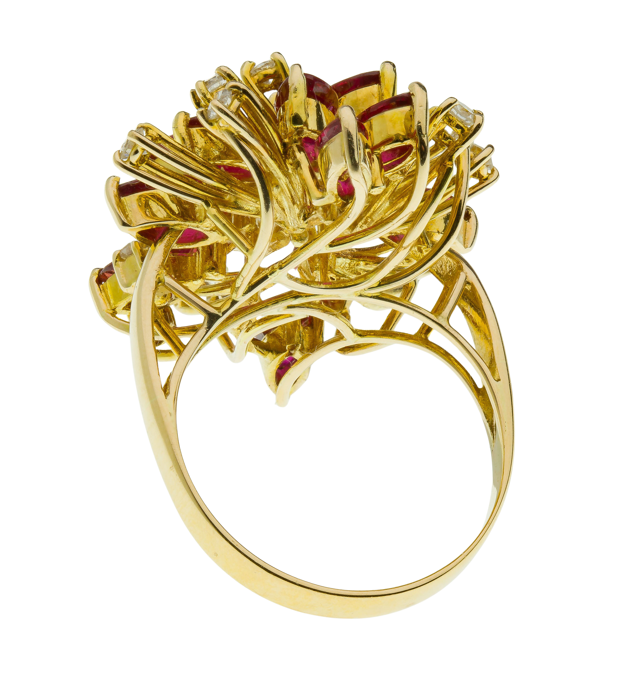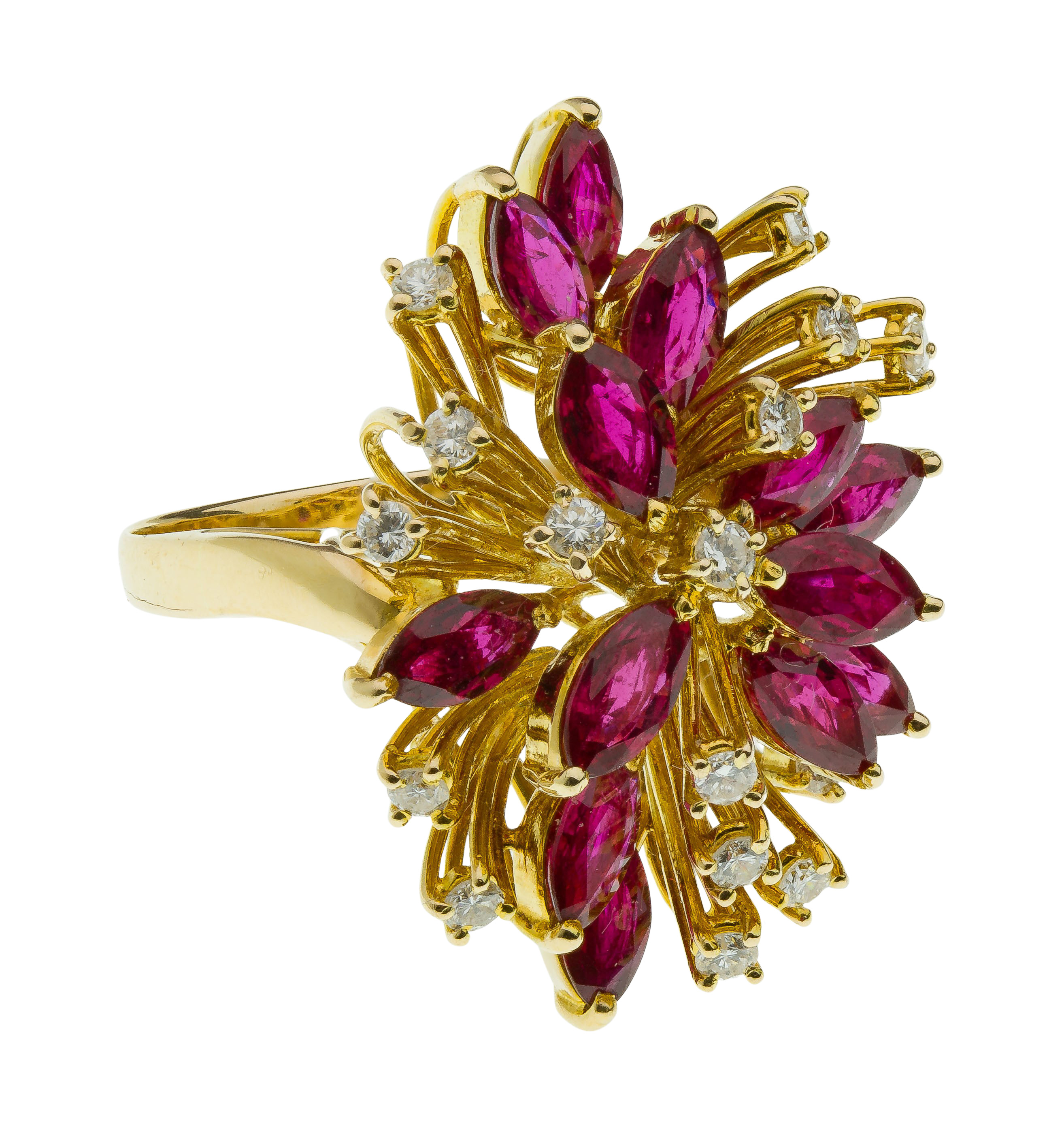 Having a cluster of marquis cut rubies and round cut diamonds (unmarked)