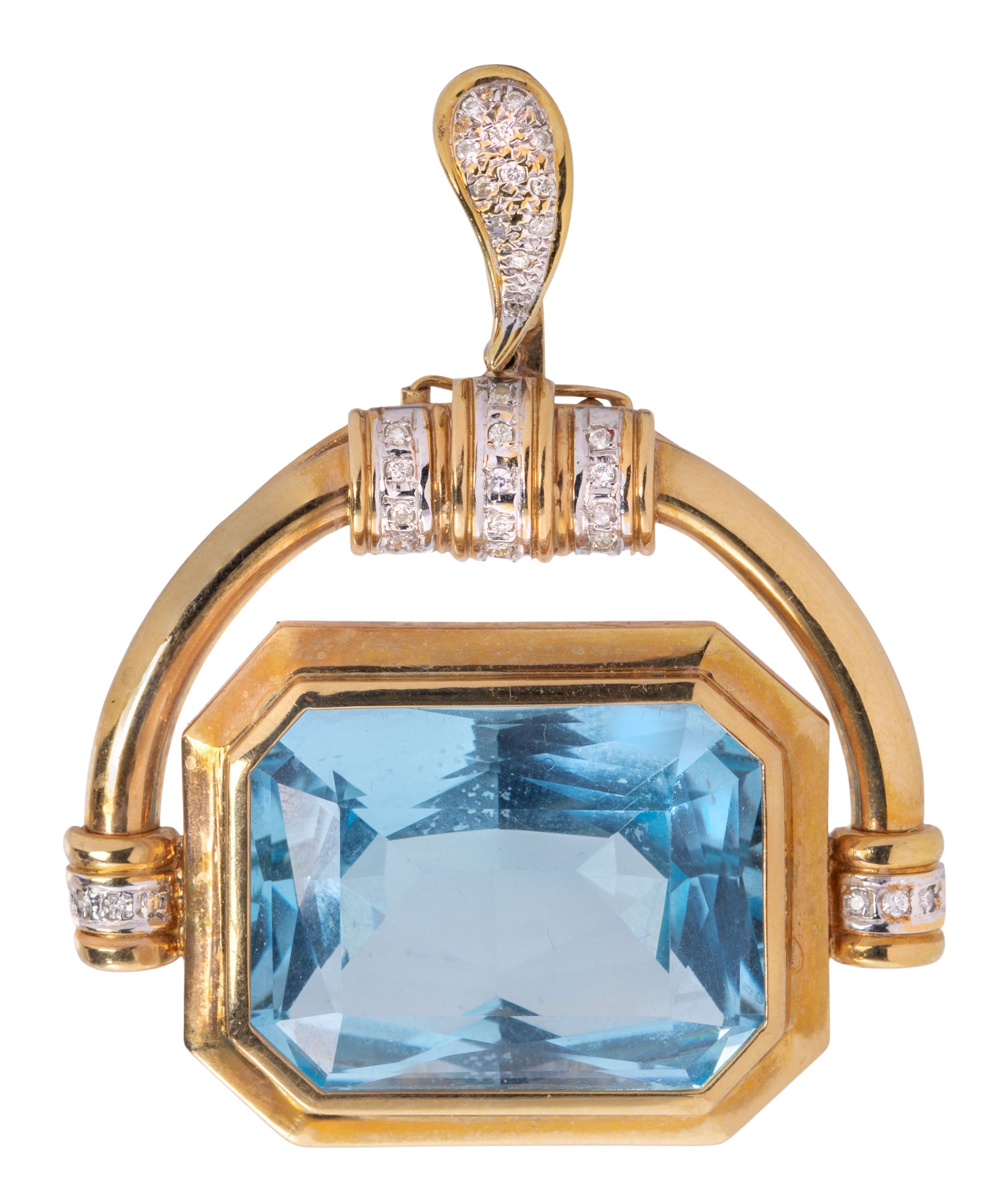 14k Yellow Gold, Blue Topaz and Diamond Pendant