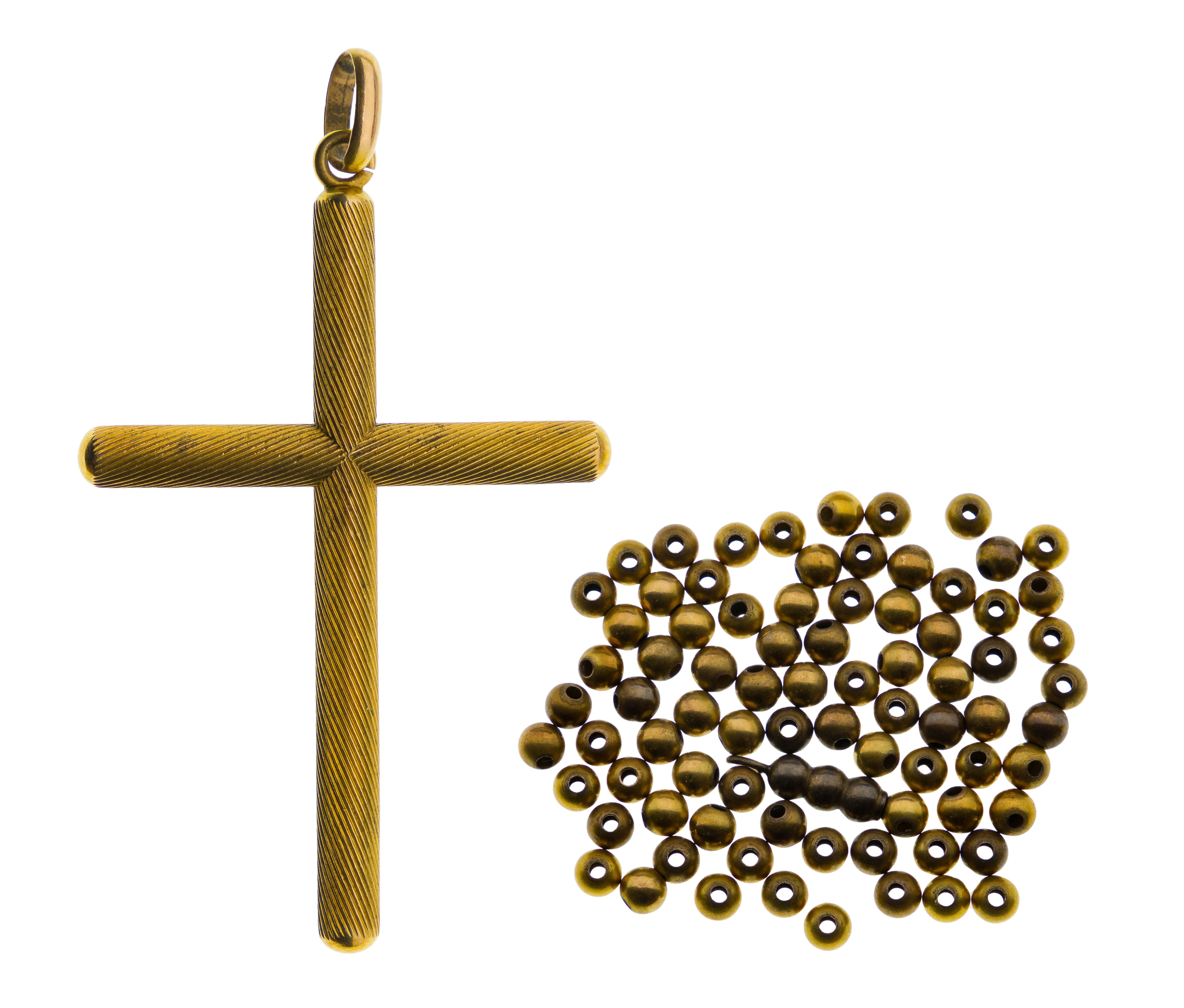 (2) items including a cross pendant and loose beads (unmarked 21k / 20k)