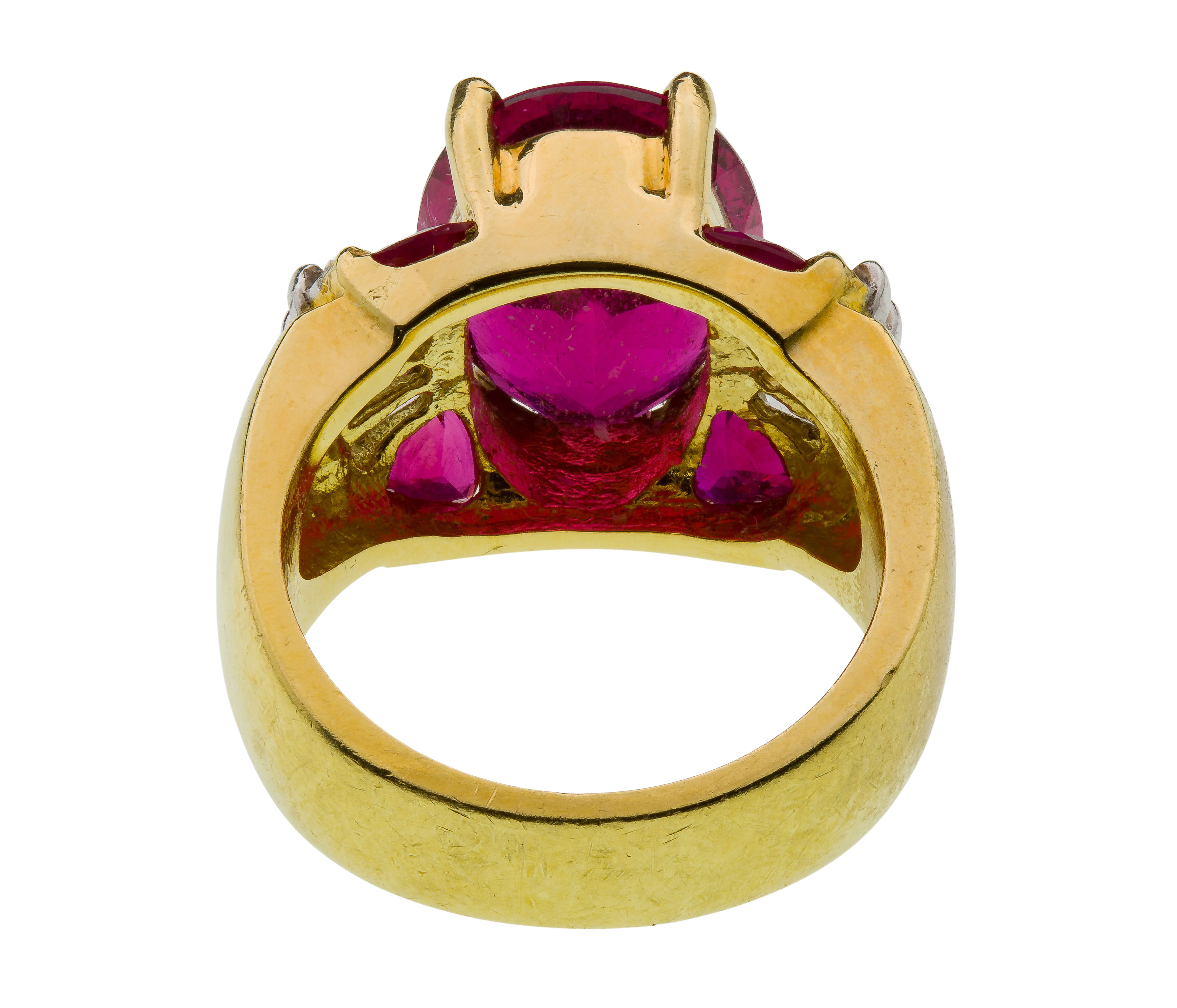 Hubert 18k Yellow Gold, Rubellite Tourmaline and Diamond Ring