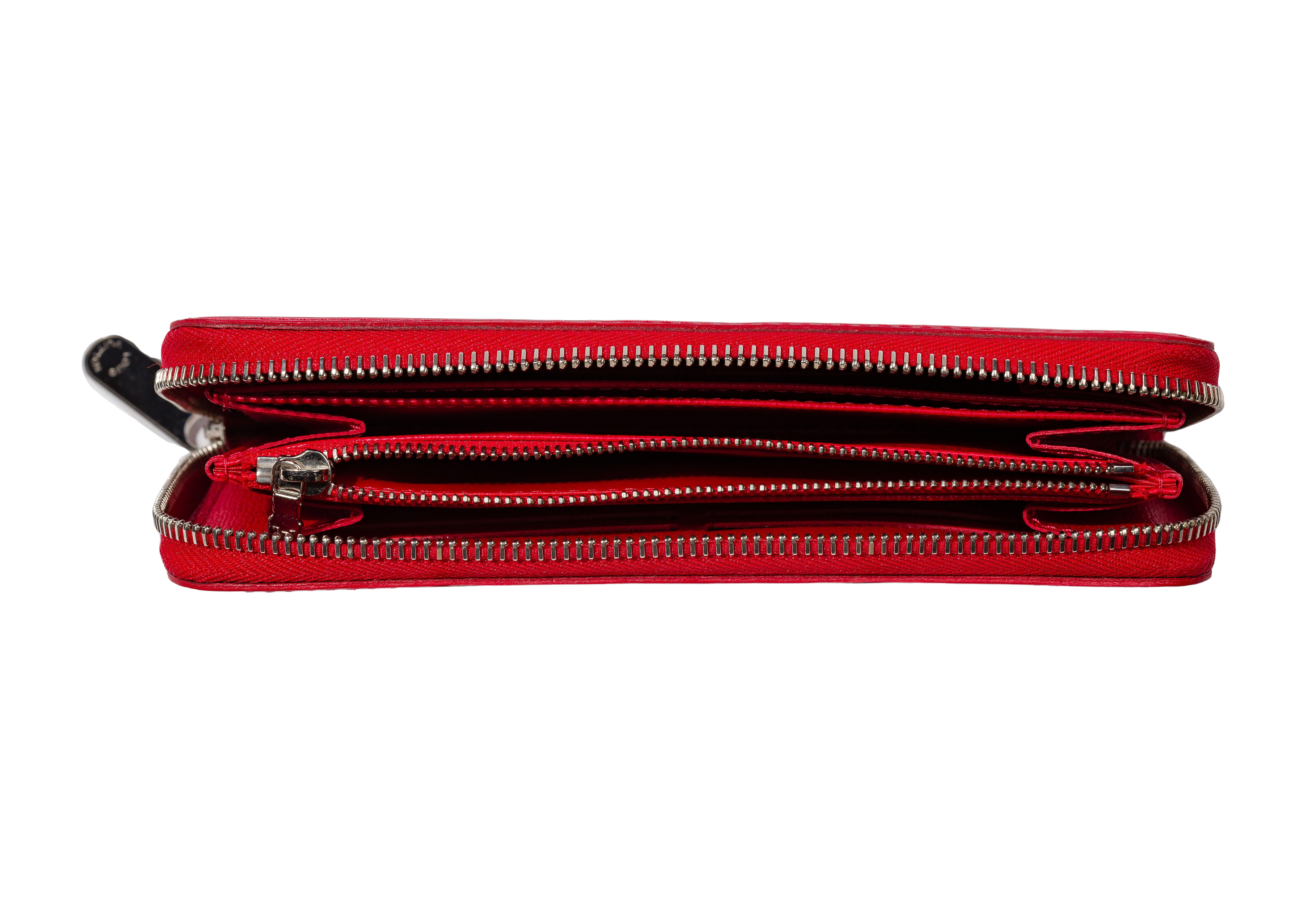Condition: overall light wear consistent with normal use, minor staining on purse interior bottom, wallet appearing unused