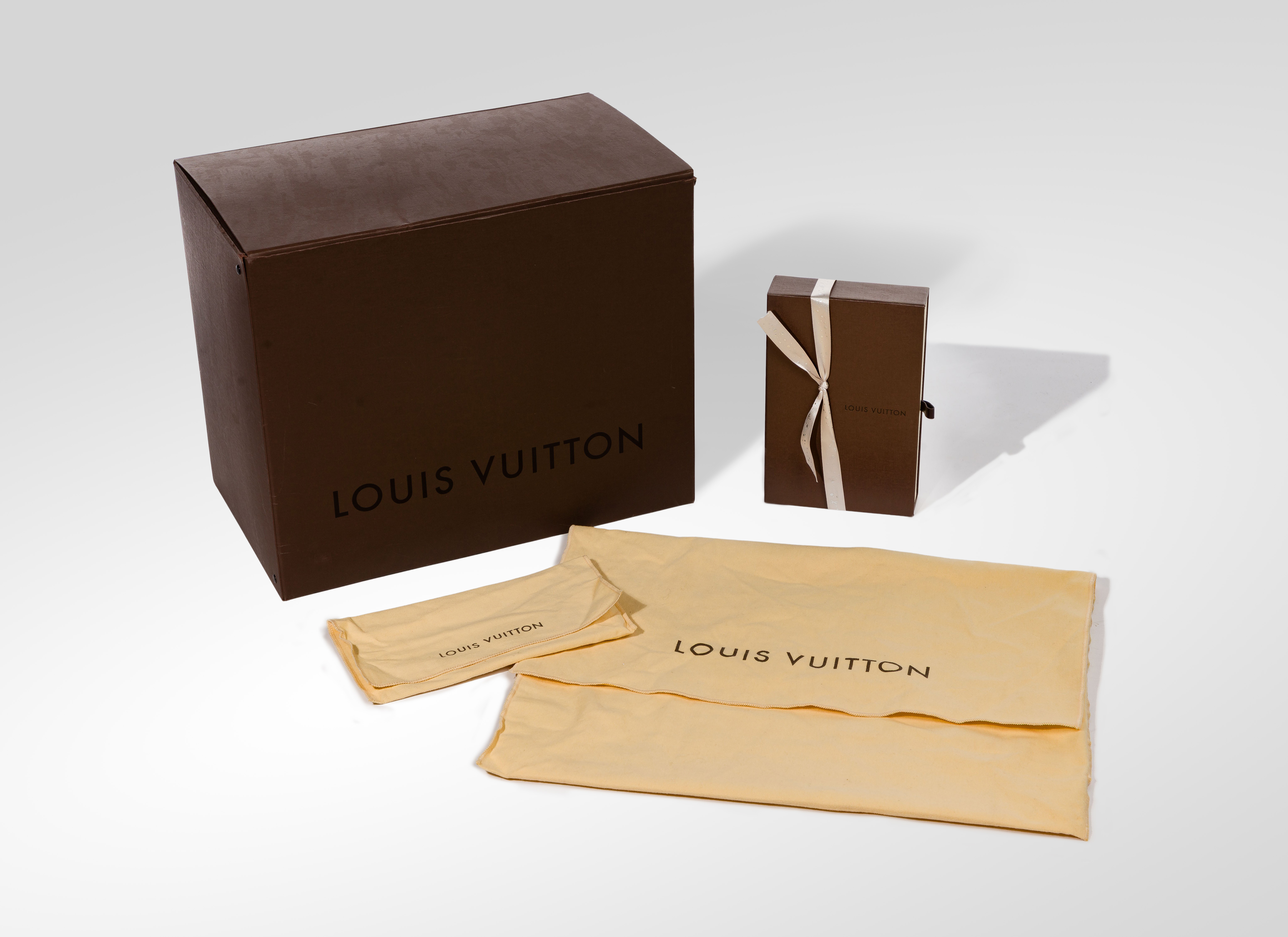 (2) items including a handbag having a textured ribbed appearance, zipper enclosure, interior side pocket, internal leather Louis Vuitton tag #A86086, dust bag and a Louis Vuitton storage box as well as a matching Epi wallet, dust bag and original box