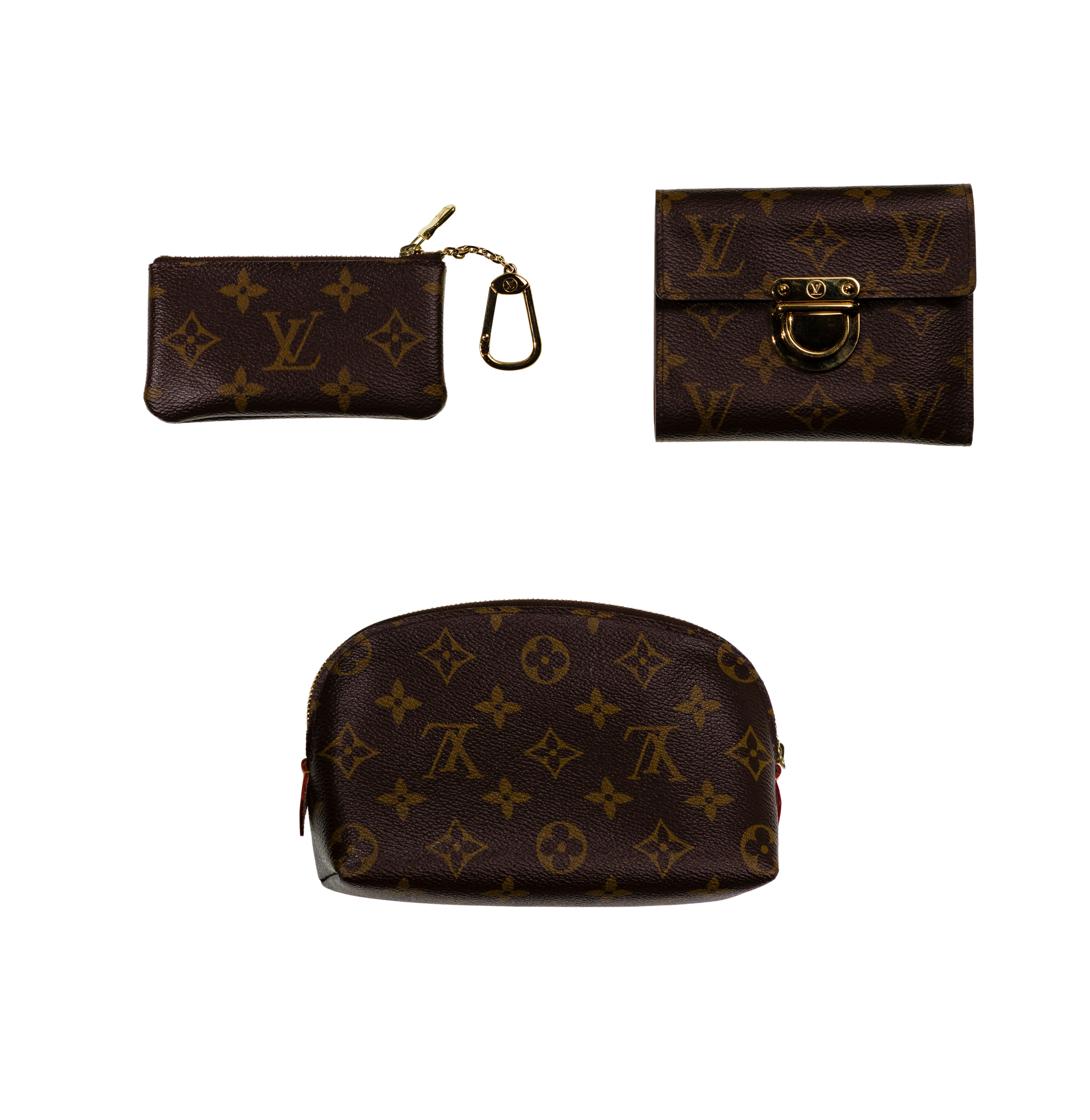 (3) items including a monogram koala wallet, a key chain pouch and a zipper pouch having dust bag, most including boxes