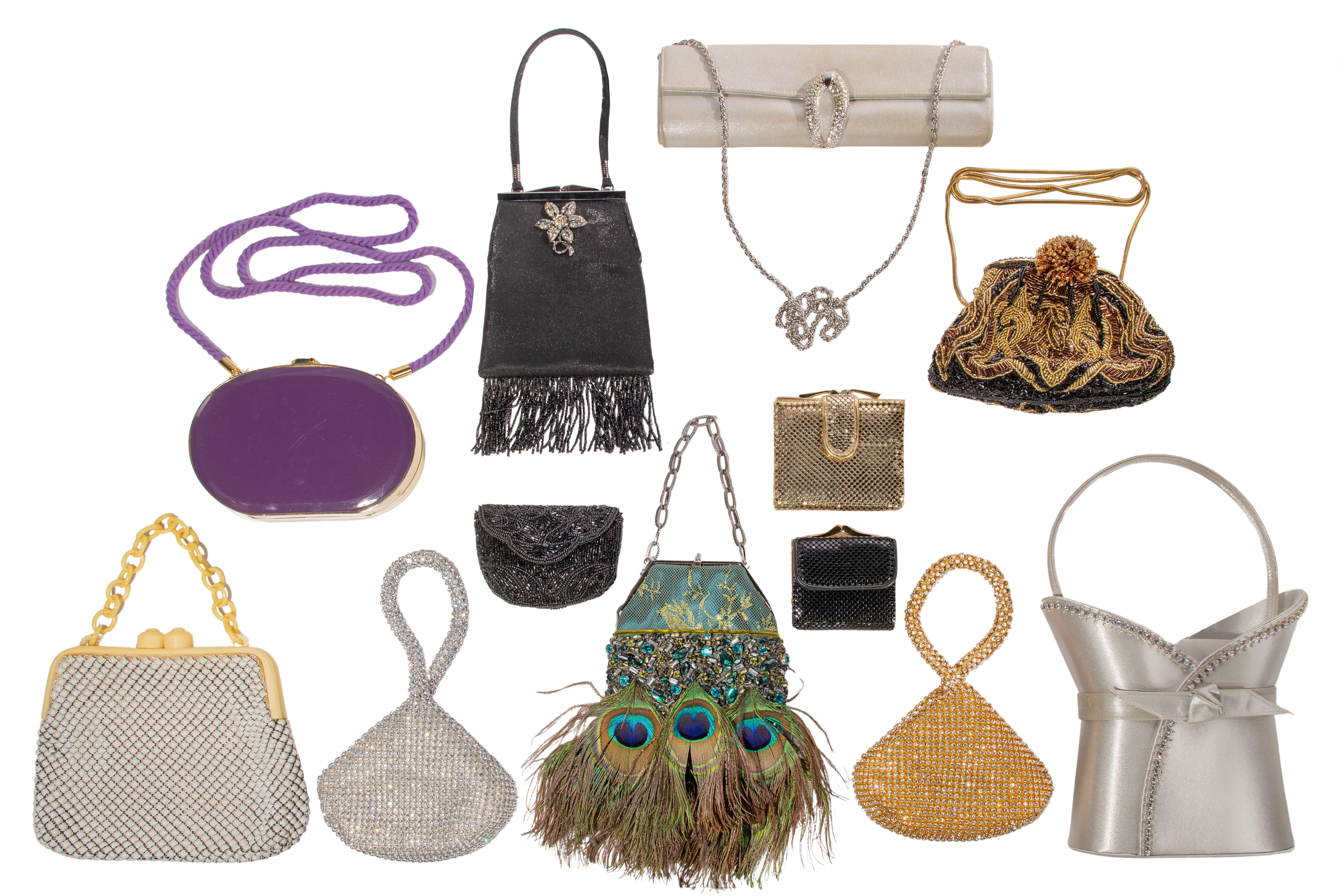 (12) items including evening handbags and wallets in various shapes, colors, materials and sizes by designers including Badgley Mischka, Whiting and Davis, Maggimeti and Liz Soto, some having dust bags