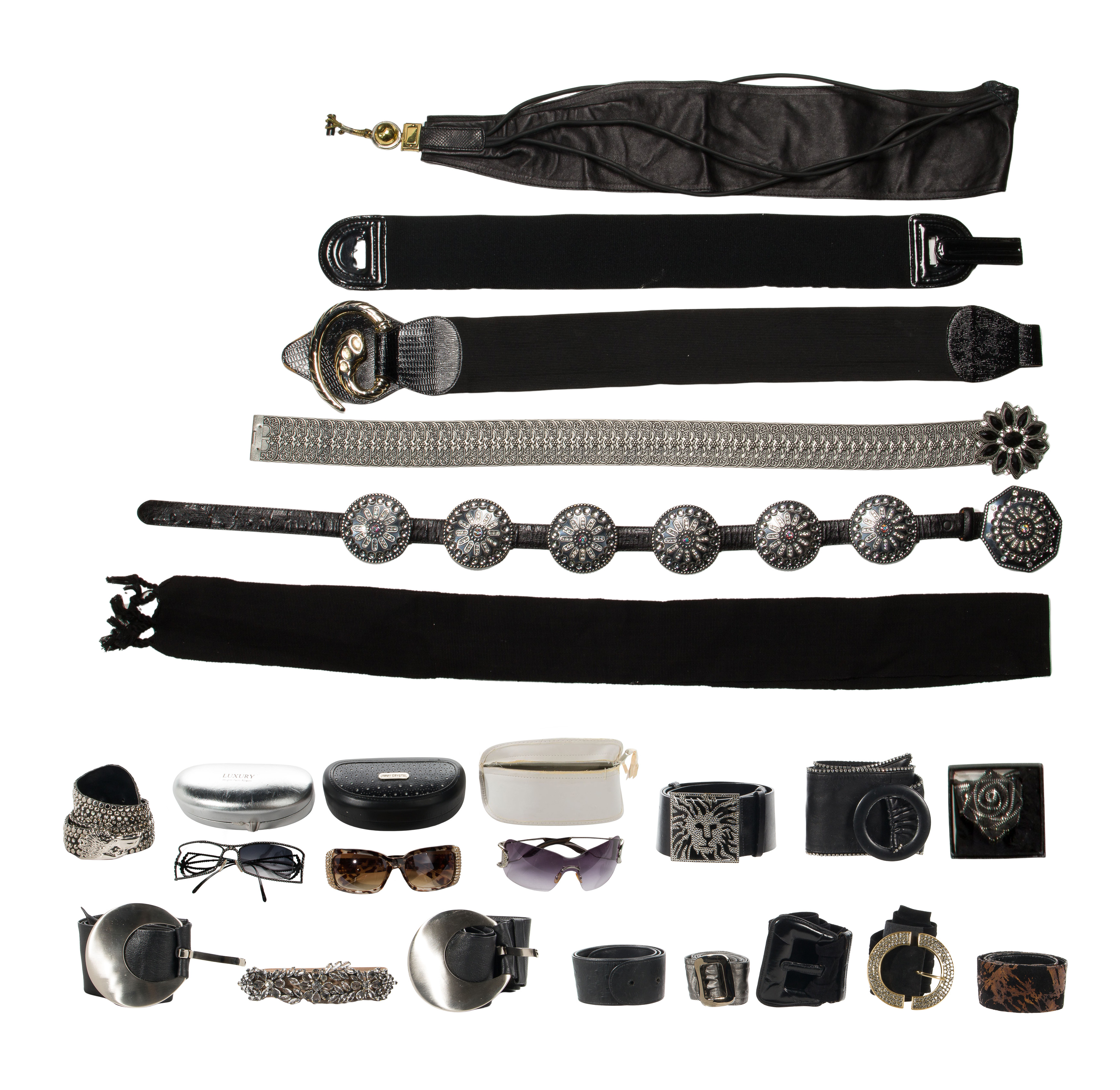 (19) total items including belts by Tony Lama, Kippy’s, Anne Klein, Maxazria, Ur-Kahn, Lallon and Abel, and sunglasses by Christian Dior, Jimmy Crystal, Paolo Albasini and some unmarked; together with a St. Johns bracelet having box