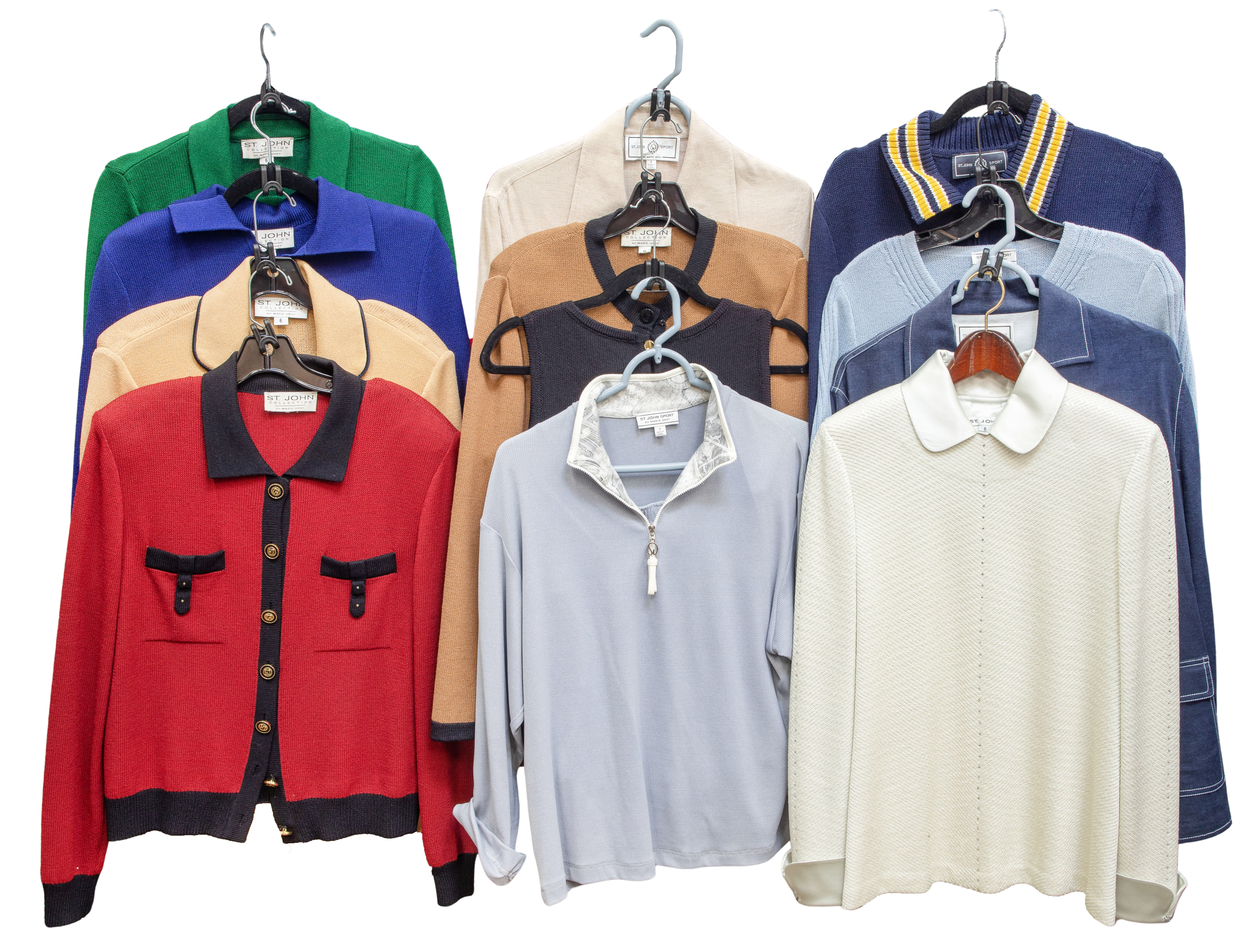 (171) items including pant suits, skirts suits, shells and jackets, in various fabrics, some having embellishments, all marked ‘St. John’
