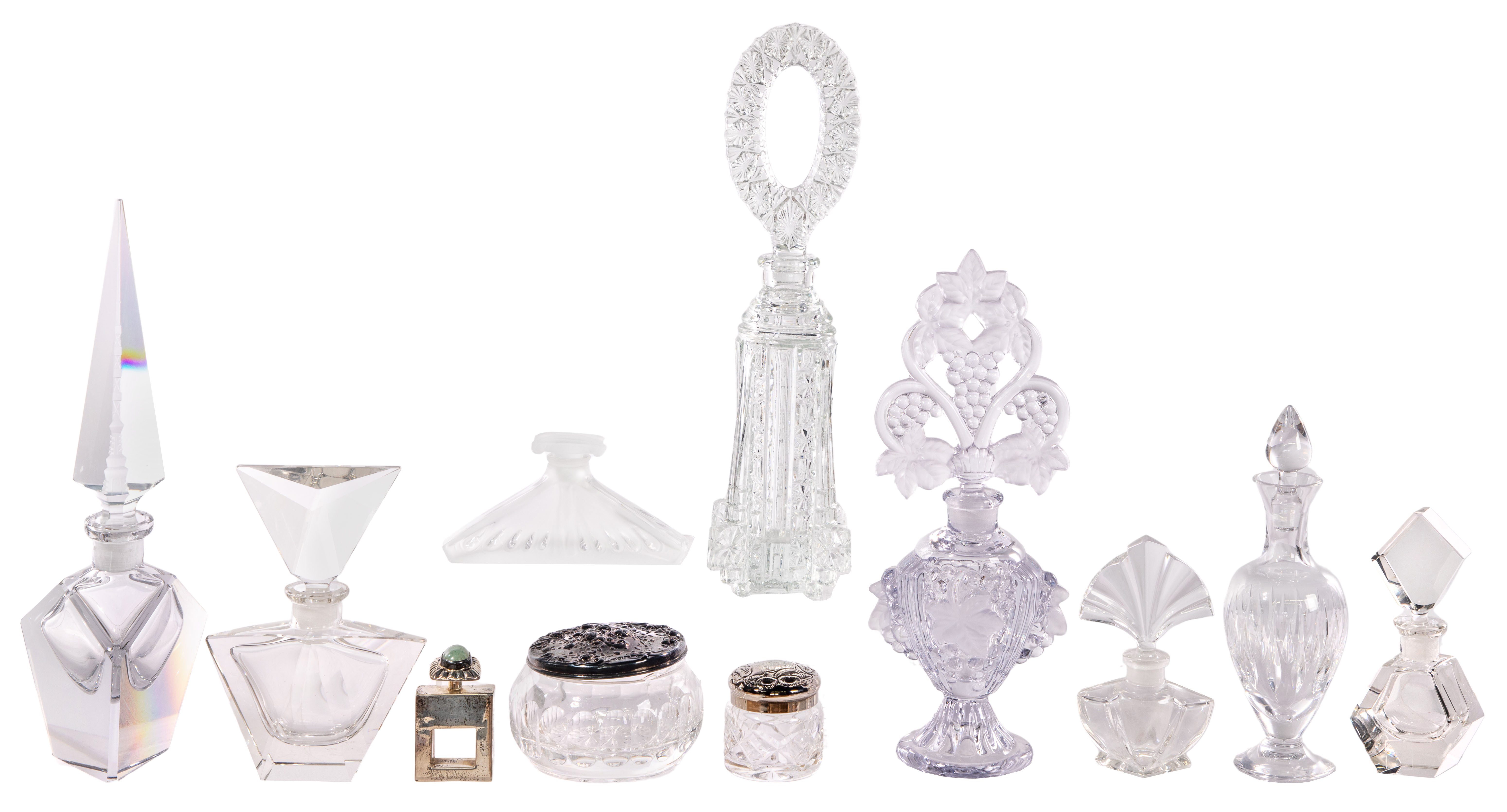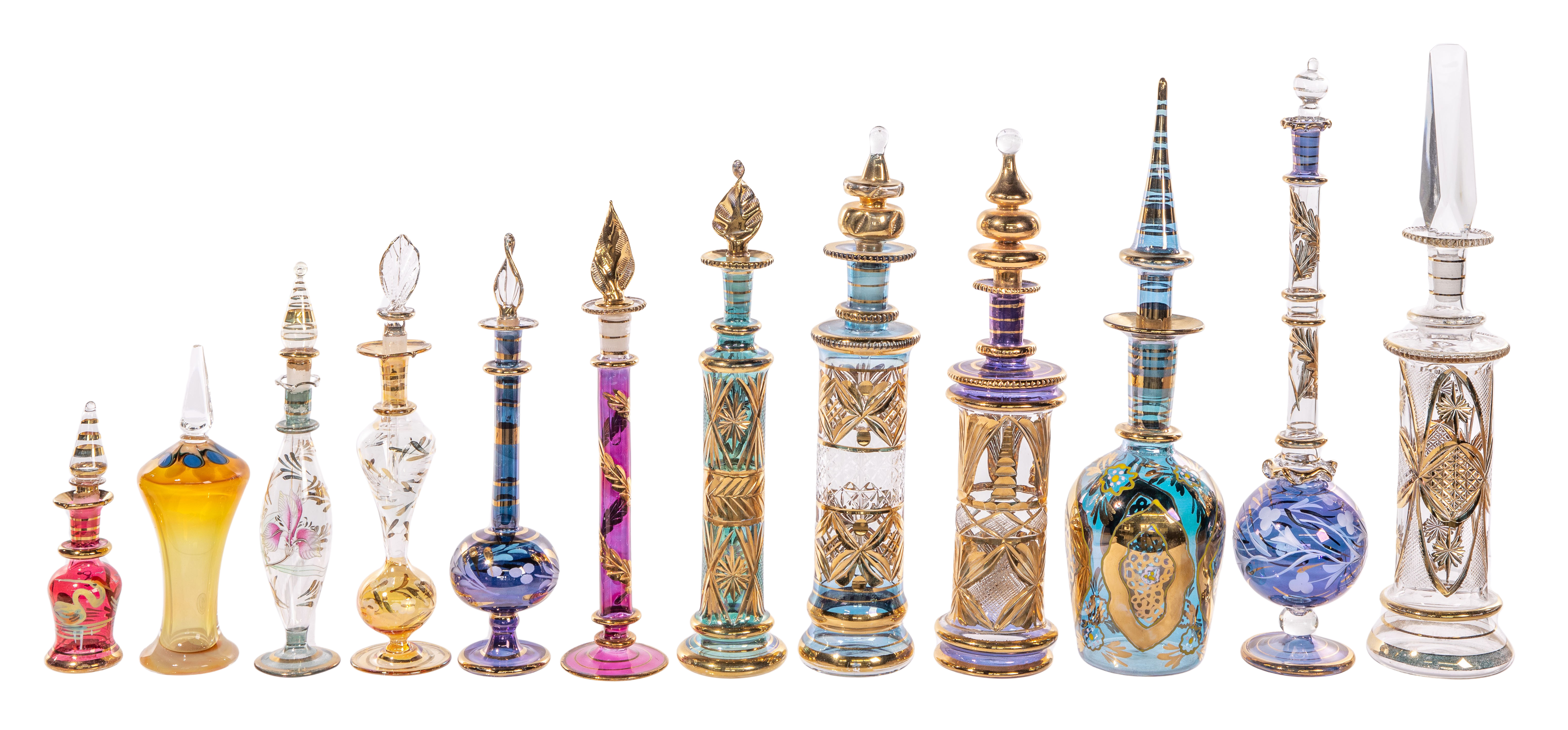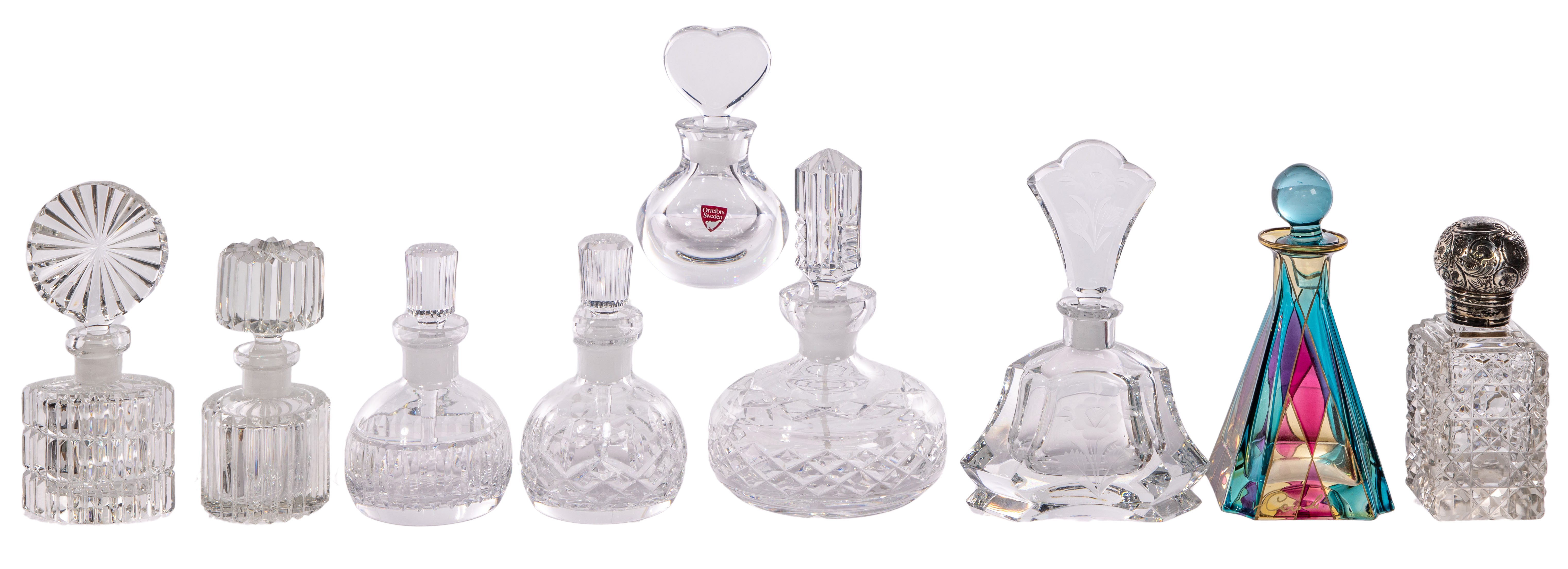 Approximately (30) items in various shapes, styles, colors and sizes including Egyptian glass, Orrefors, Bohemian cut, some silver noted