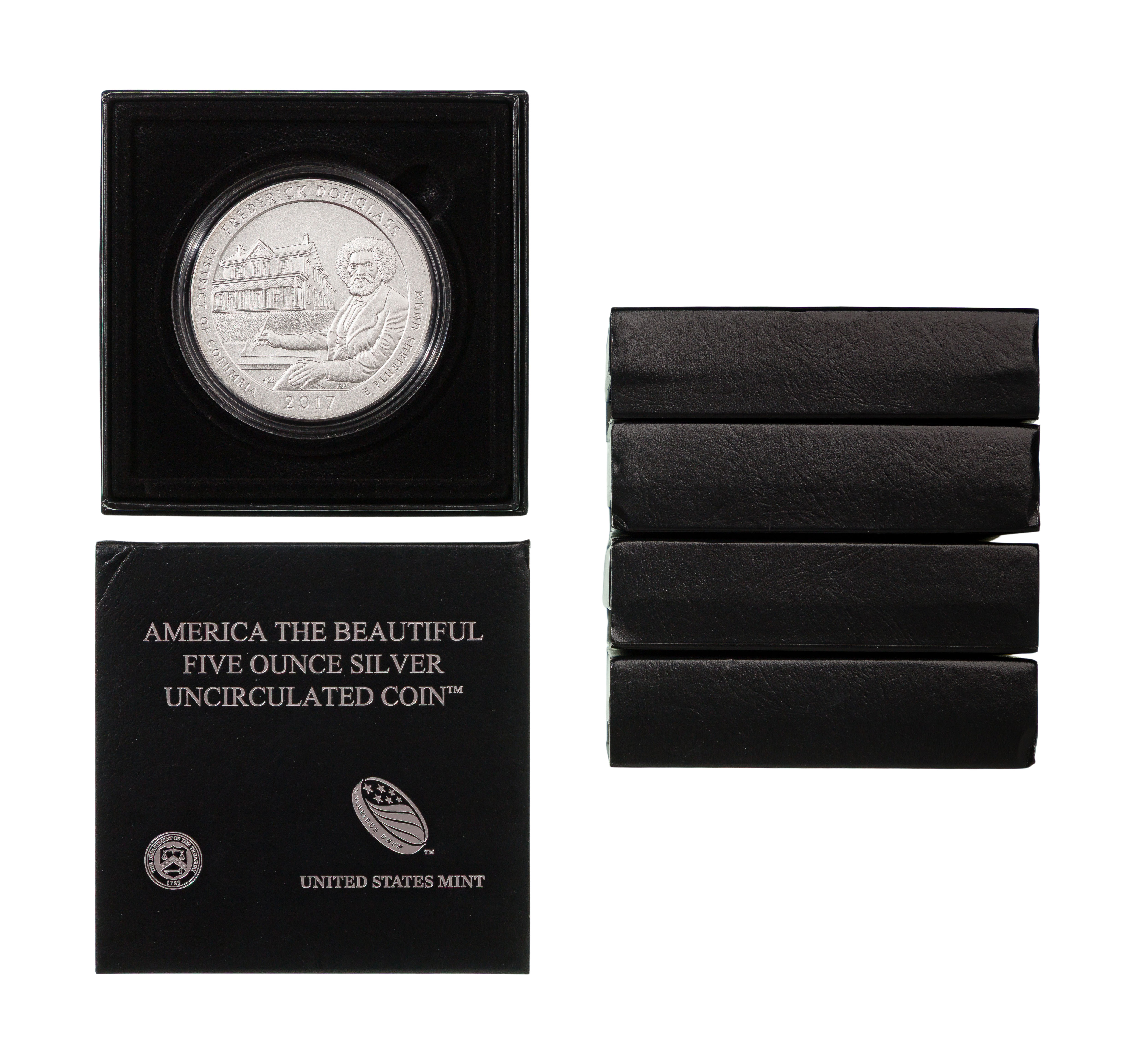 (5) coins including: Ellis Island, Effigy Mounds, Ozark National, Frederick Douglas, George Rogers Clark, having original mint packaging