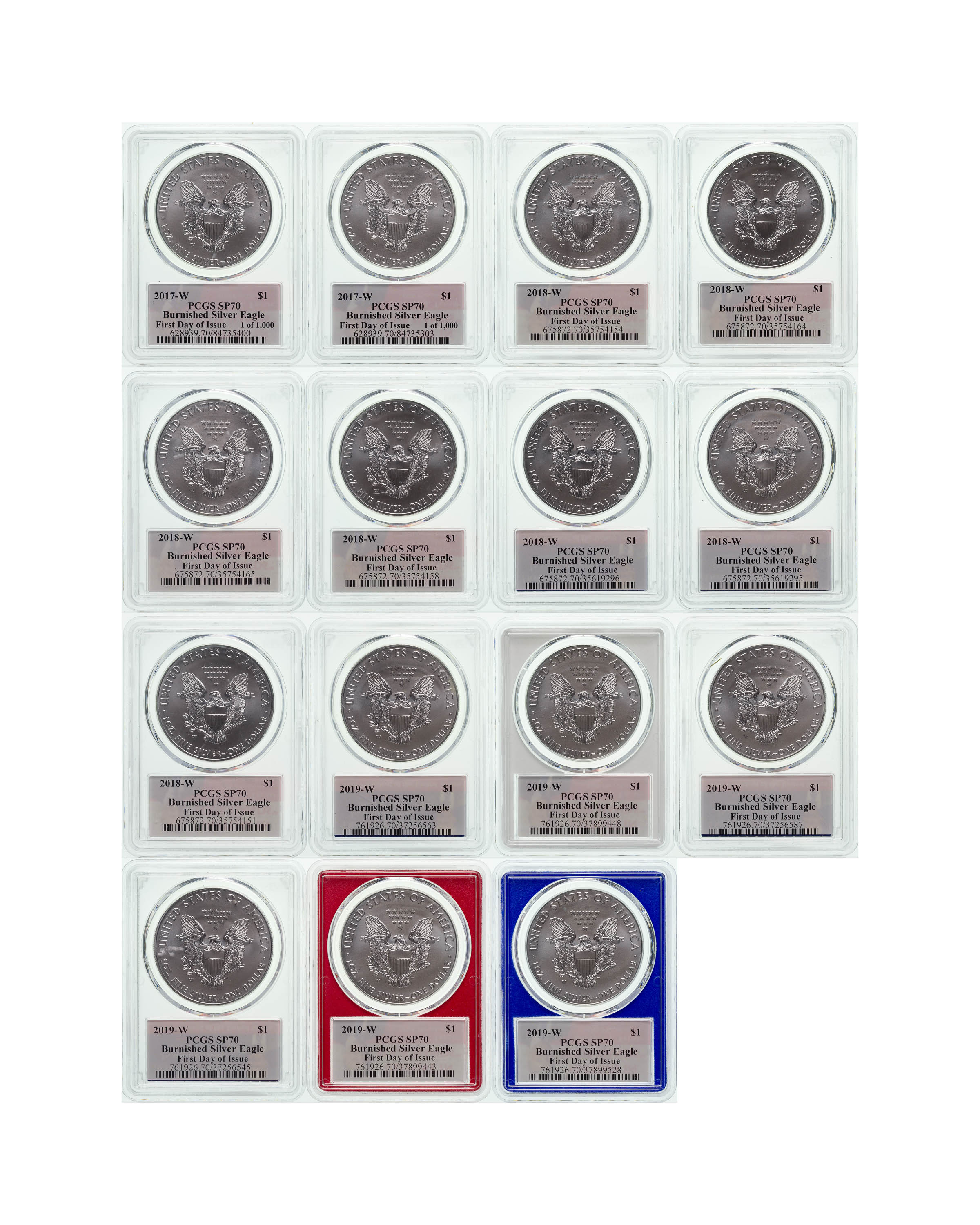 PCGS SP-70 Burnished Silver Eagle Collection