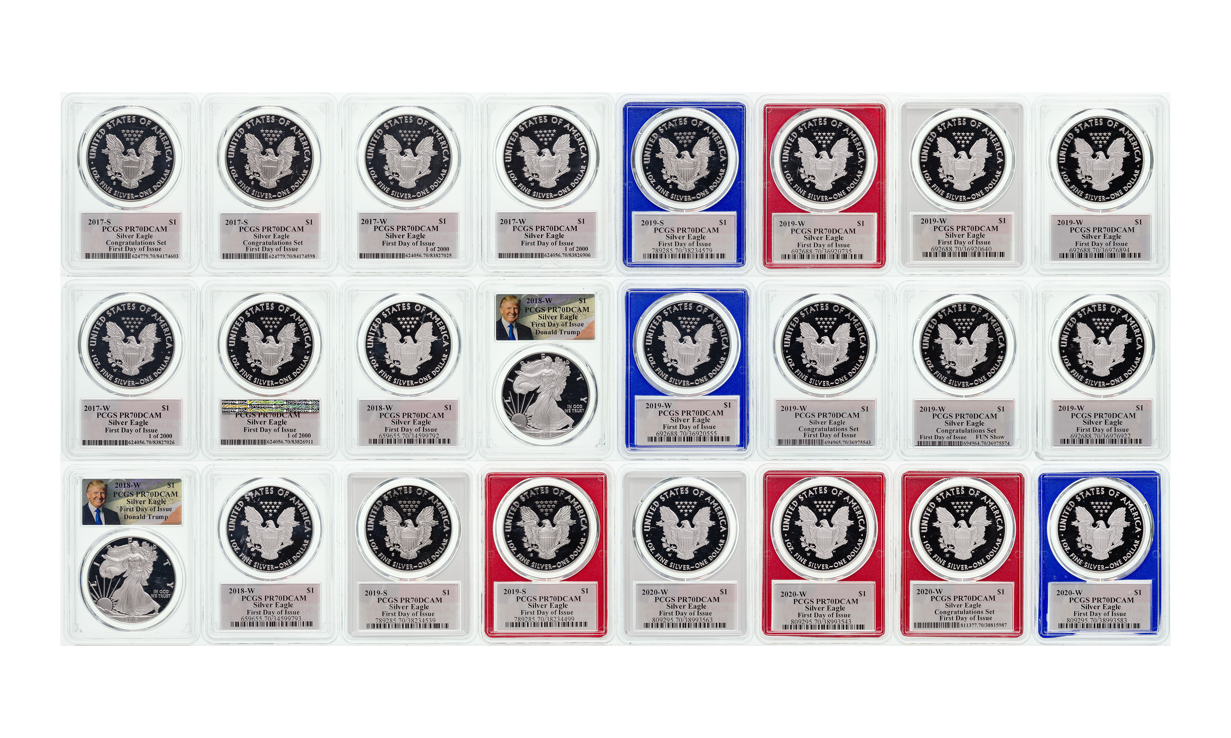 (24) coins including (2) 2017-S, (4) 2017-W, (4) 2018-W, (3) 2019-S, (7) 2019-W, (4) 2020-W, first day of issue, Donald Trump label