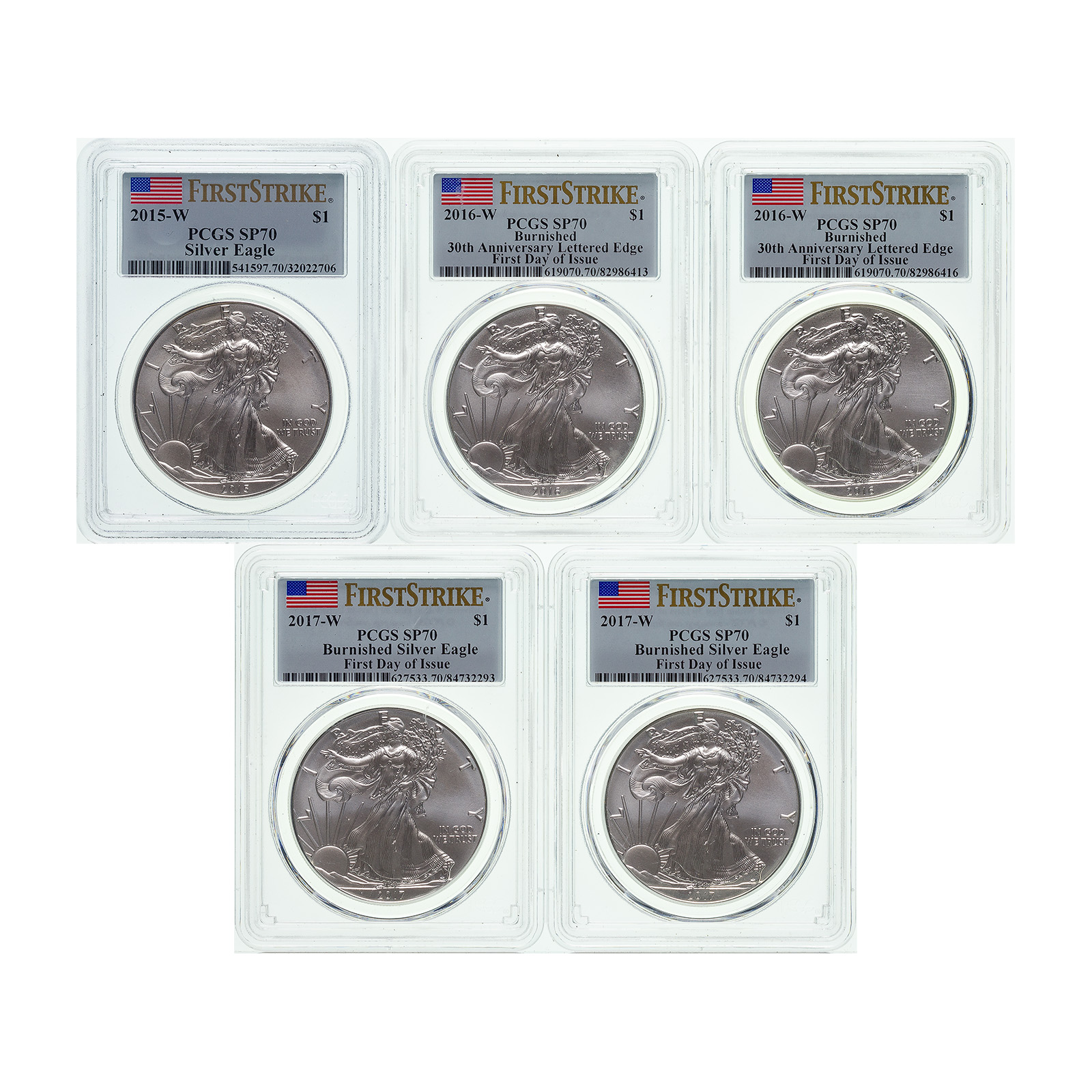 PCGS SP-70 Burnished Silver Eagle Collection