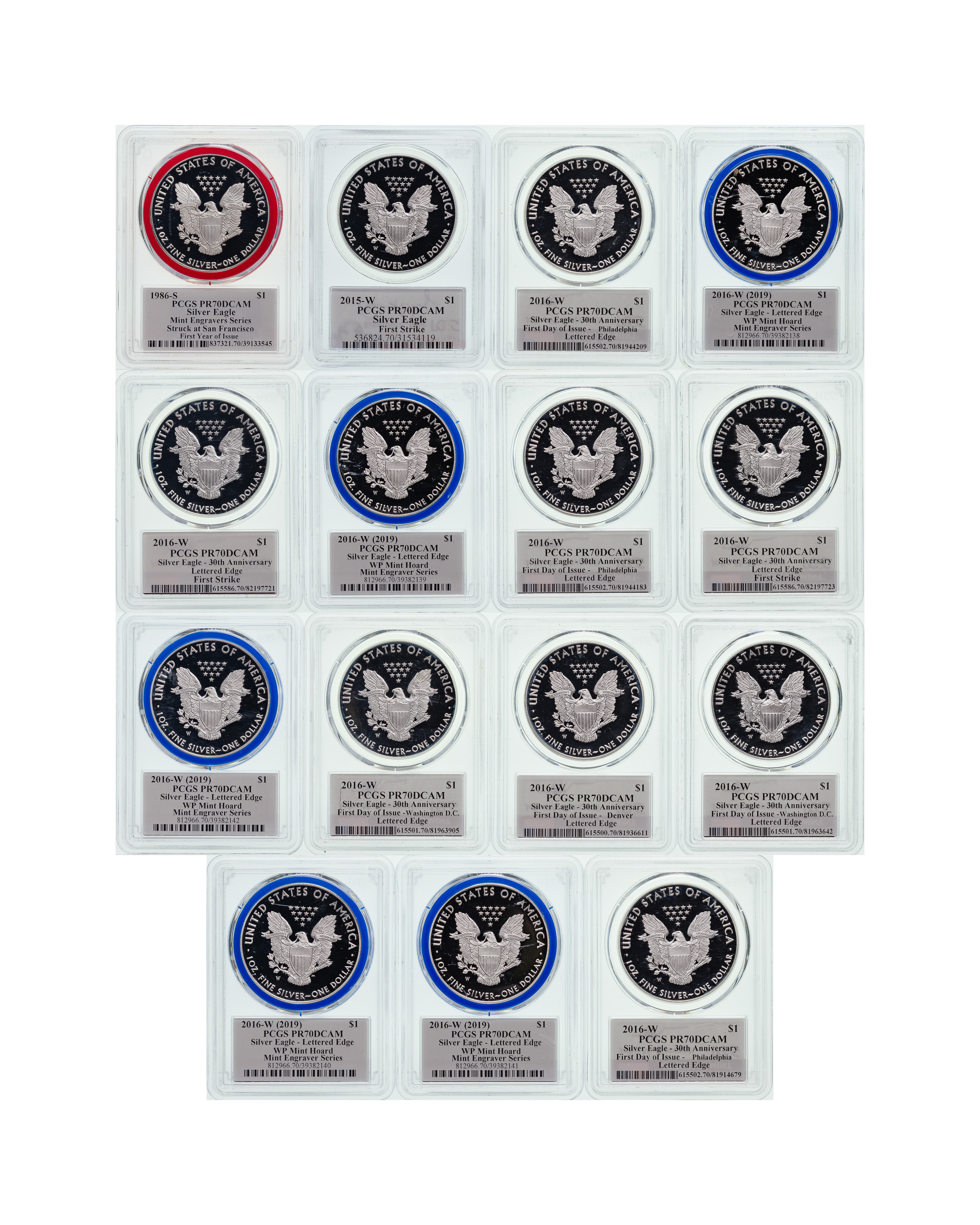(15) coins including: 1986-S, 2015-W, (13) 2016-W, mint engraver series