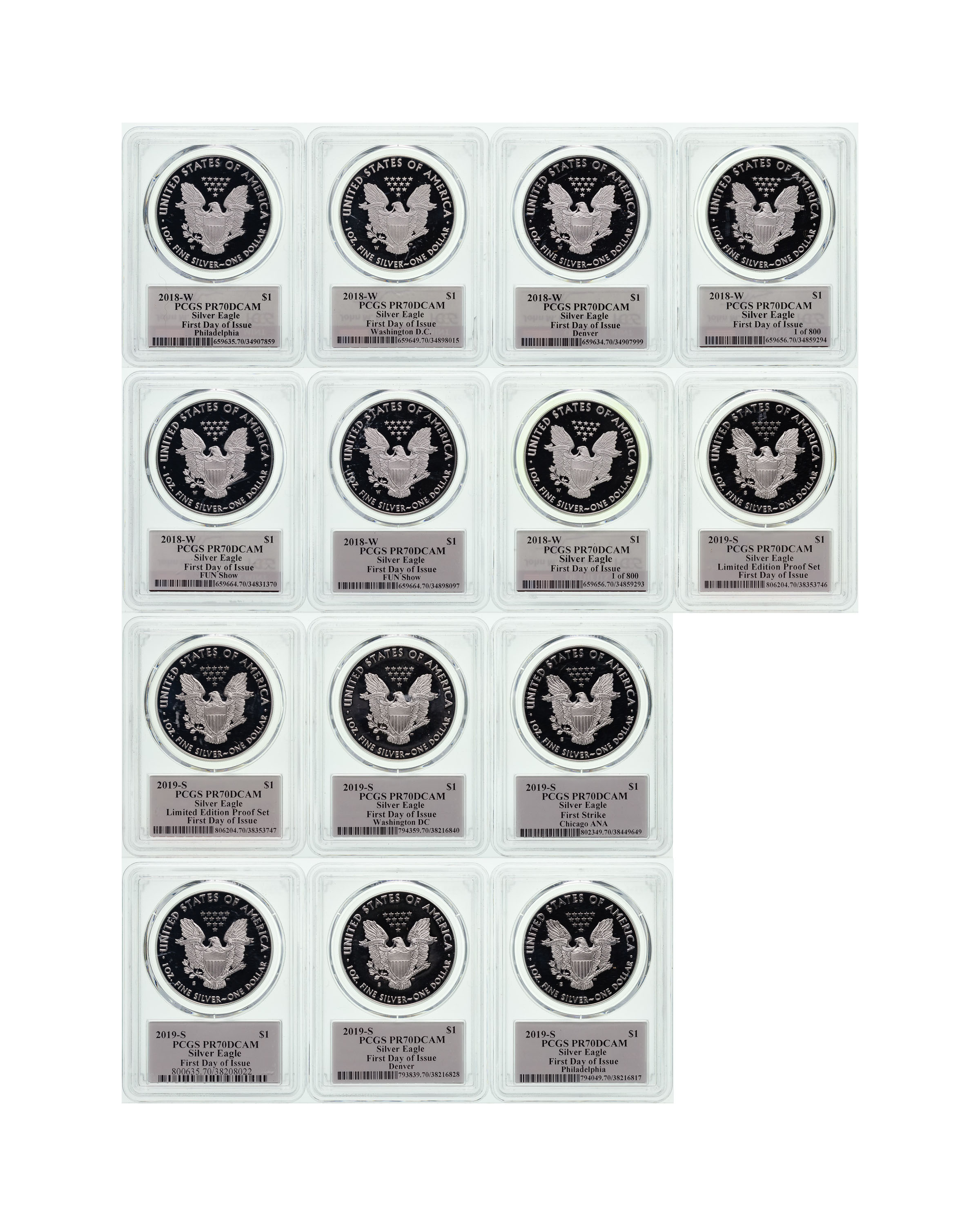 (14) coins including: (7) 2018-W, (7) 2019-S, mint engraver series