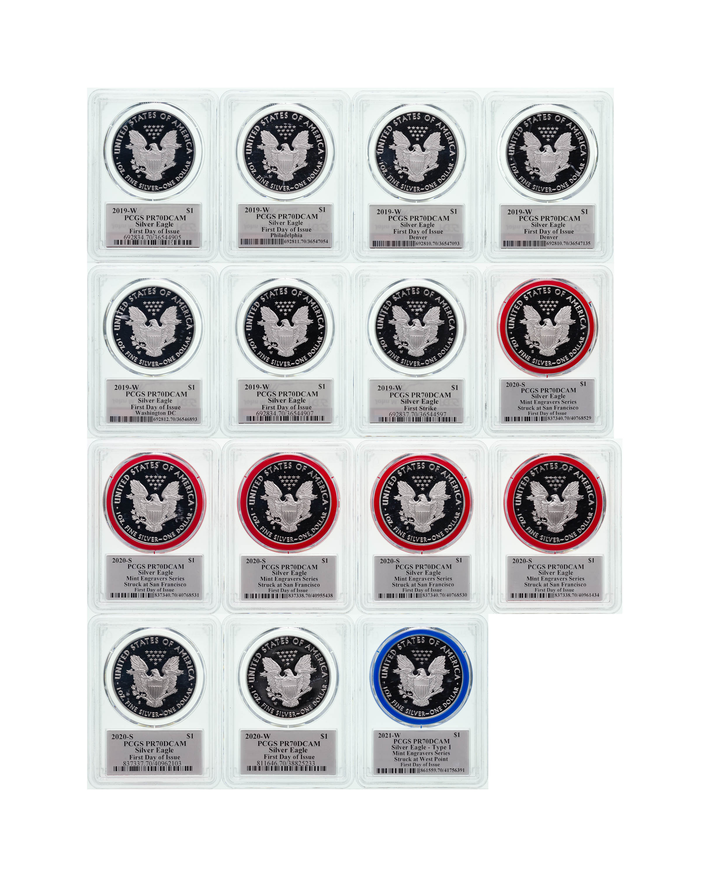 PCGS PR-70 DCAM Silver Eagle Collection