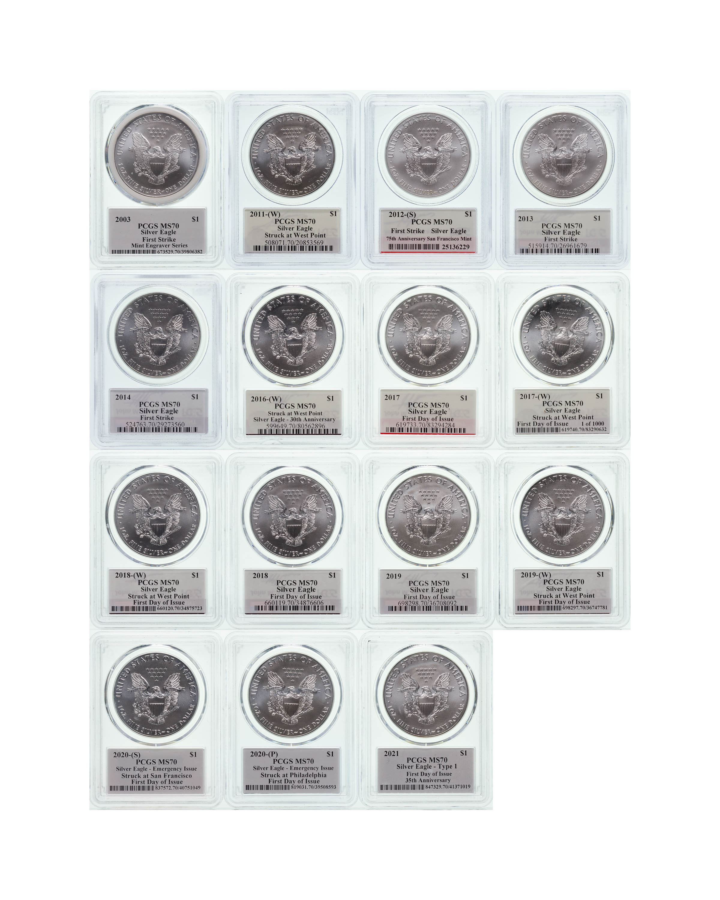 PCGS MS-70 Silver Eagle Collection