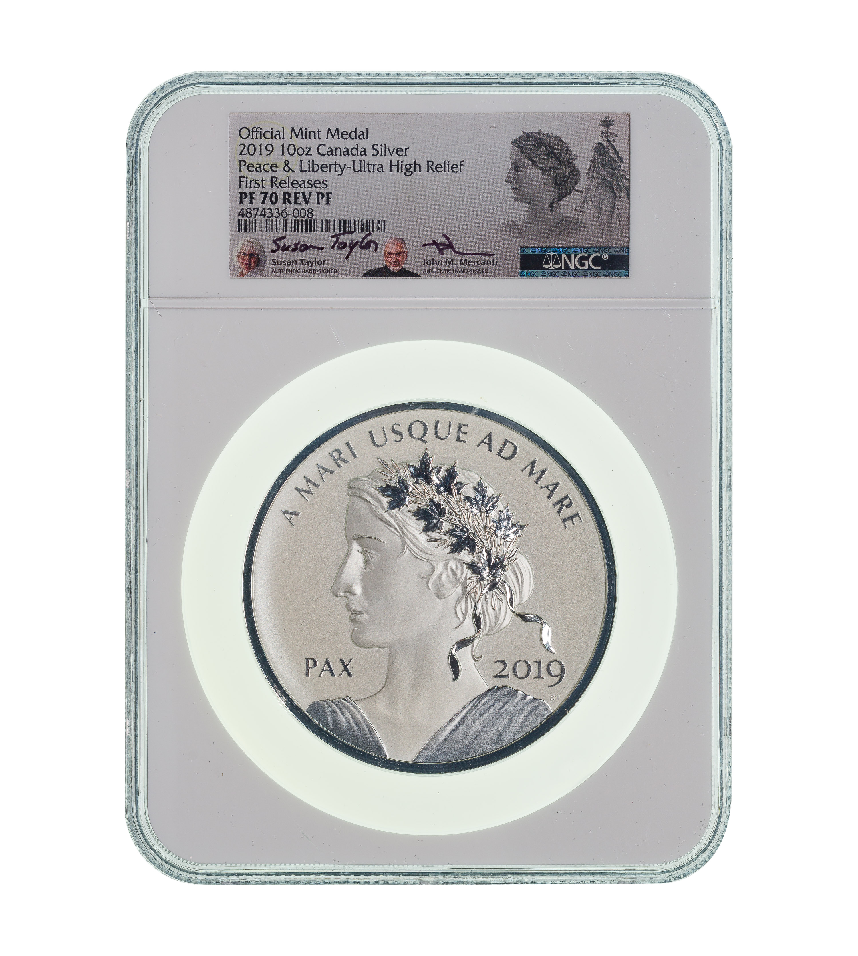 Canada: 2019 Peace 10 oz Ultra High Relief Medal PF-70 Reverse Proof NGC