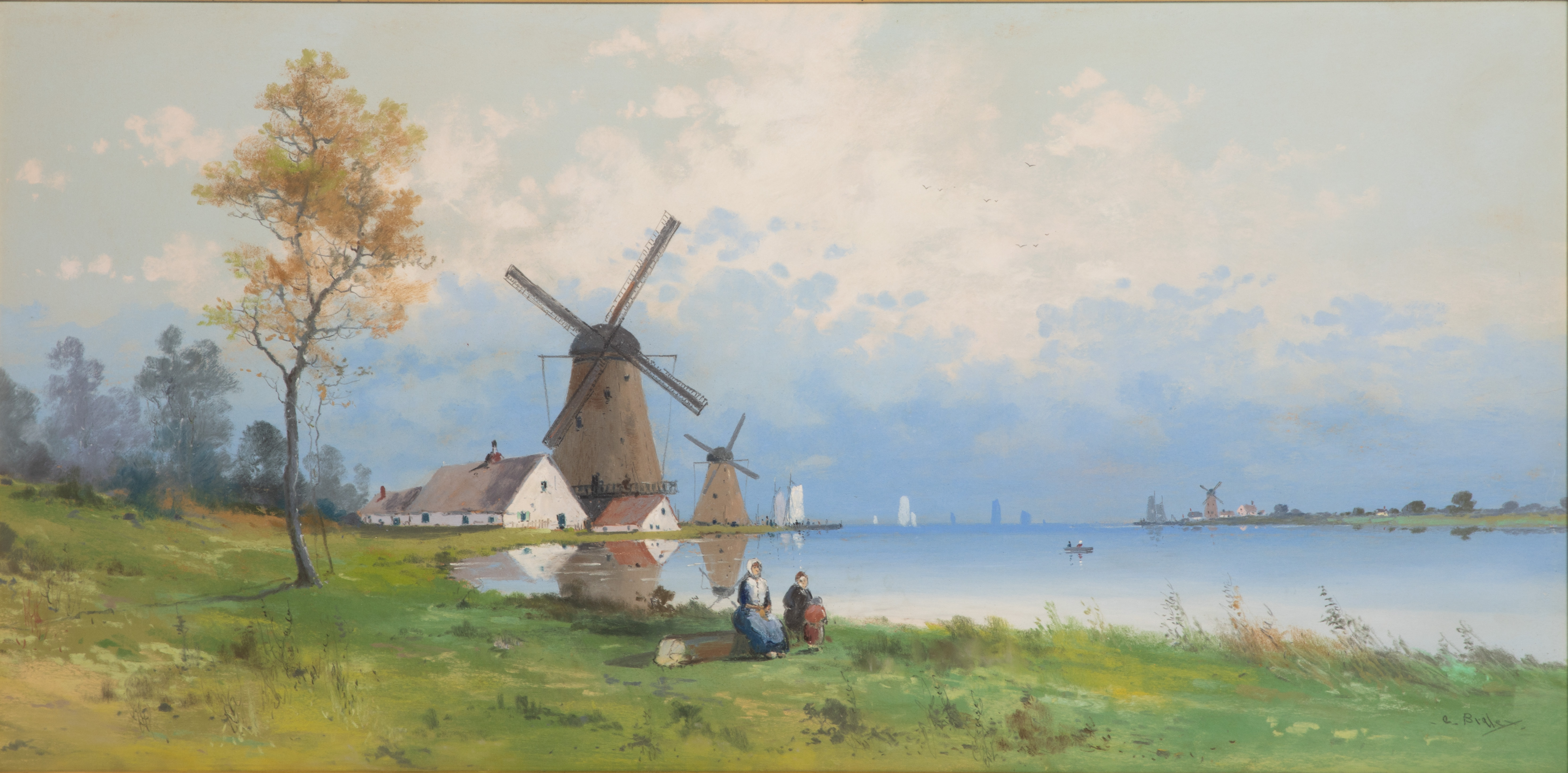 C. Bialet (Continental School, 20th Century) ‘Windmills on the Noordendijk’ Pastel on Paper