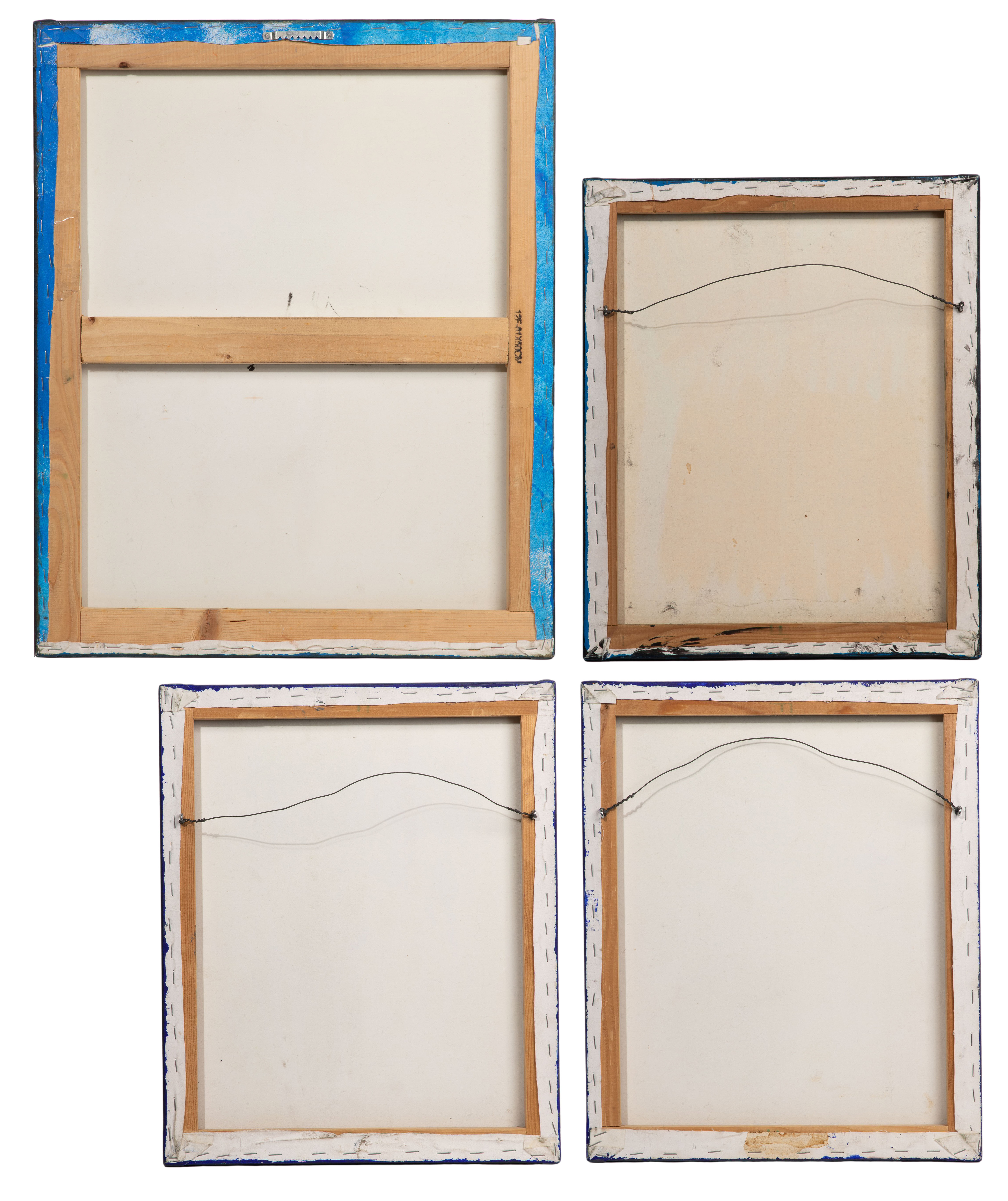 (4) items depicting vegetables and fruit attracting hornets, (3) being signed and dated 2003, all on gallery wrapped stretchers, unframed