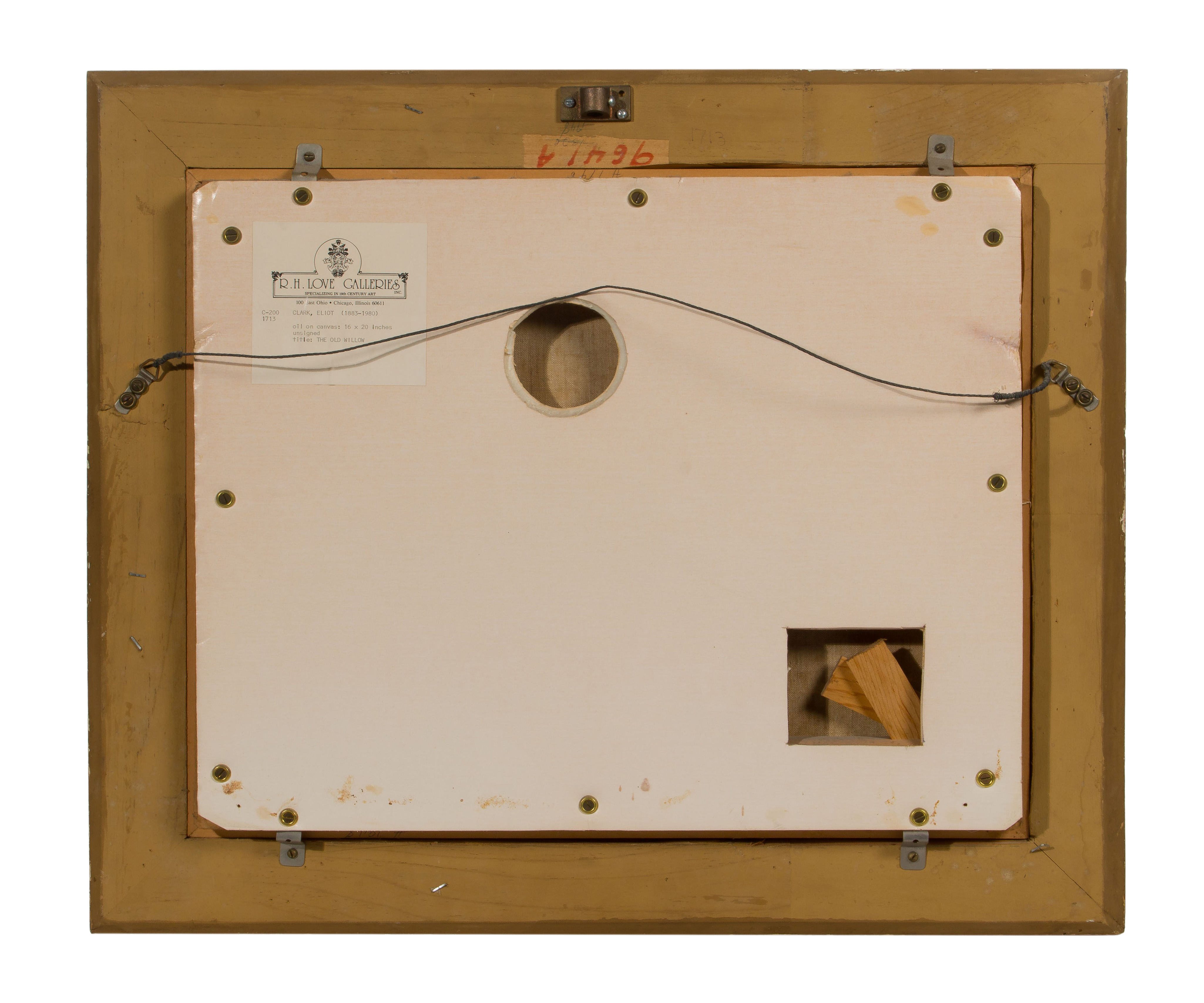 minor area of over painting lower center, frame having wear