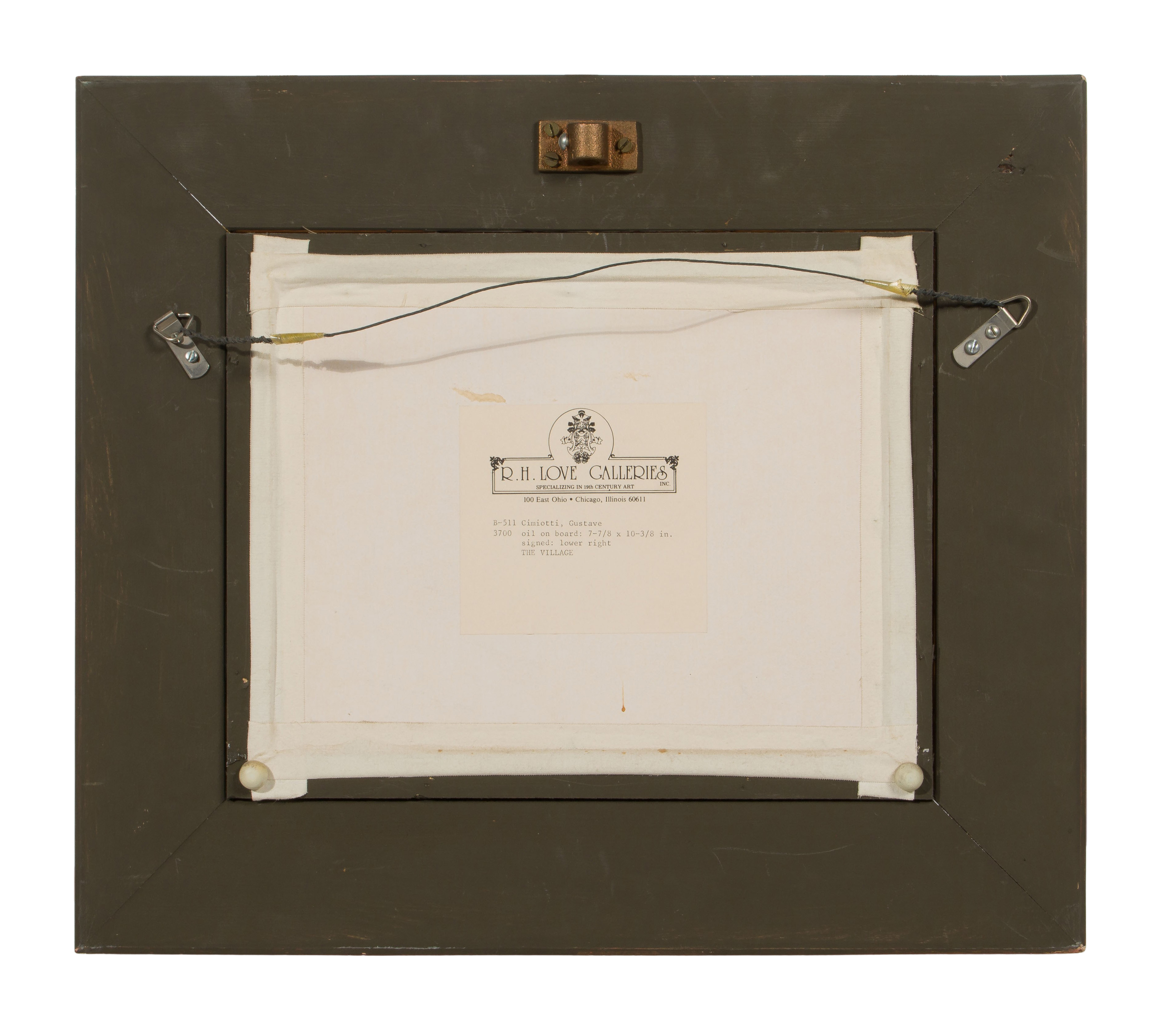Village having no damage to artwork noted, frame having minor wear, Washing having minor areas of inpainting overall, some minute chips having paint loss, frame having wear