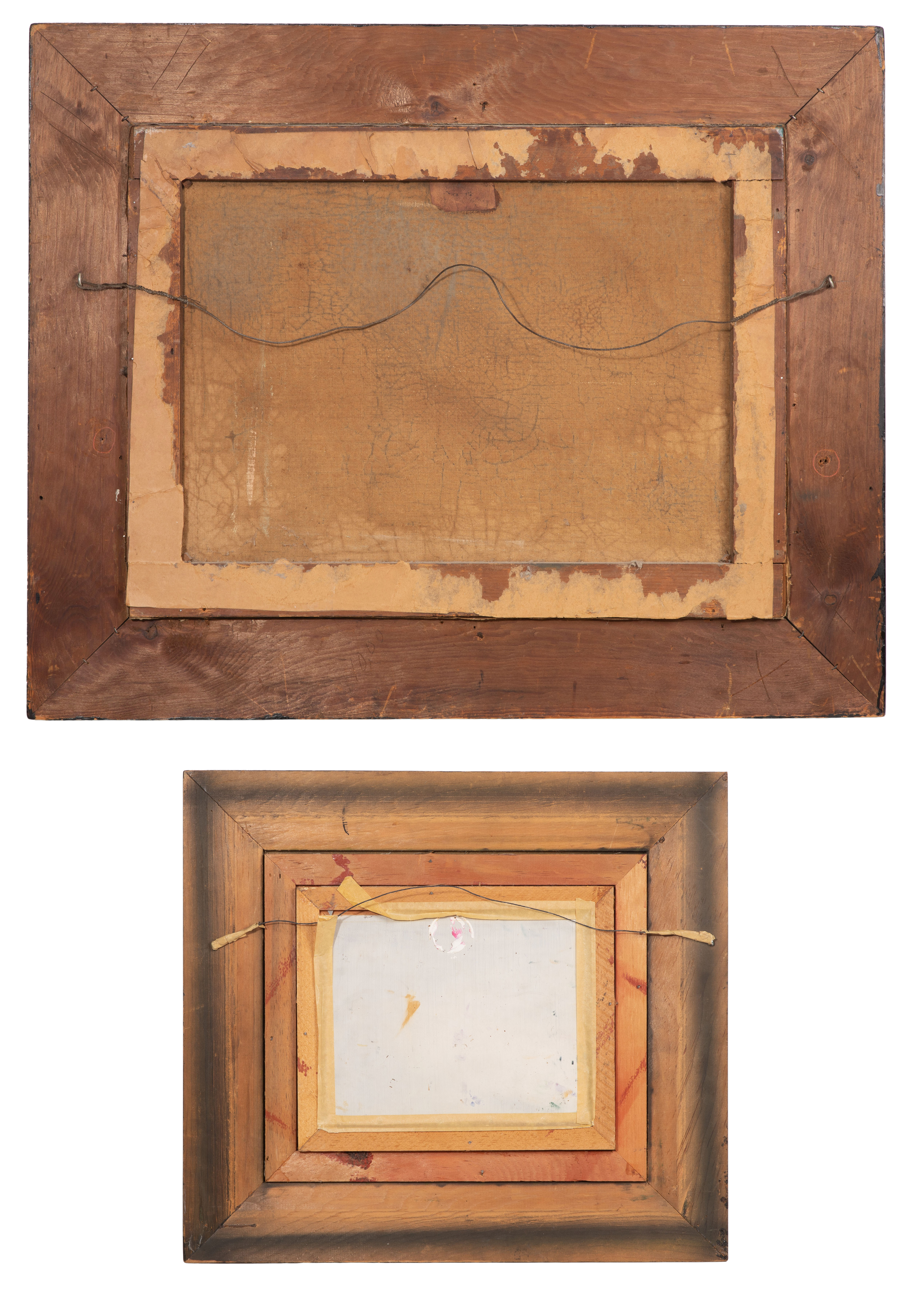 Condition: oil on canvas having craquelure overall, some cupping, lifting and losses to paint, stretcher marks, frame having moderate wear to exterior, the Clair having no damage noted, frame having light wear