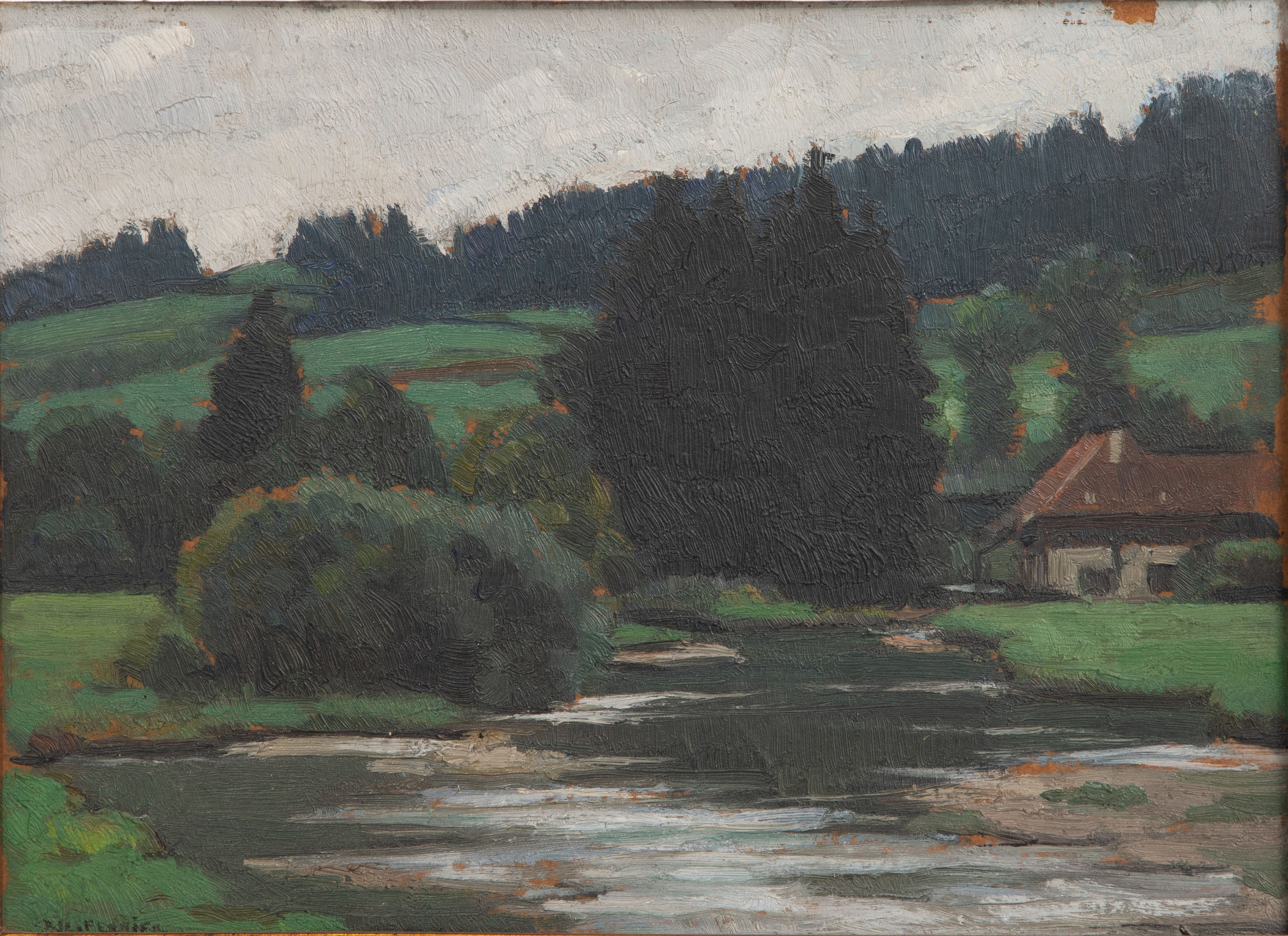 Condition: the river valley having a 0.25-inch loss to paint at right top edge, frames having light wear