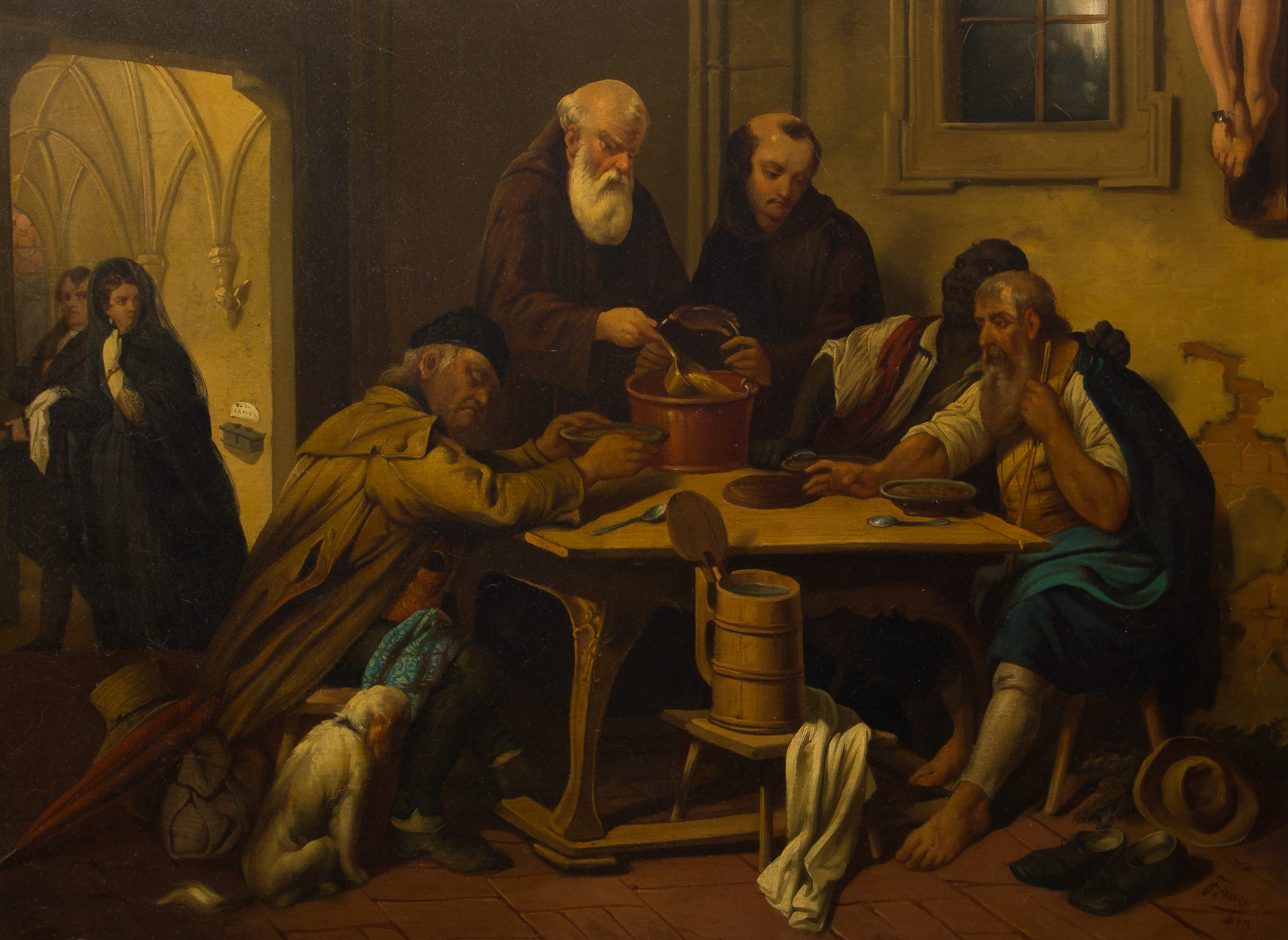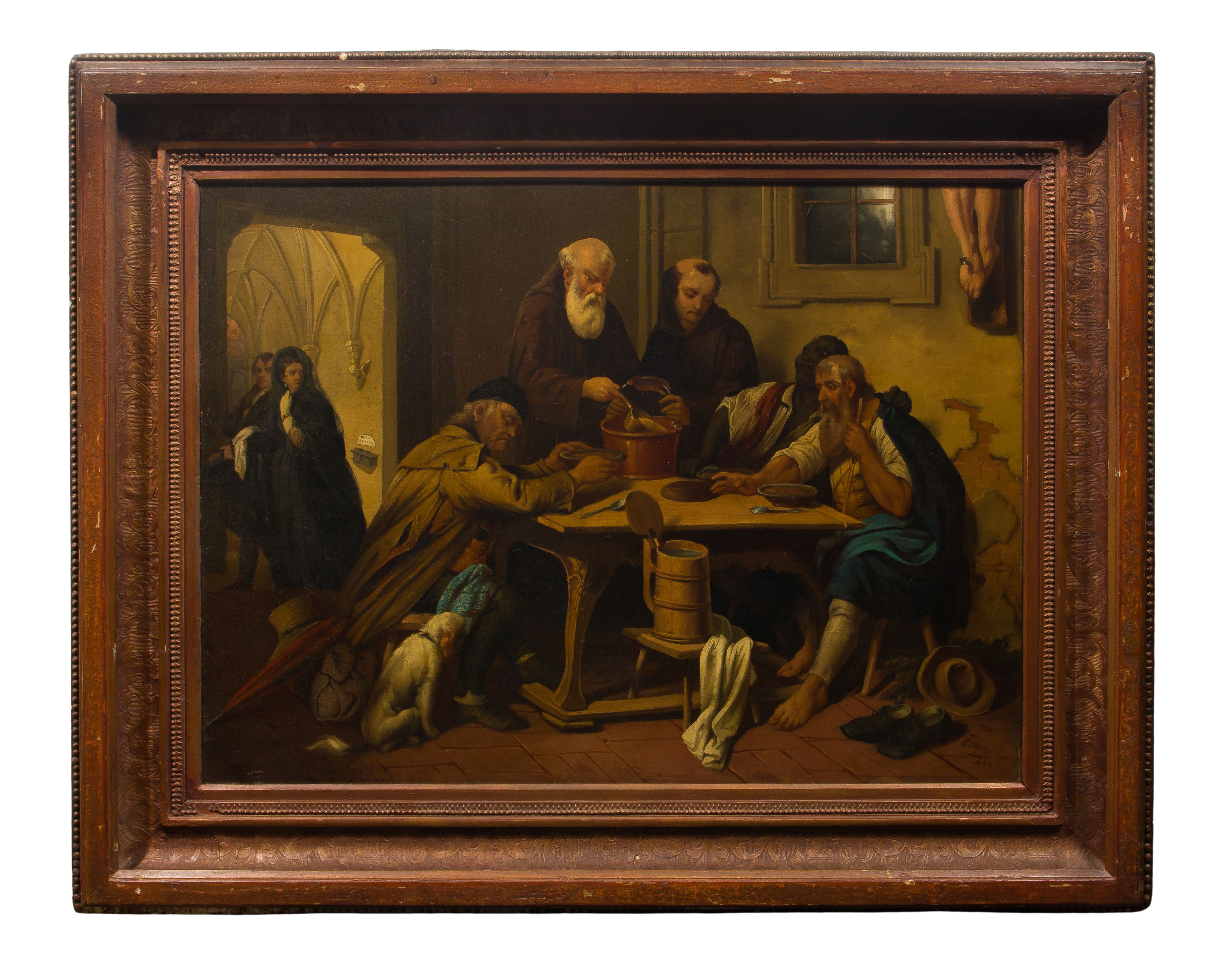 After Josef Danhauser (Austrian, 1805-1845) ‘Die Klostersuppe’ Oil on Canvas