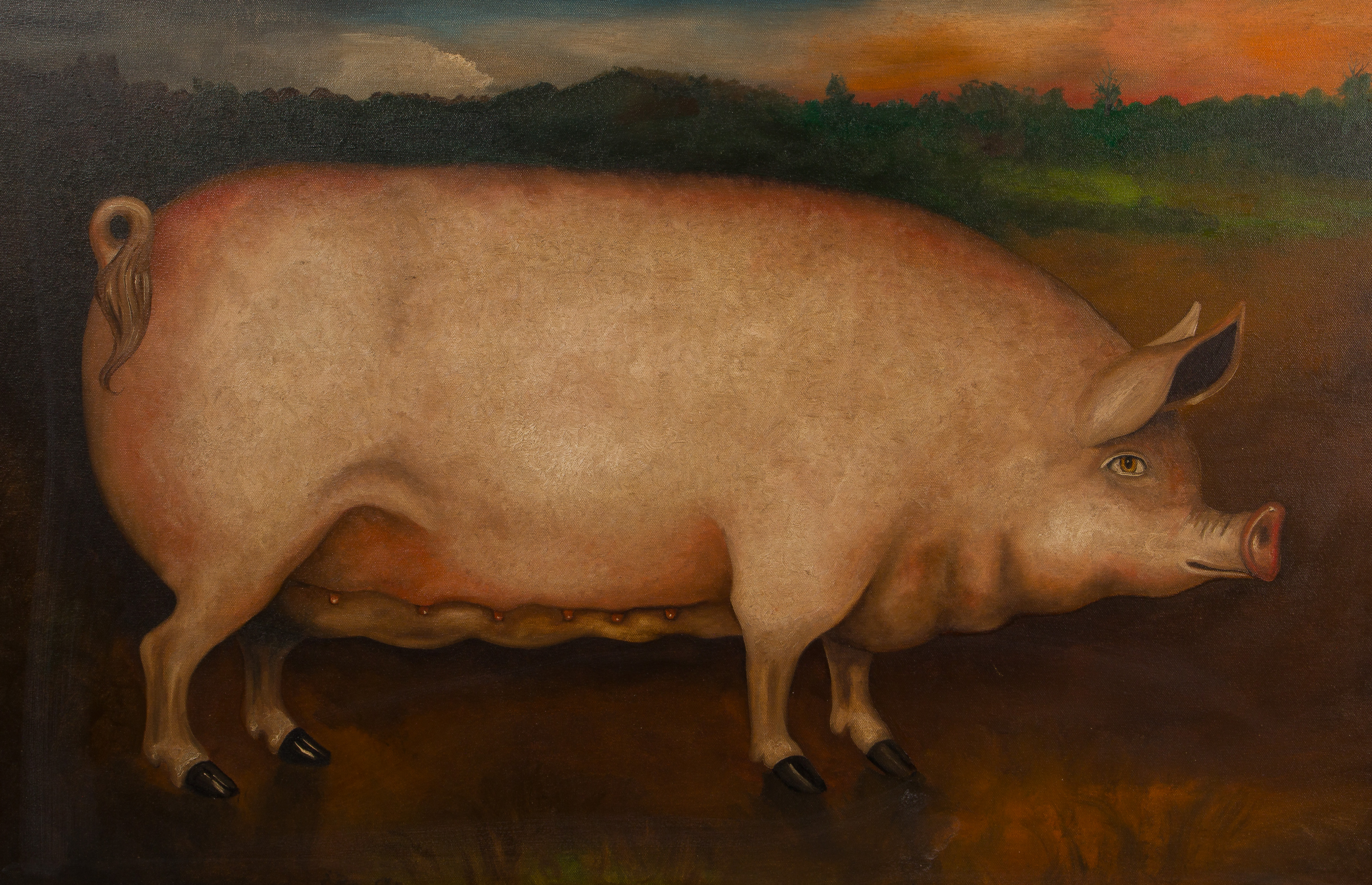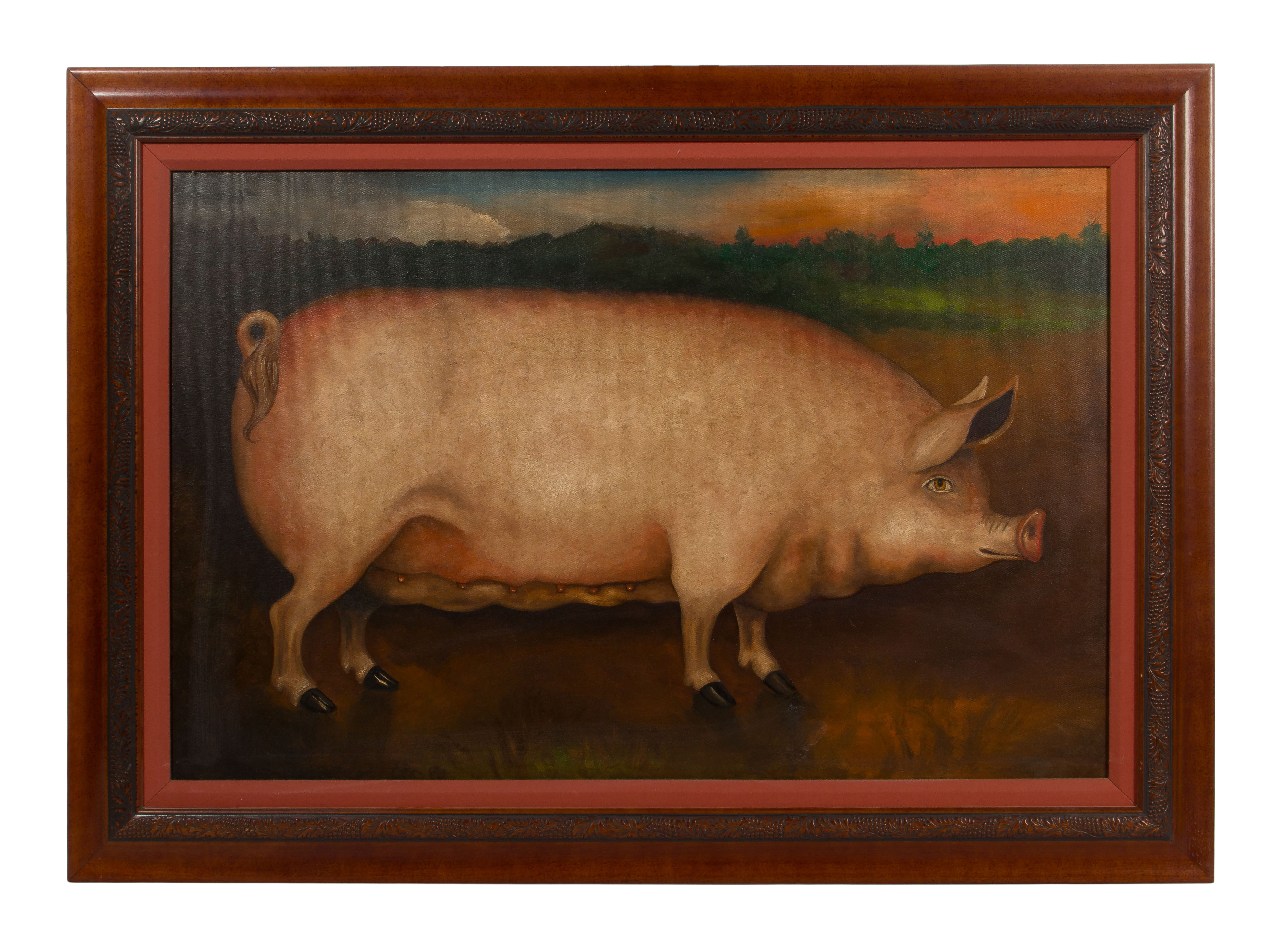 Condition: painting having white smear on bottom and lower left side, frame having minor wear