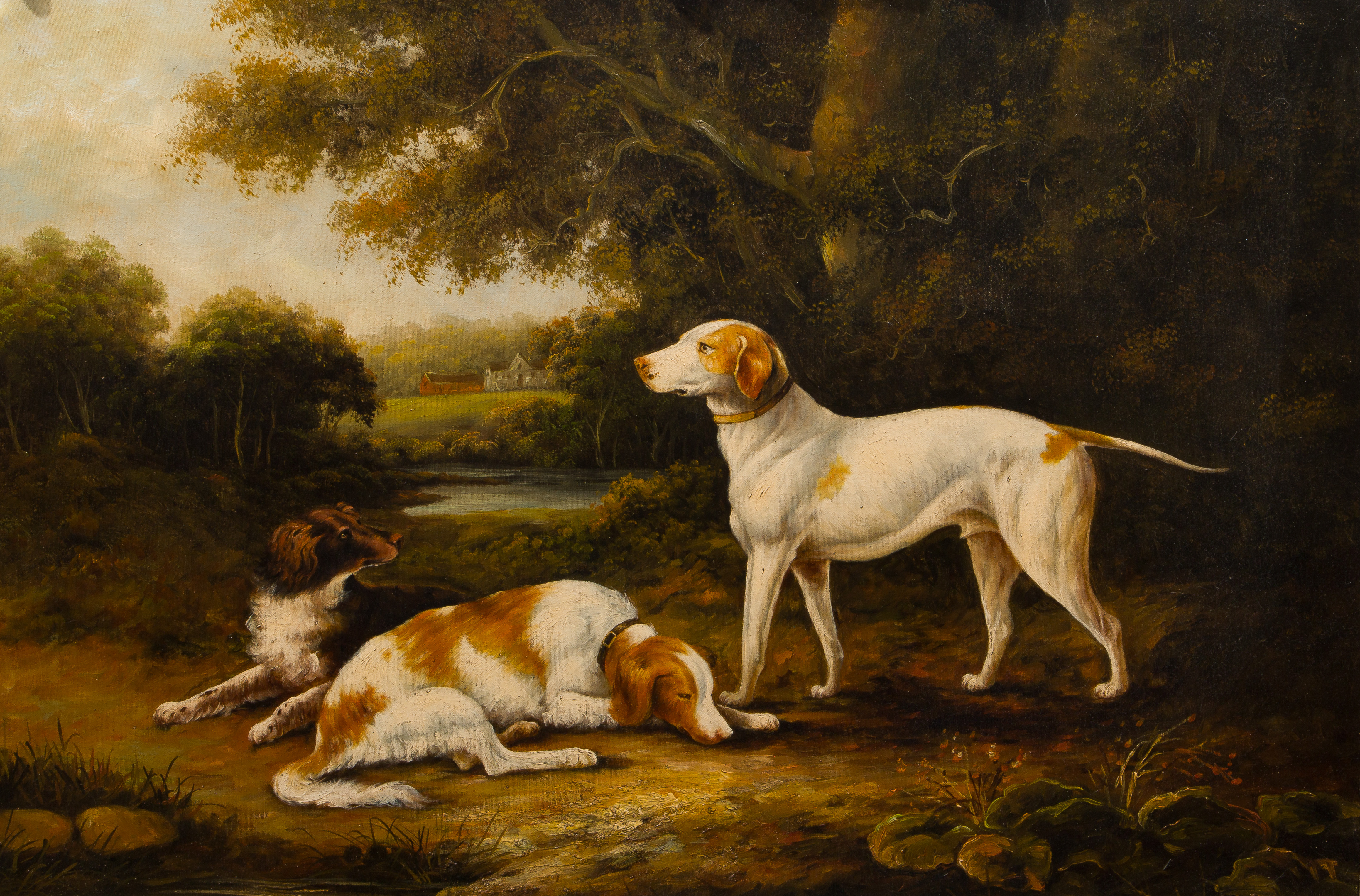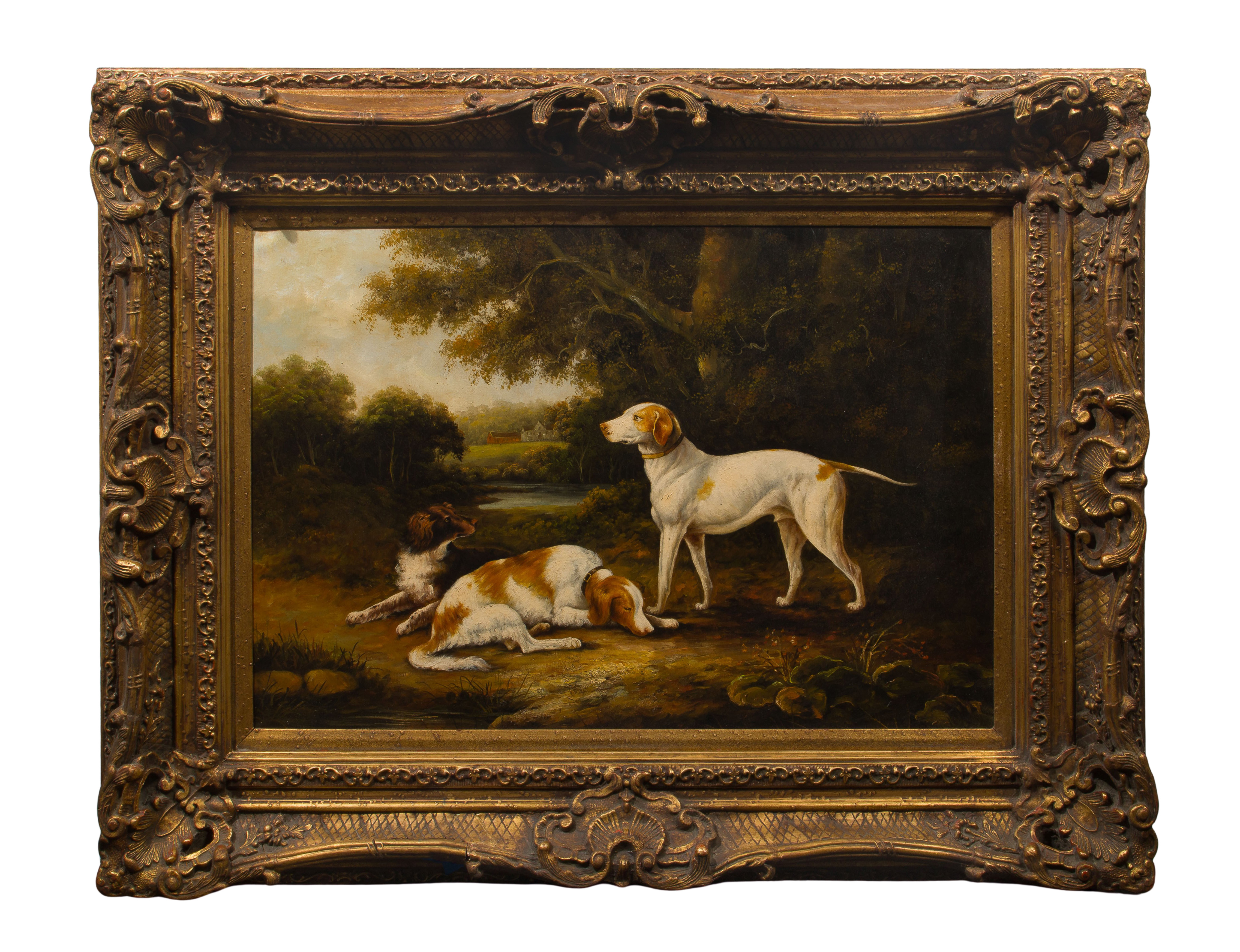 After Charles Henry Schwanfelder (British, 1774-1837) ‘A Pointer and Two Spaniels’ Oil on Canvas