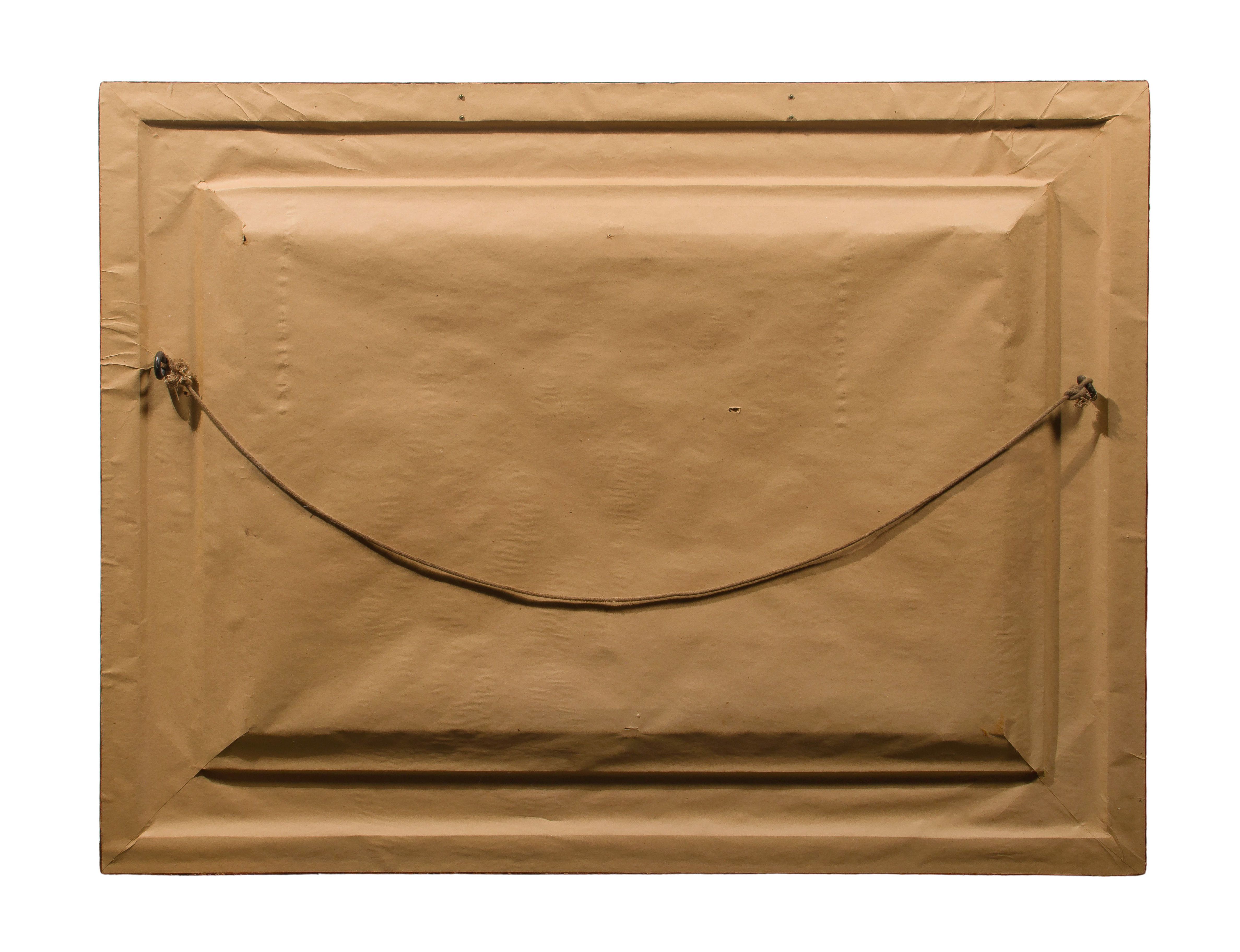Condition: no damage to artwork noted, frame having moderate wear, a piece being split off (present) and occasional chips