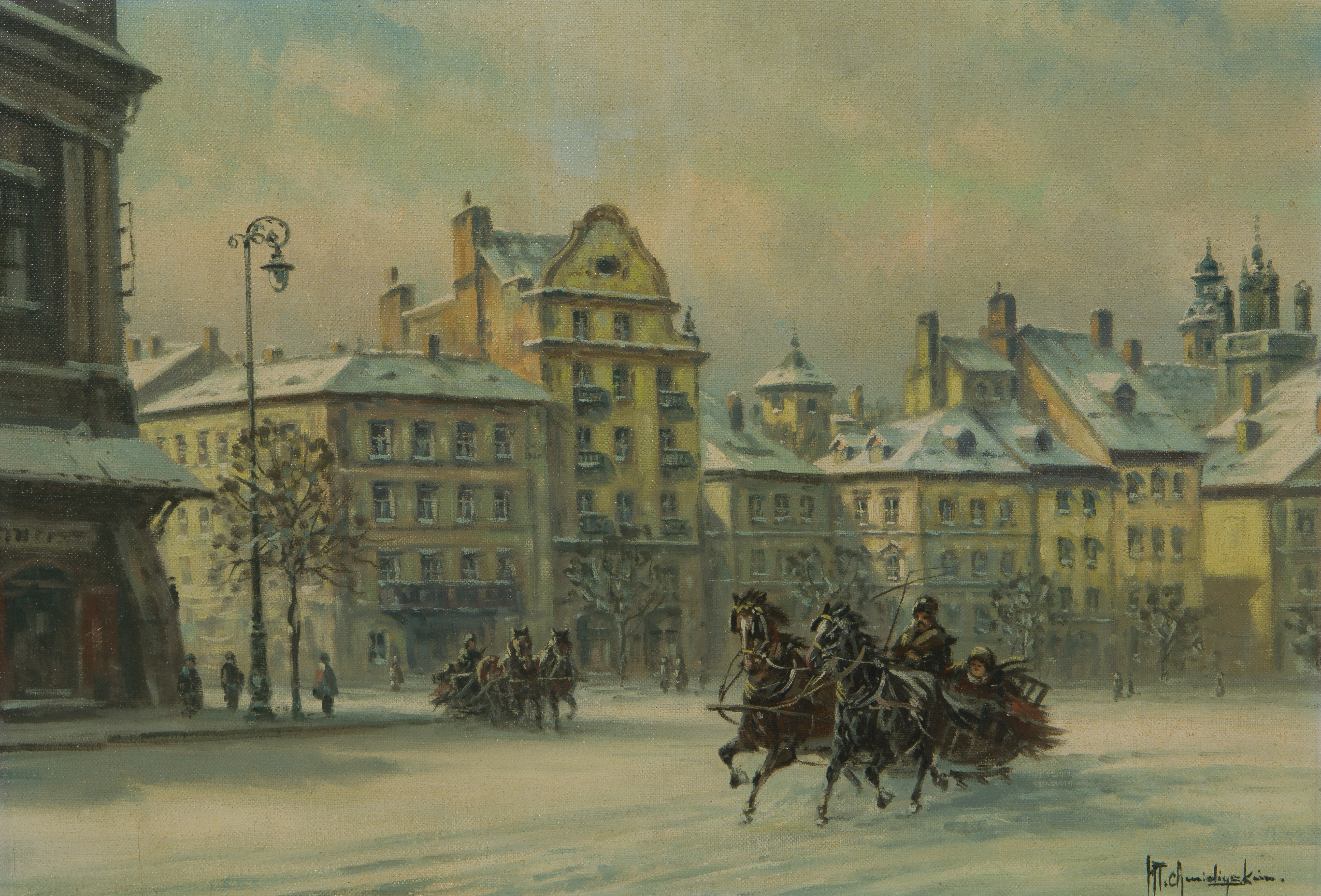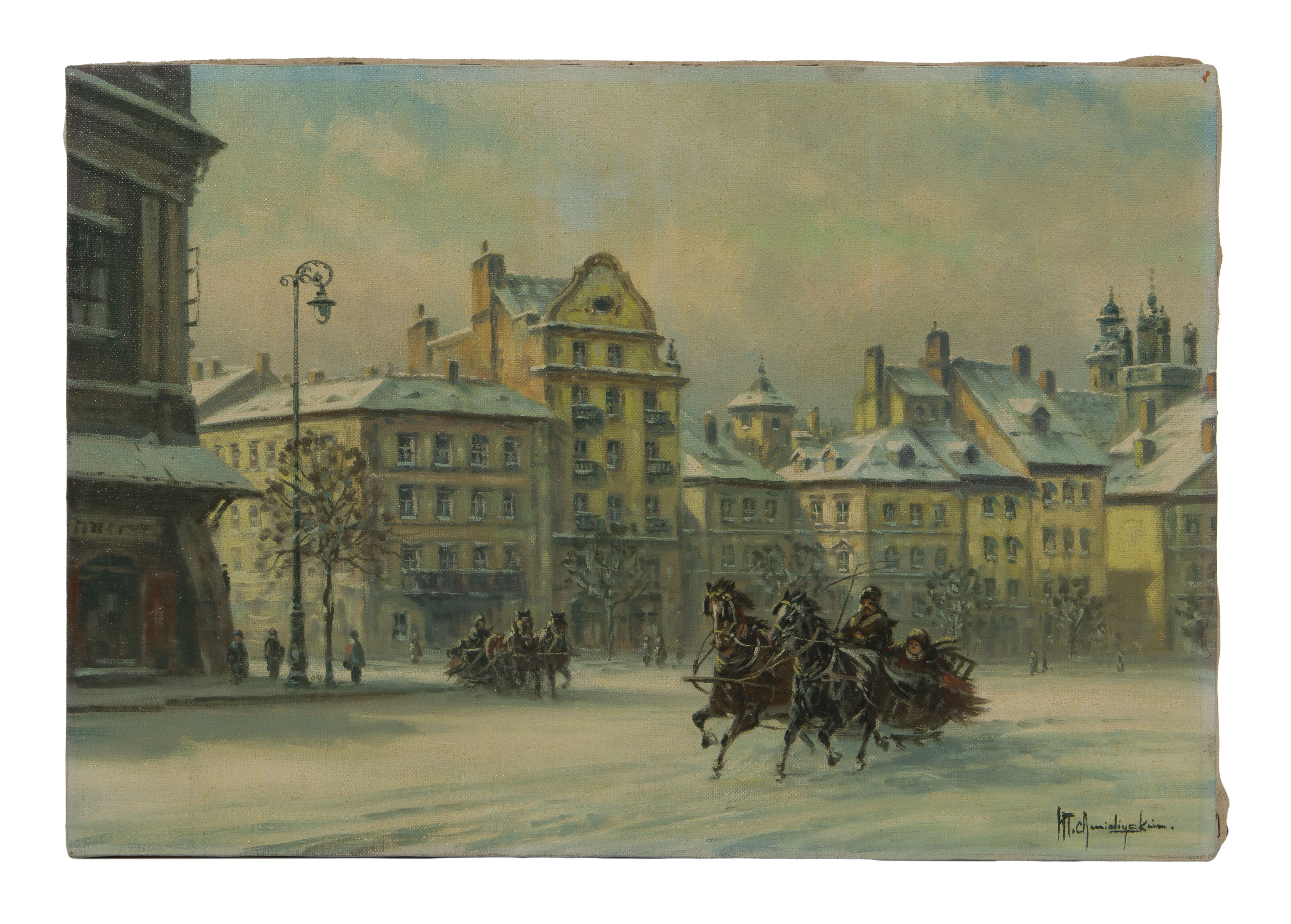 Wladyslaw T Chmielinski (Polish, 1911-1999) ‘Town in Snow’ Oil on Canvas