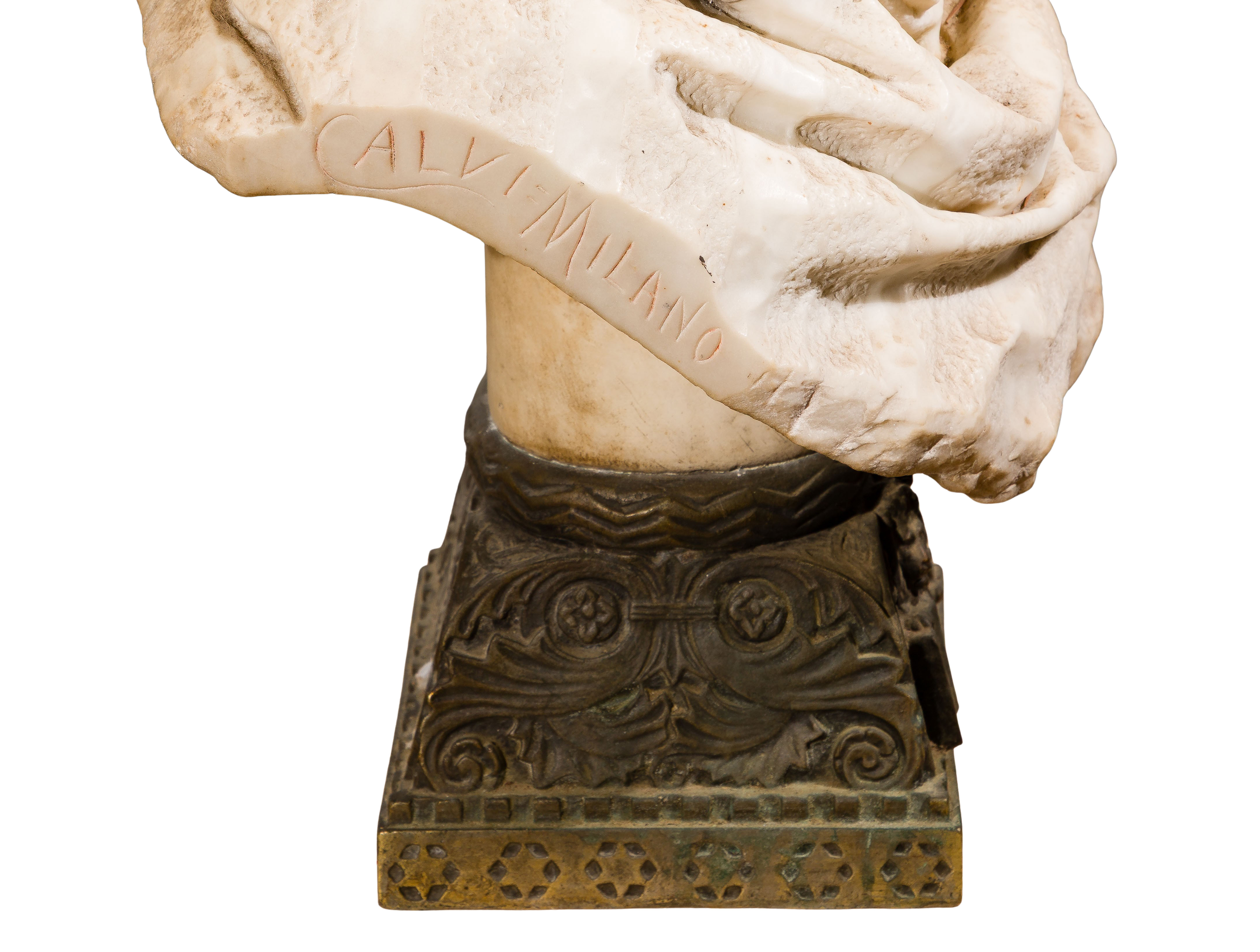Carved ‘CALVI MILANO’ at left shoulder, cast bronze face attached to carved marble on a bronze base