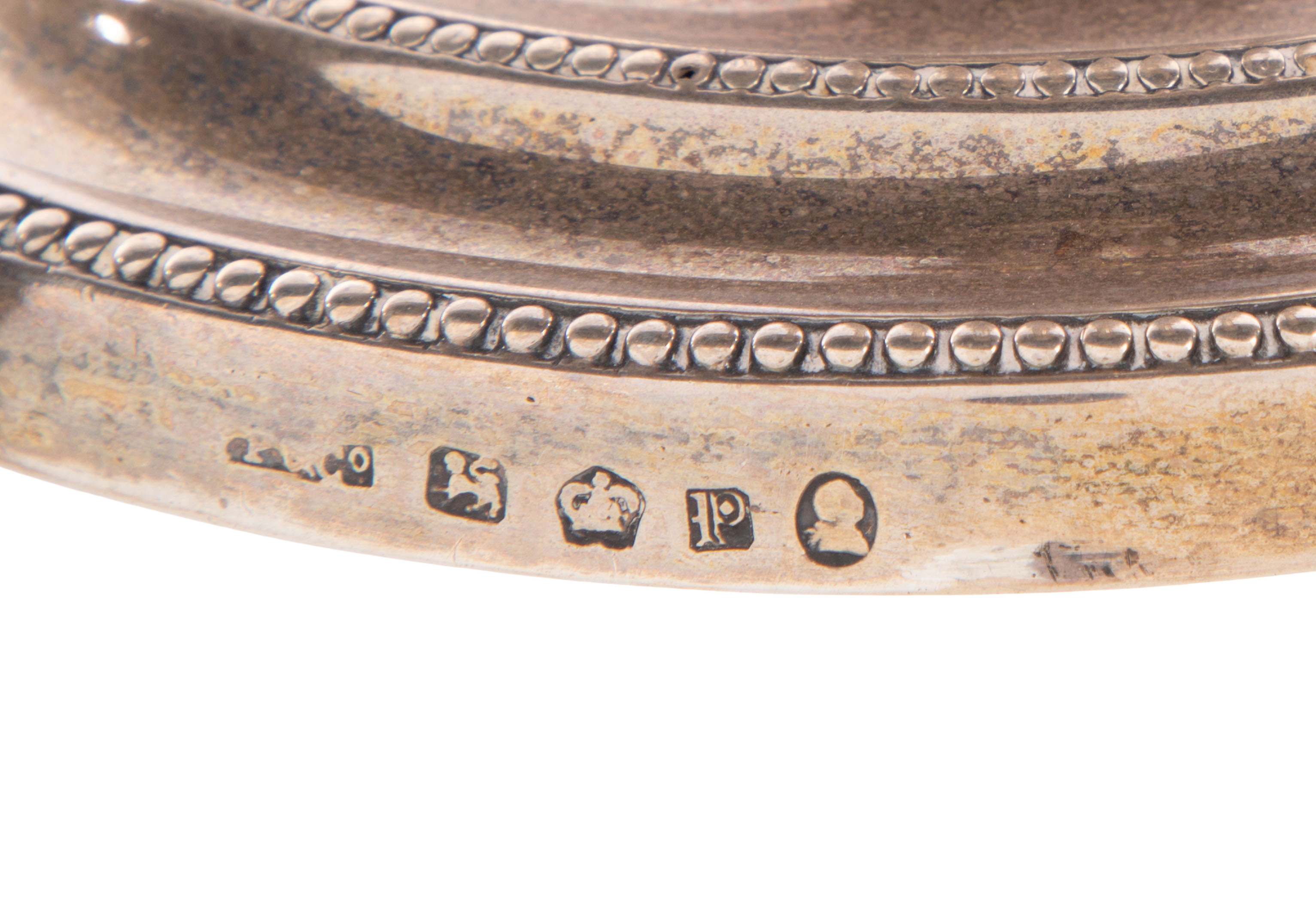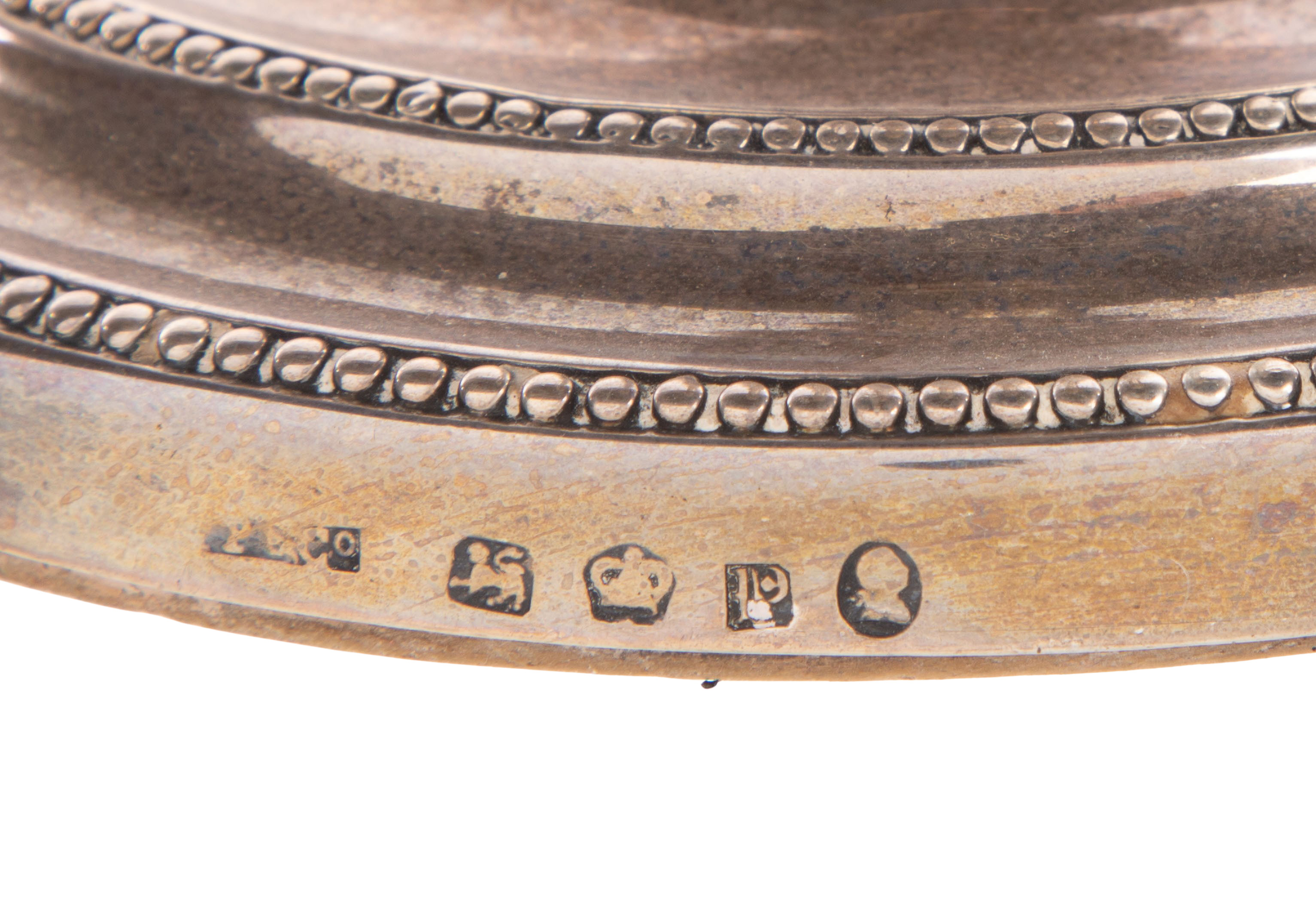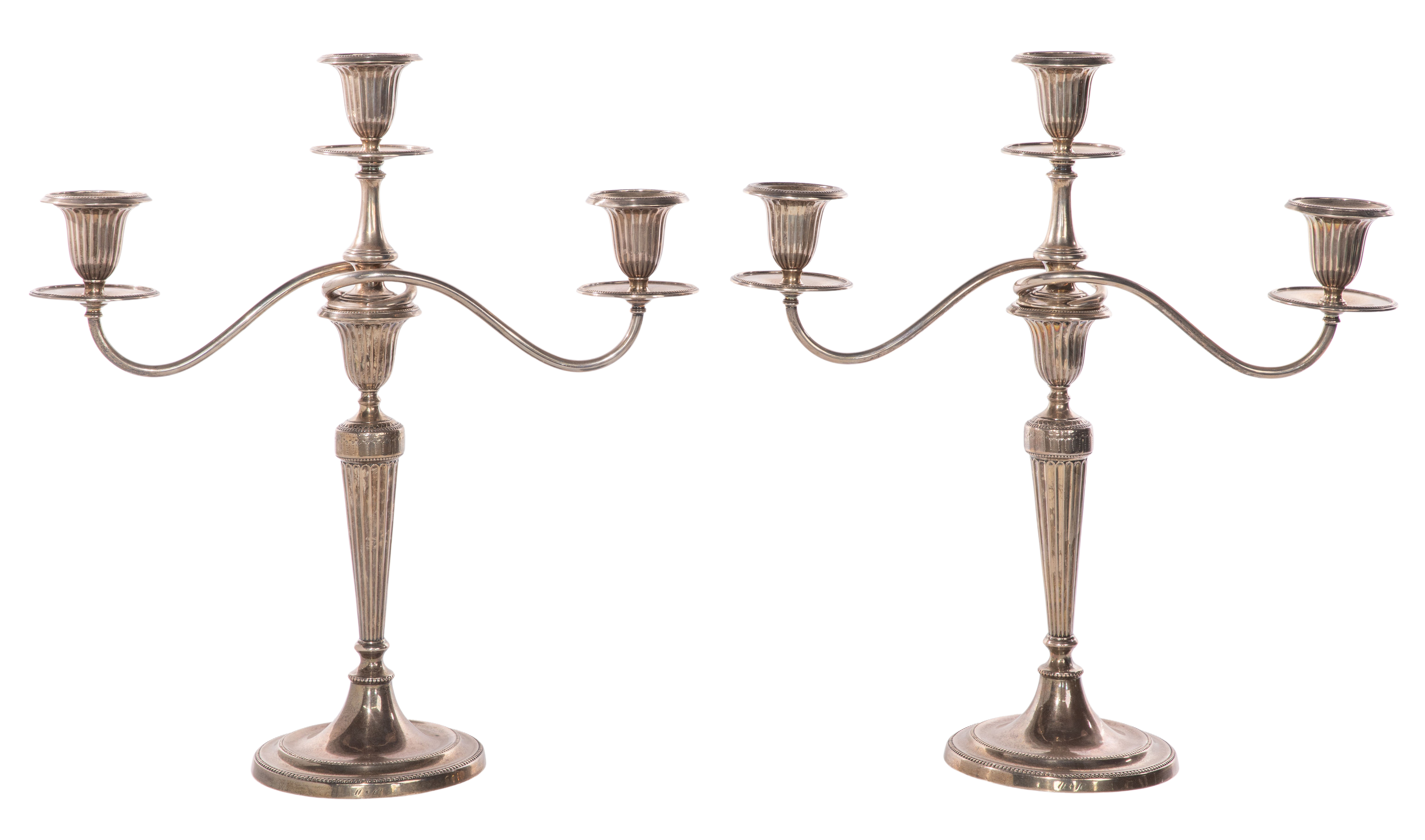 c.1785, weighted pair of three-light candelabras (both having lion passant and ‘I P & Co.’ maker marks)
