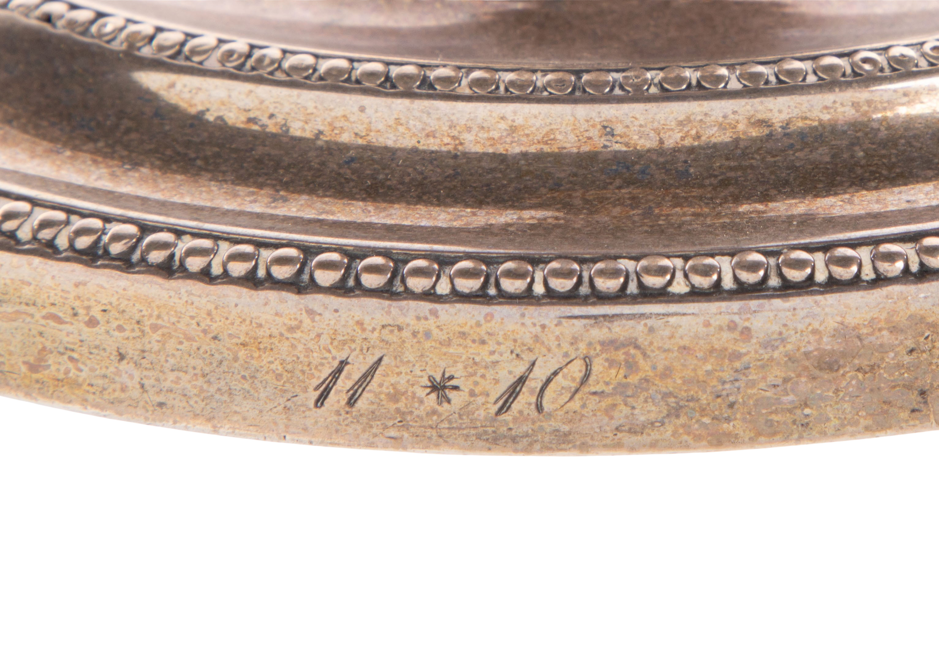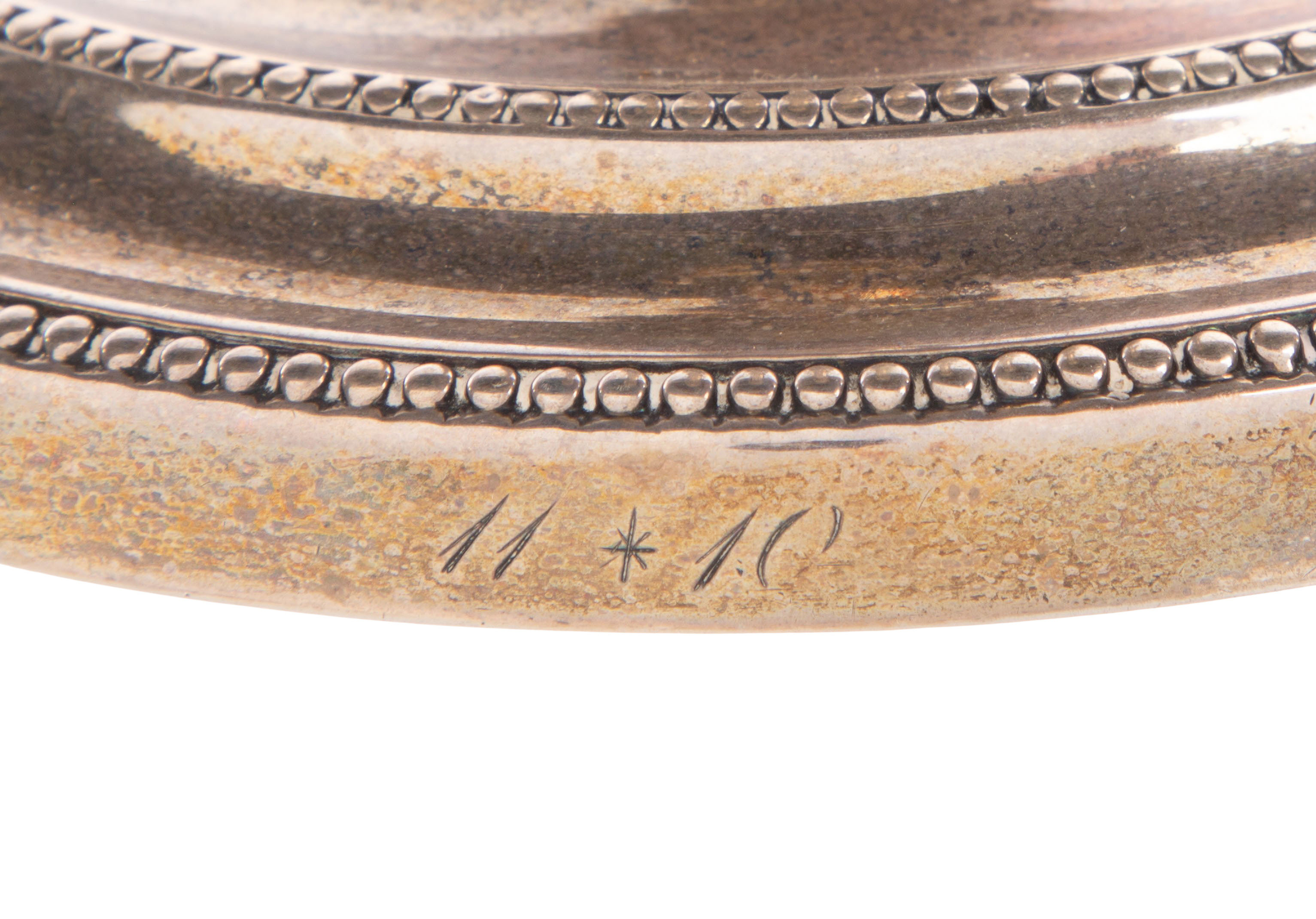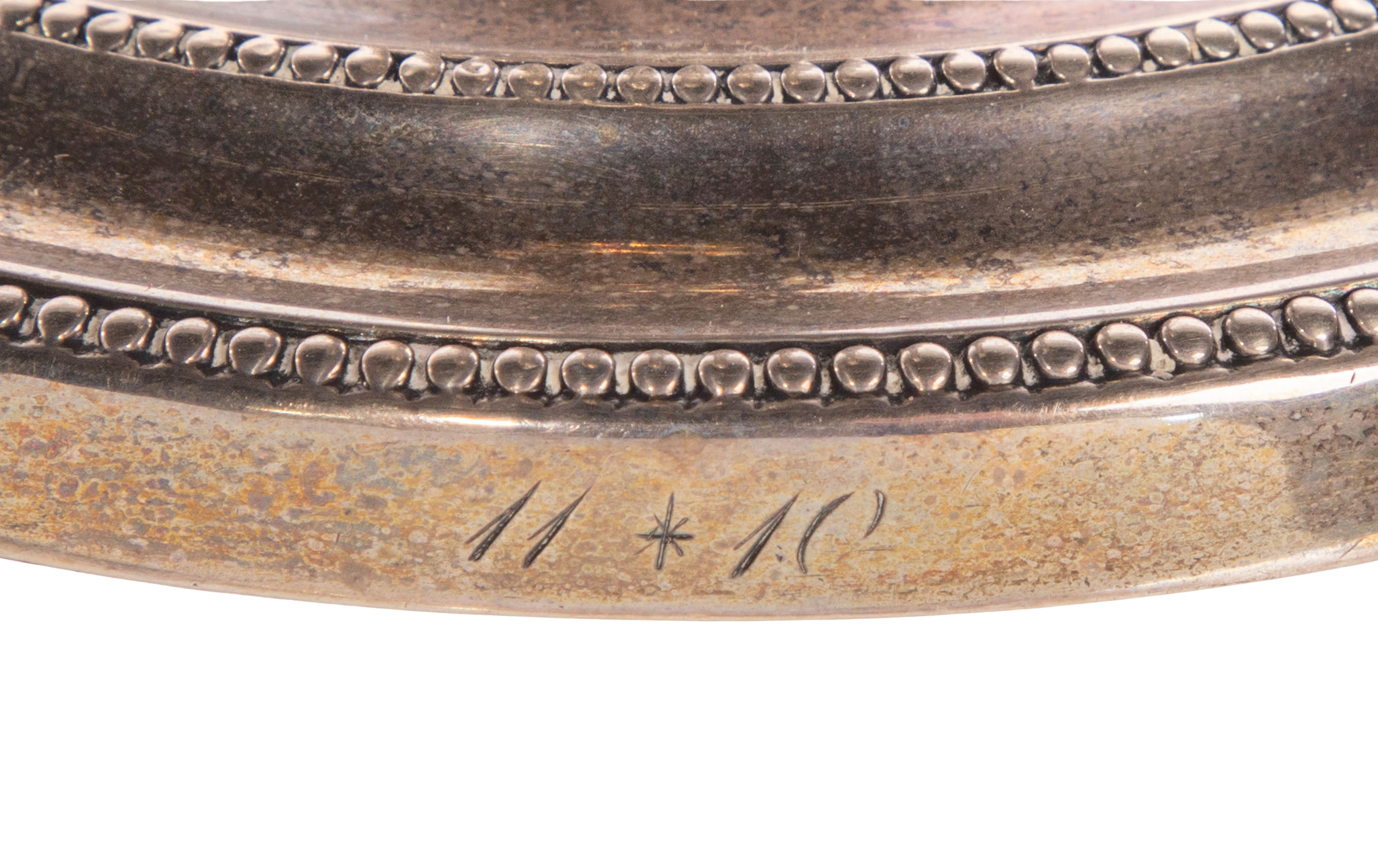 c.1785, weighted pair of three-light candelabras (both having lion passant and ‘I P & Co.’ maker marks)