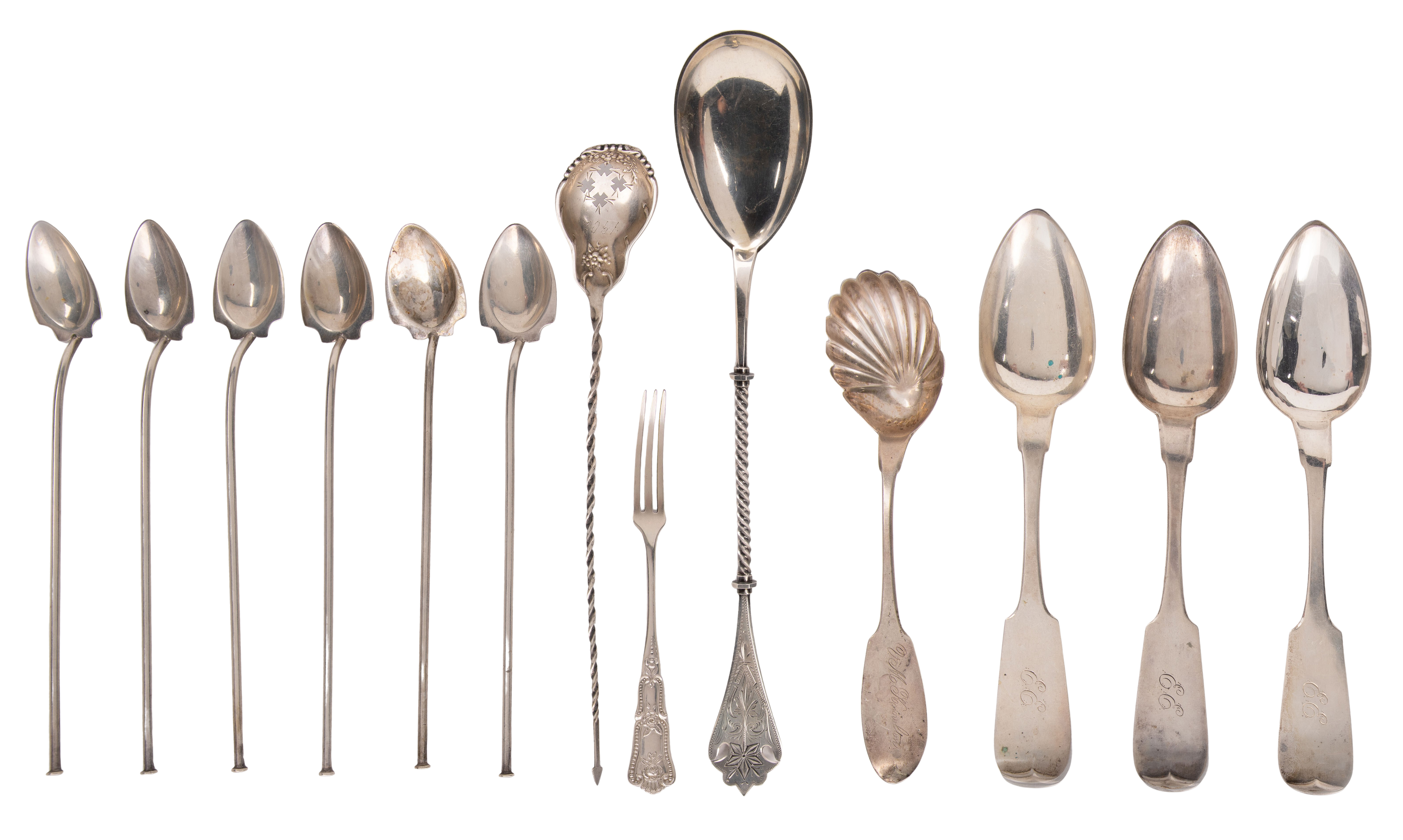 light wear consistent with use, some having tarnish, scratches and dents, some unmarked but XRF tested as 0.830 / 0.800 silver