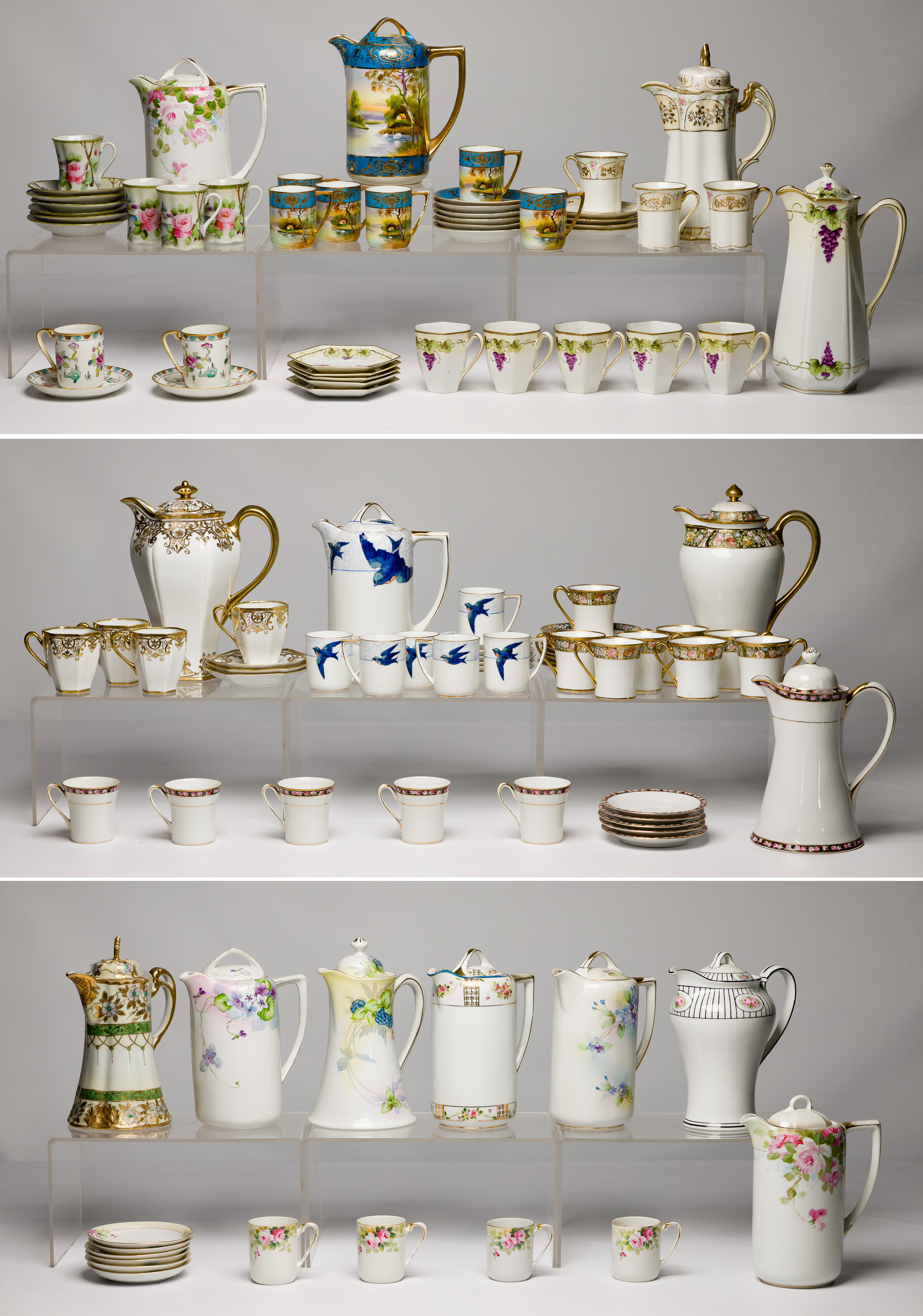 Approximately (7) partial sets having hand painted pots, cups and saucers in various shapes, colors and designs, most having Nippon stamp on underside