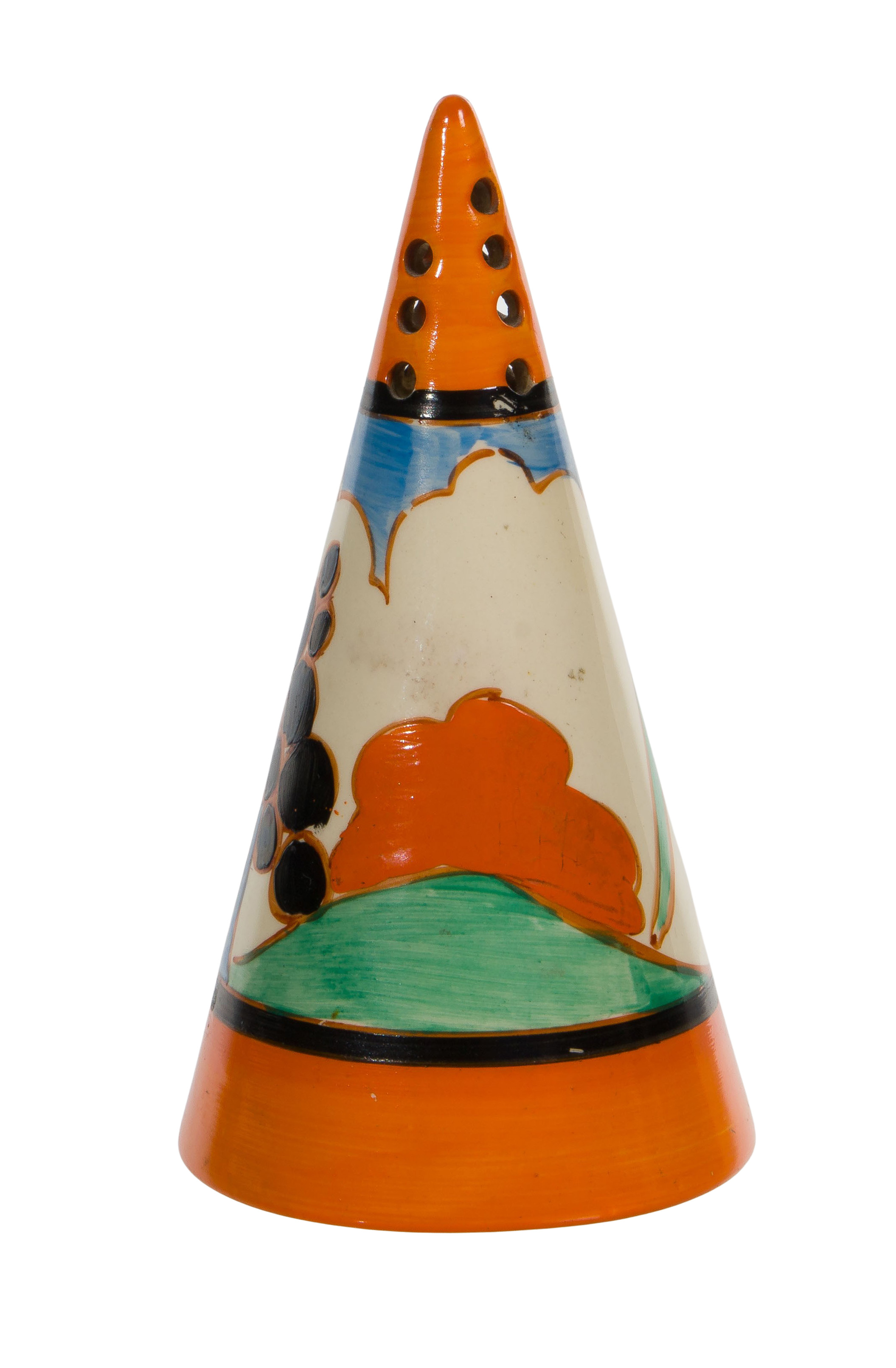 c.1930 having a conical shape, hand painted ‘Bizarre Fantasque’ stamped on underside