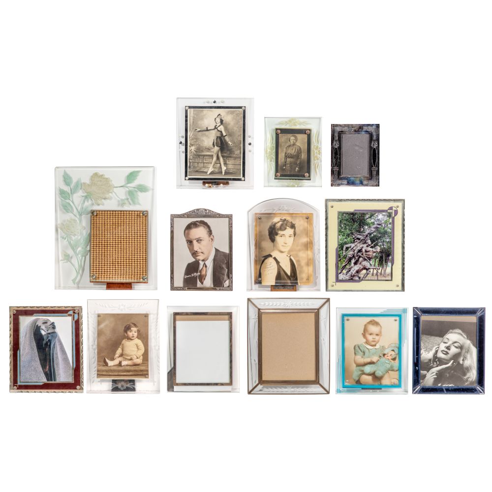(13) frames including various shapes, sizes, colors, motifs and borders, some having thin metal framing glass or corners, some sterling noted, most easel style