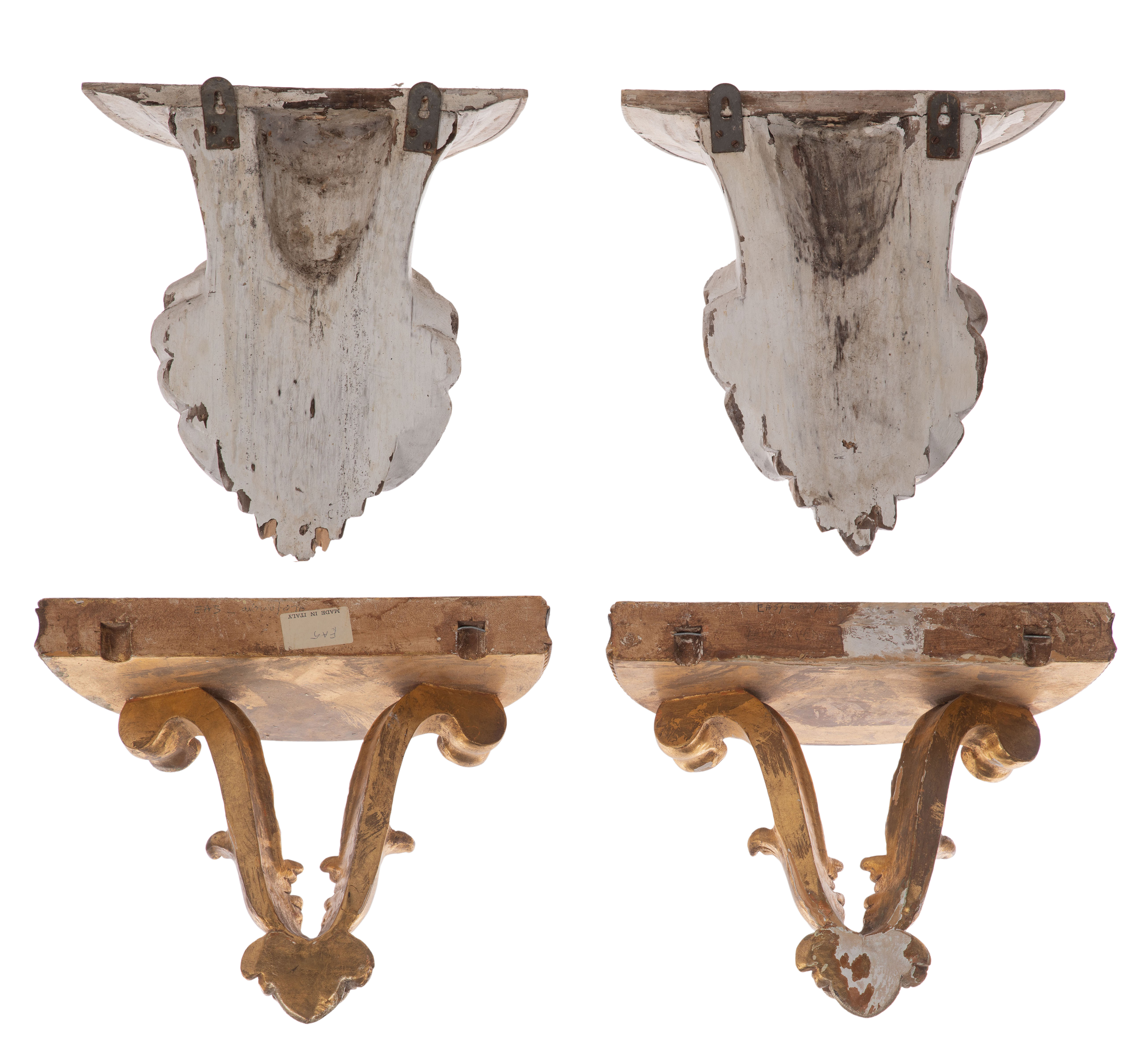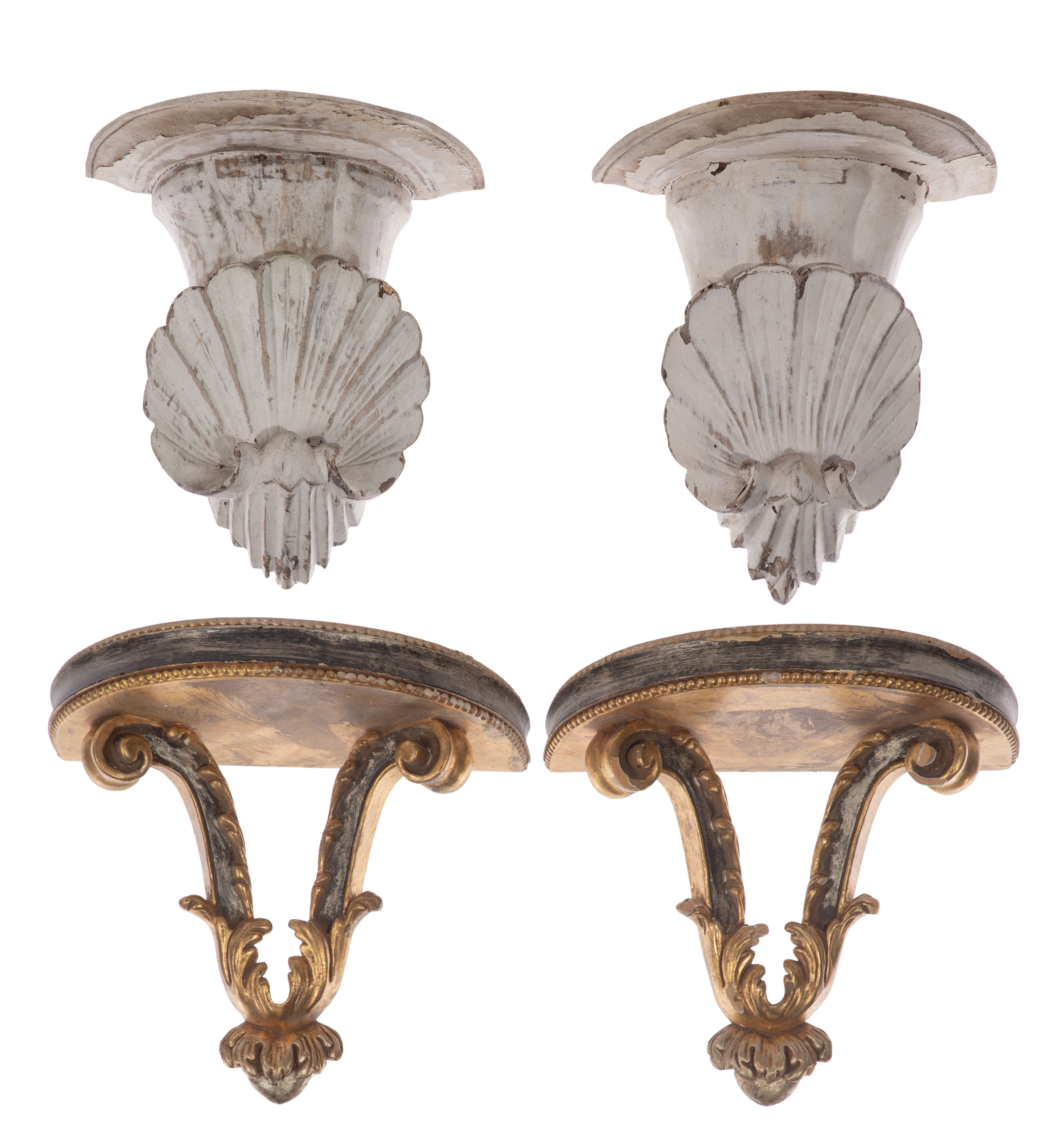 (2) pairs having attached hardware, including a gold-tone gesso on carved wood and a painted white