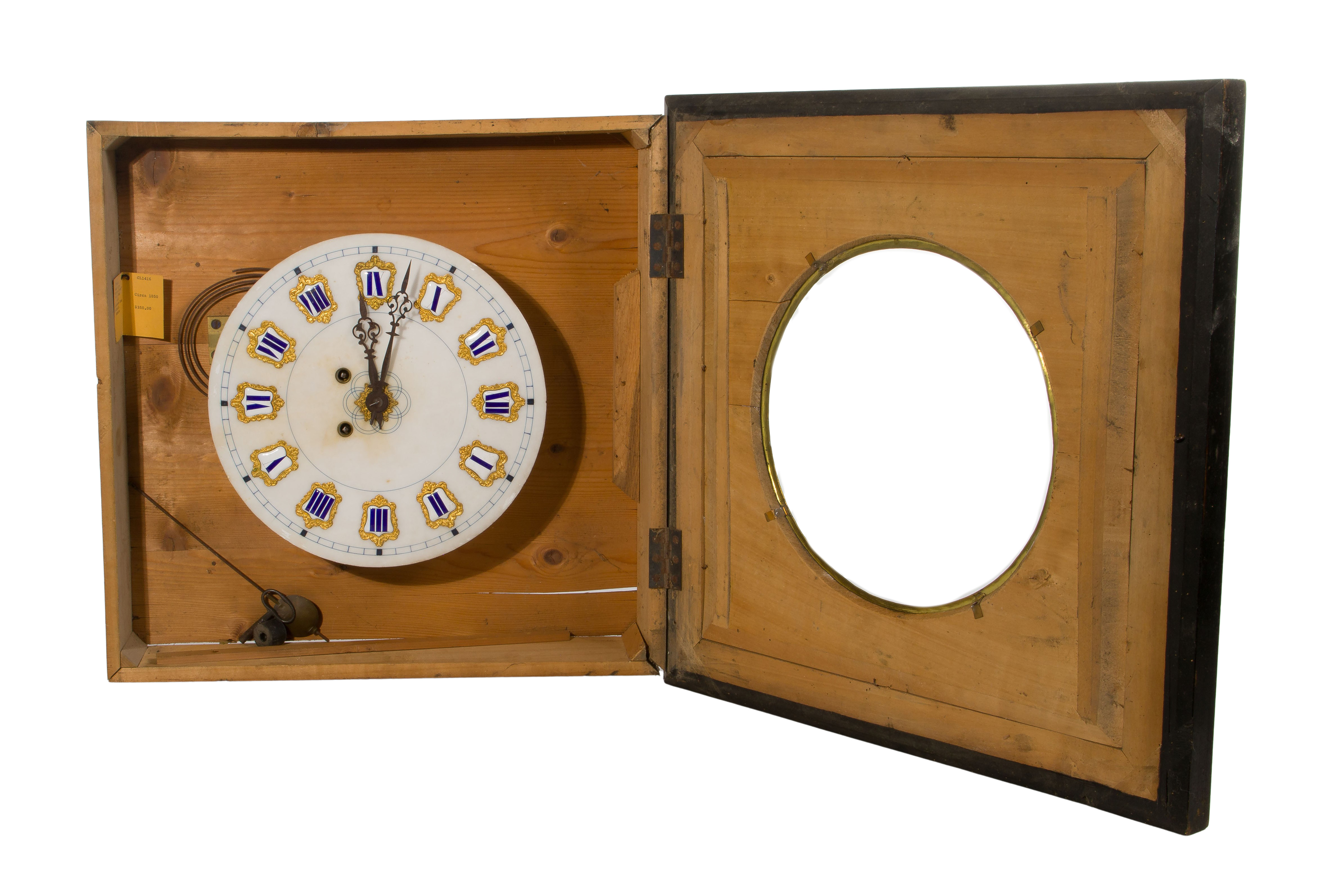 Condition: overall moderate wear consistent with normal use, alabaster discolored, hands bent, some enamel accents cracked, case having insect holes, chips, nicks, cracks, not tested