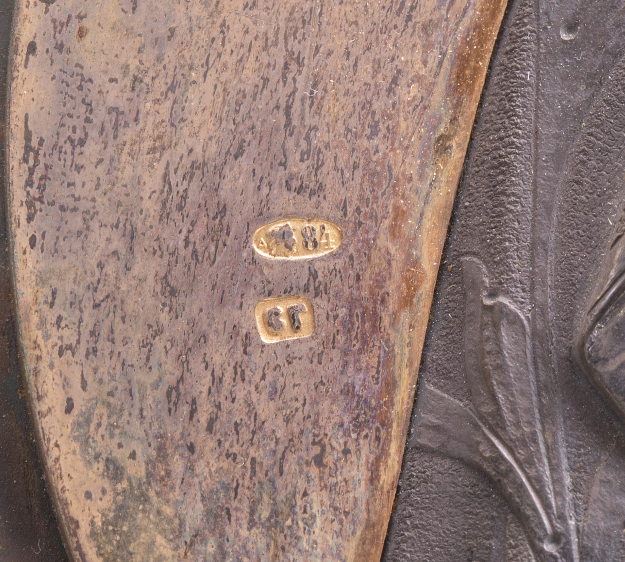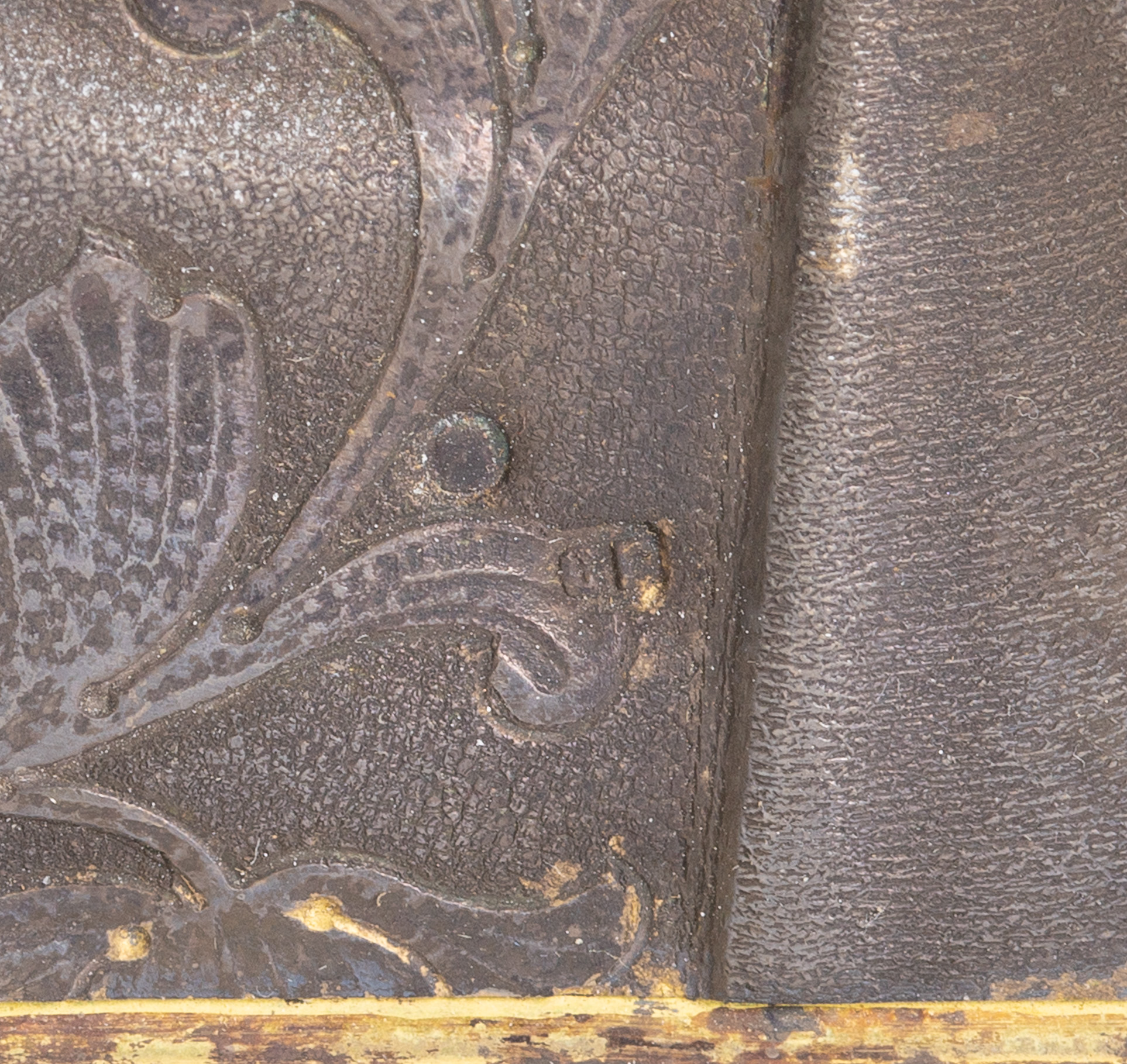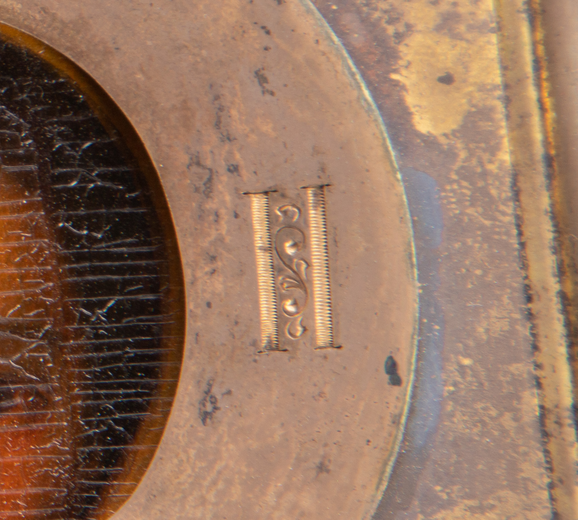Condition: overall light wear, riza having tarnish, scratches, painting having craquelure overall and dirt accumulation, frame having wear