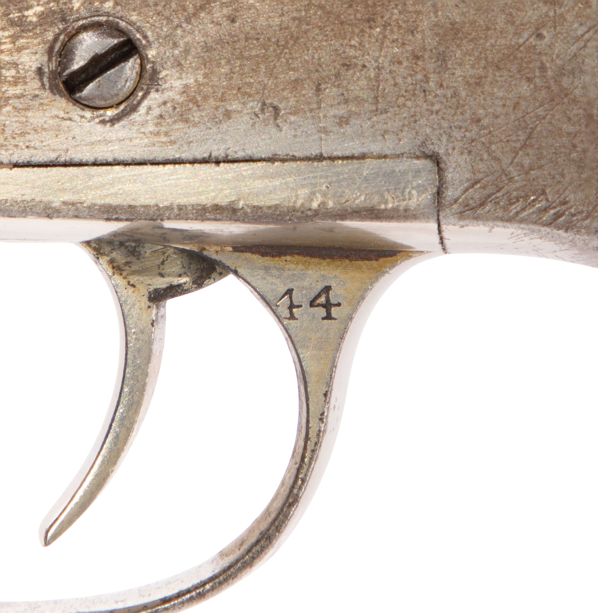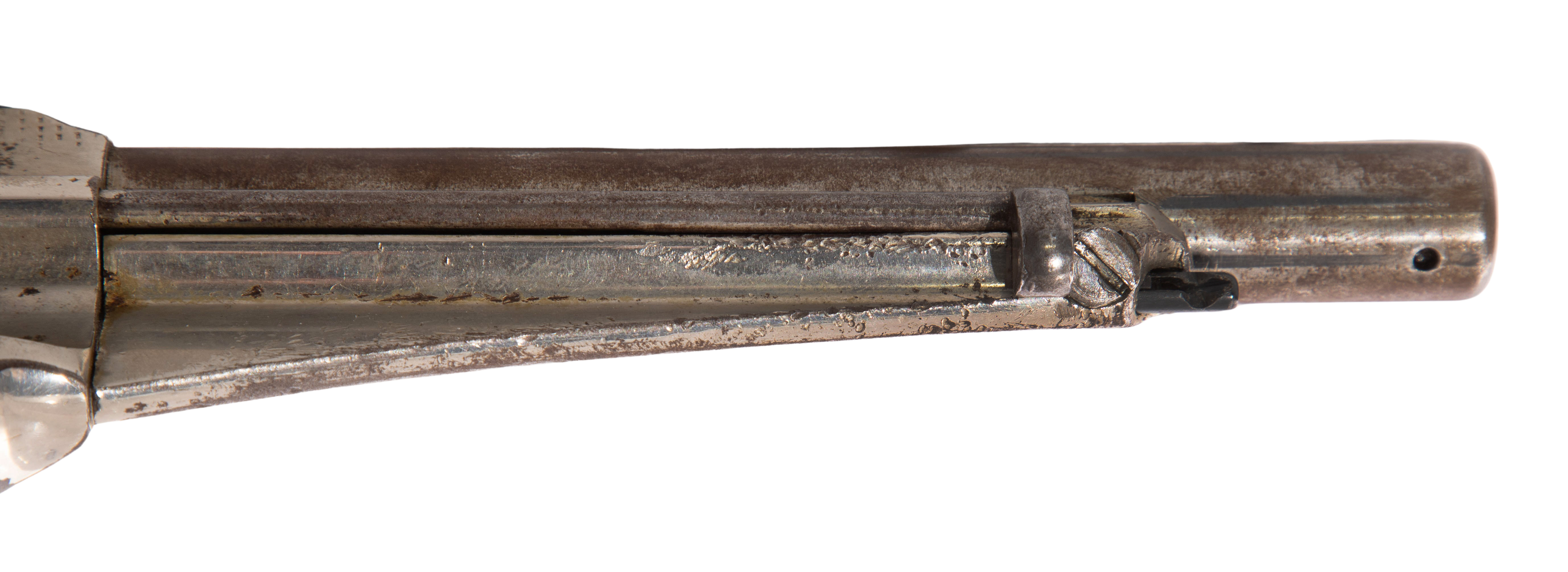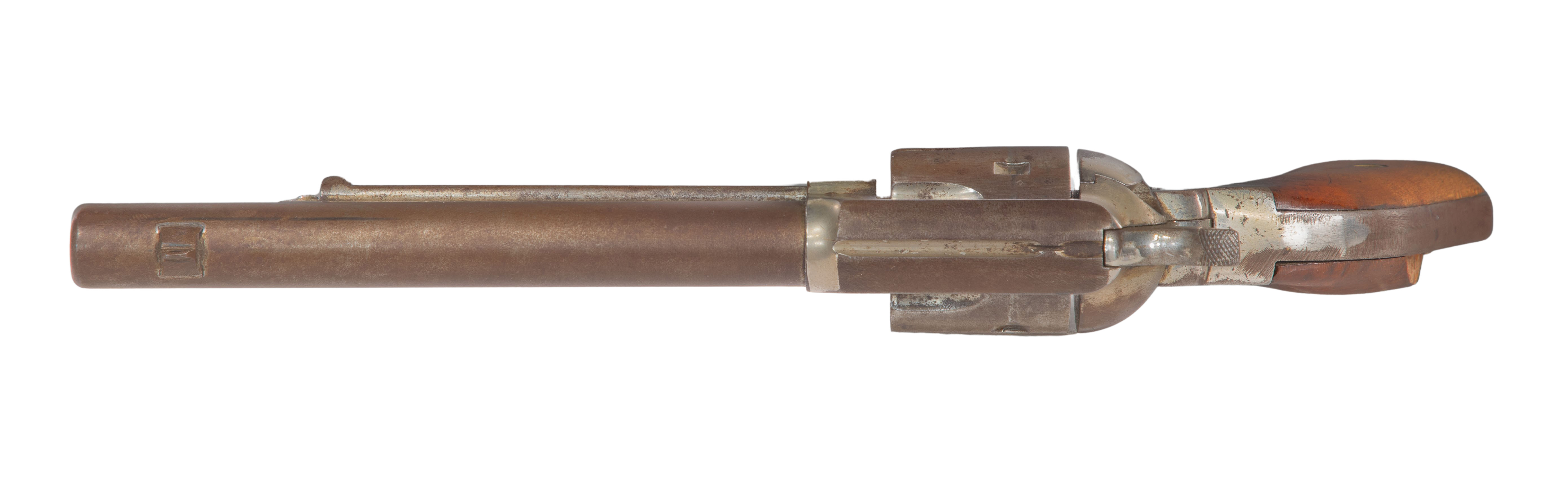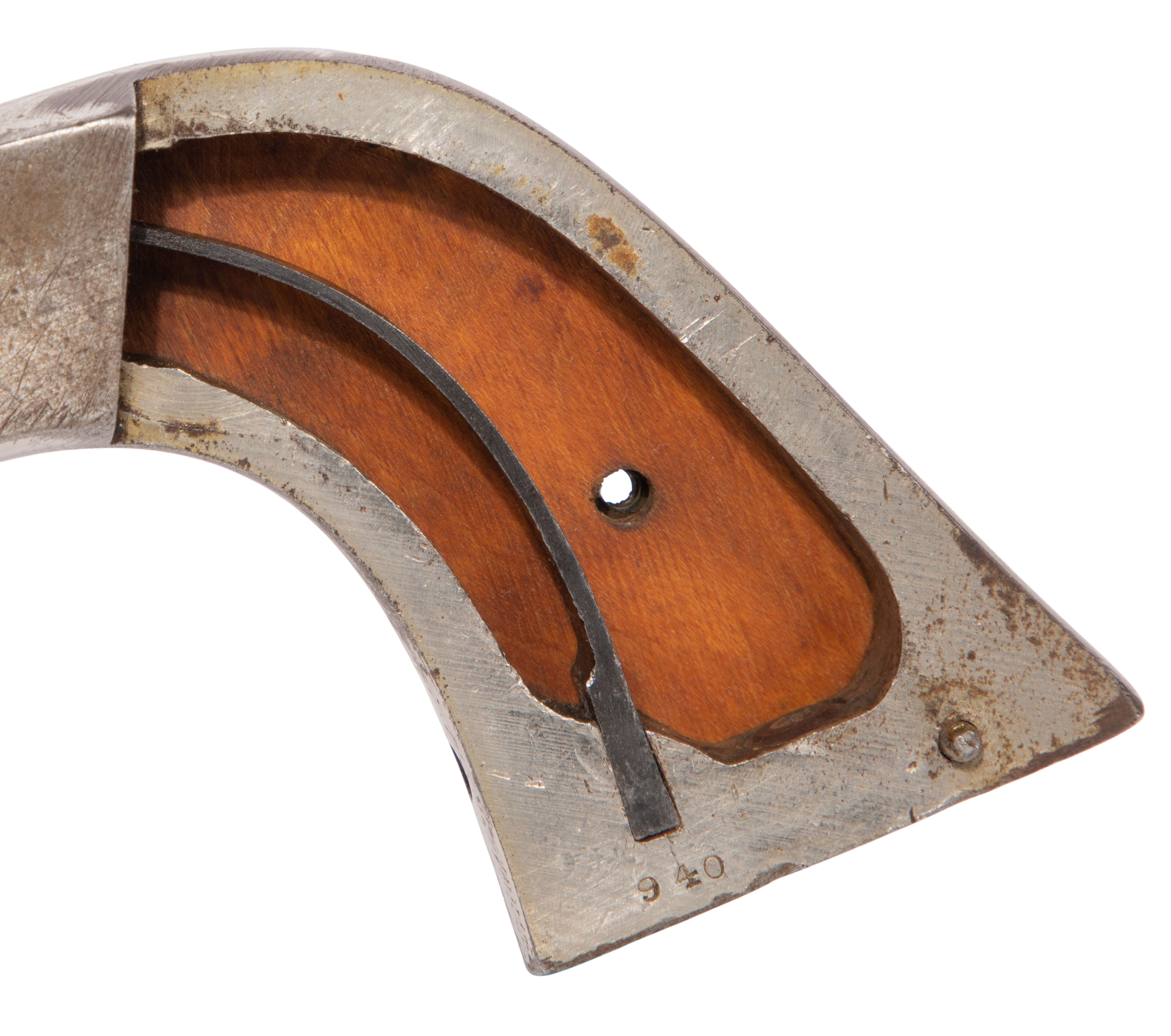 44 caliber having a 6.5-inch barrel, marked 44 on trigger guard and serial #940 under wood grip