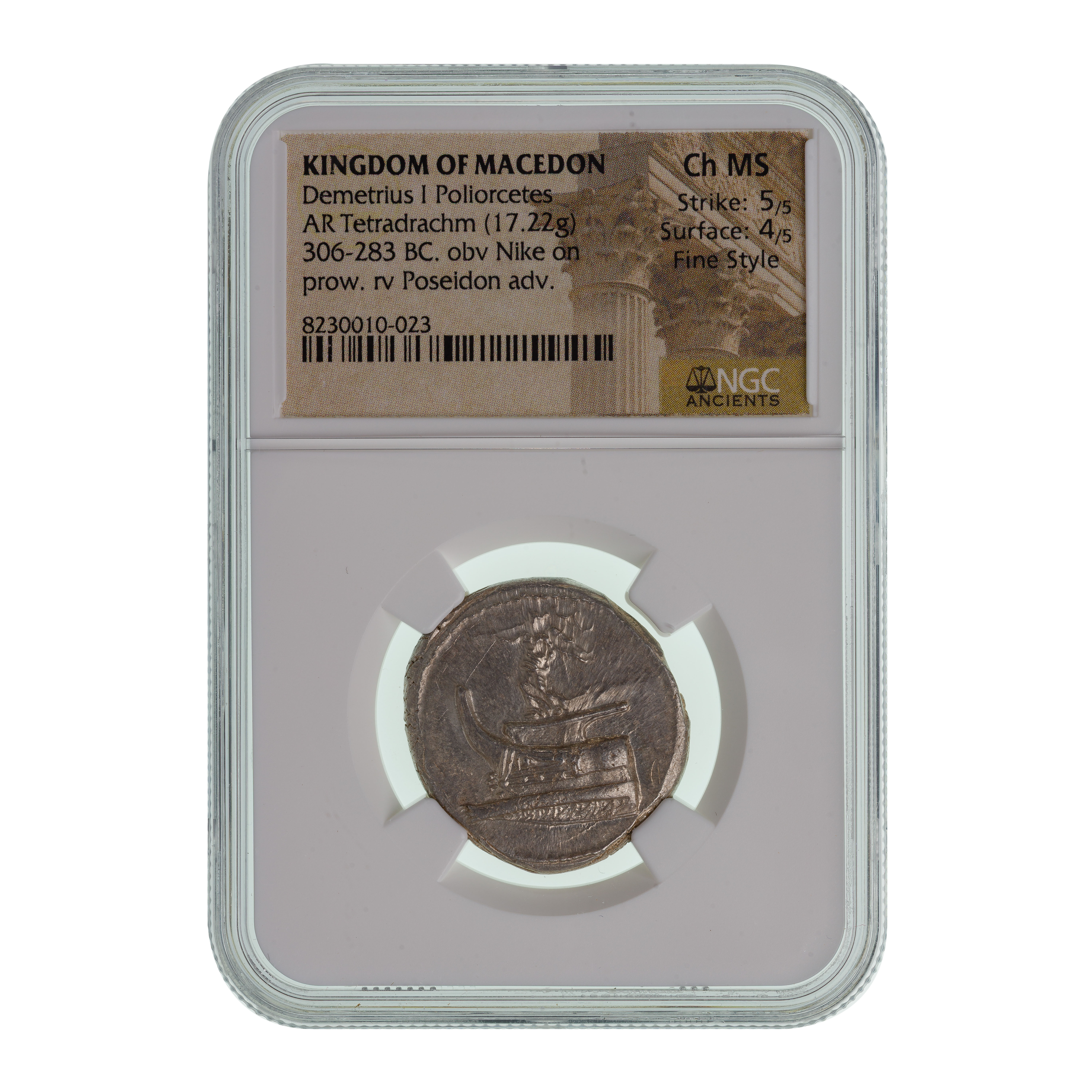 KINGDOM OF MACEDON, Demetrius I Poliorcetes, AR Tetradrachm CH MS NGC