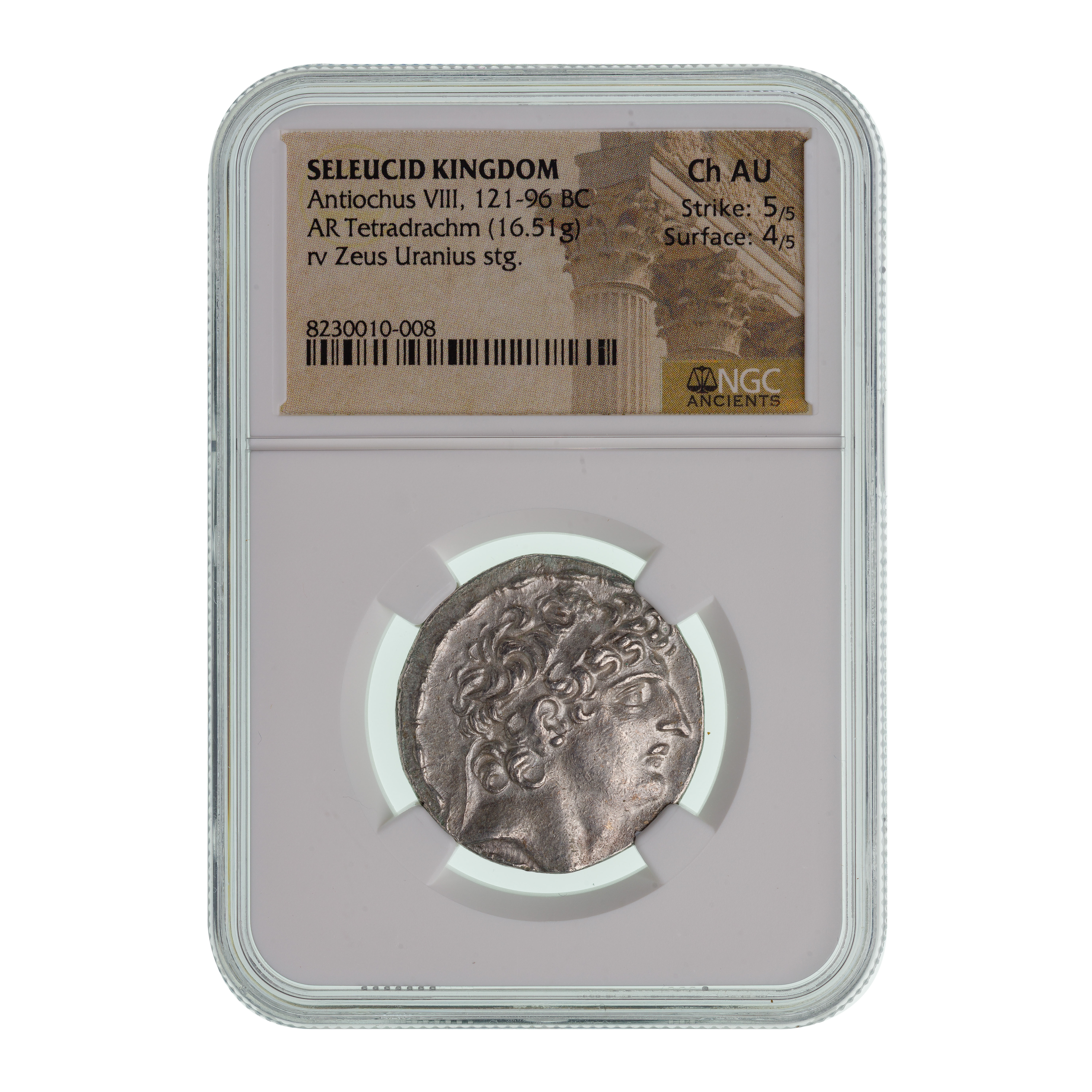 SELEUCID KINGDOM, Antiochus VIII, 121-96 BC, AR Tetradrachm CH AU NGC