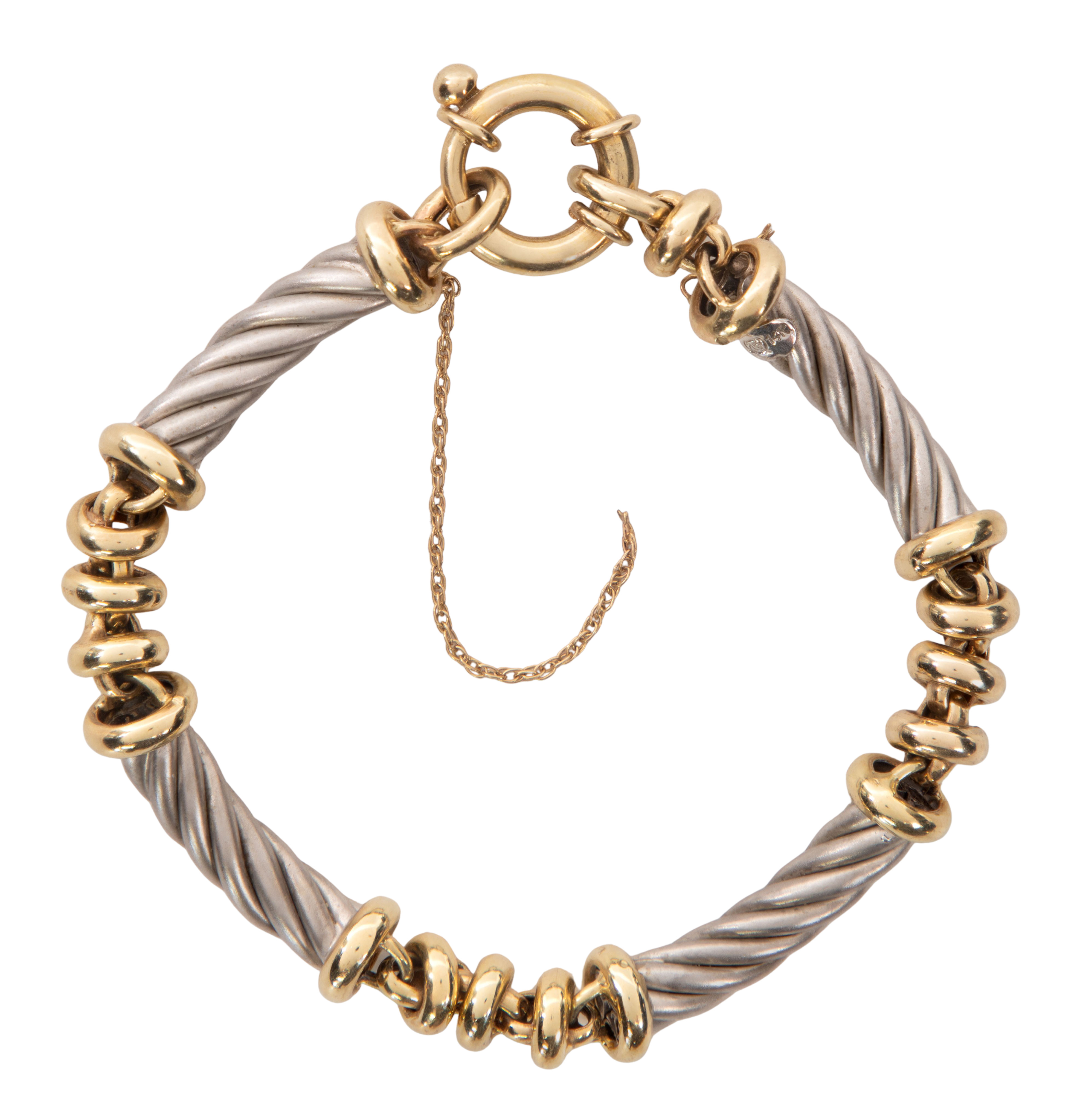 A two-toned twisted cable link style bracelet (hallmarked G and ’14k’)