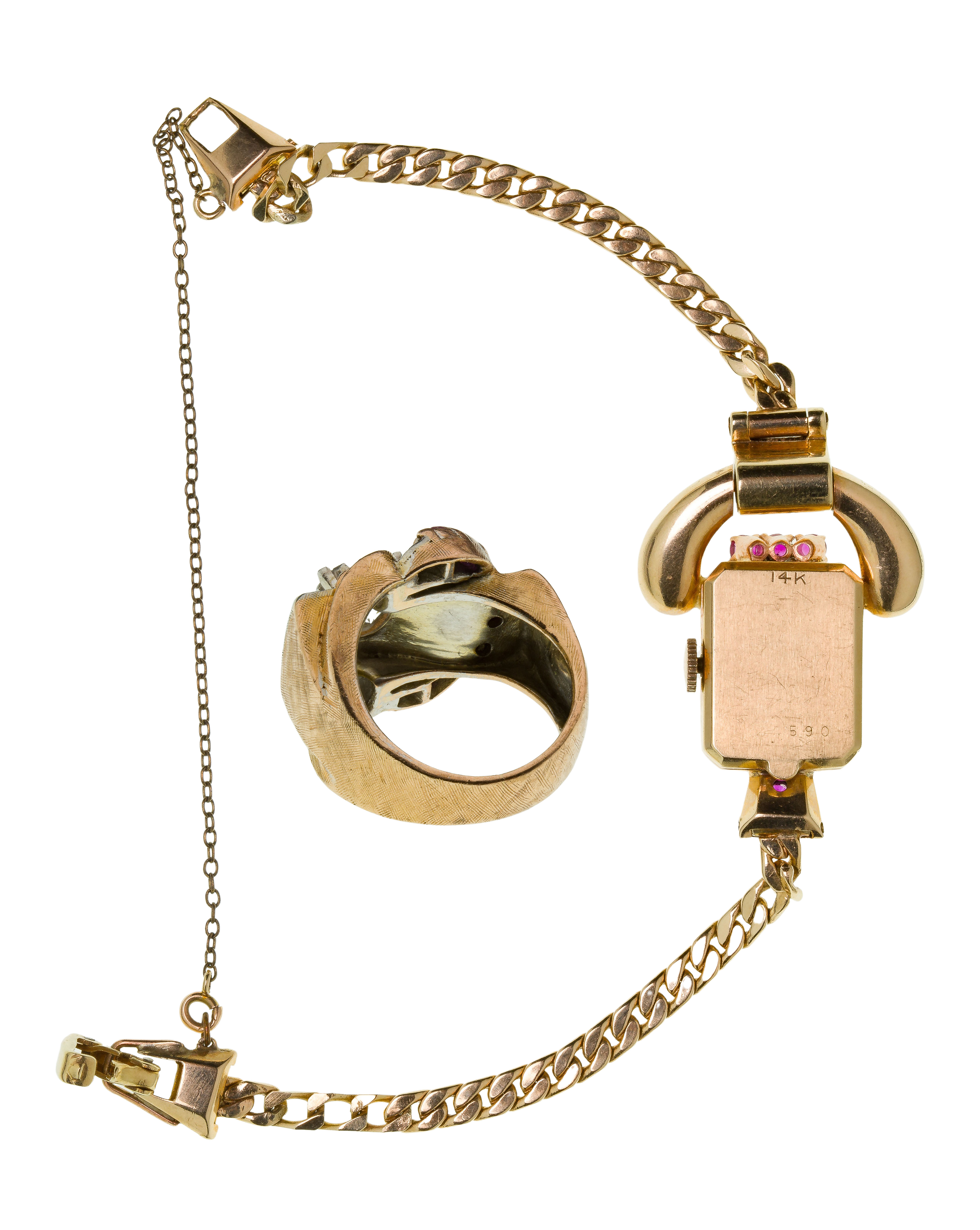 14k Gold Case and Band Wristwatch and Ring