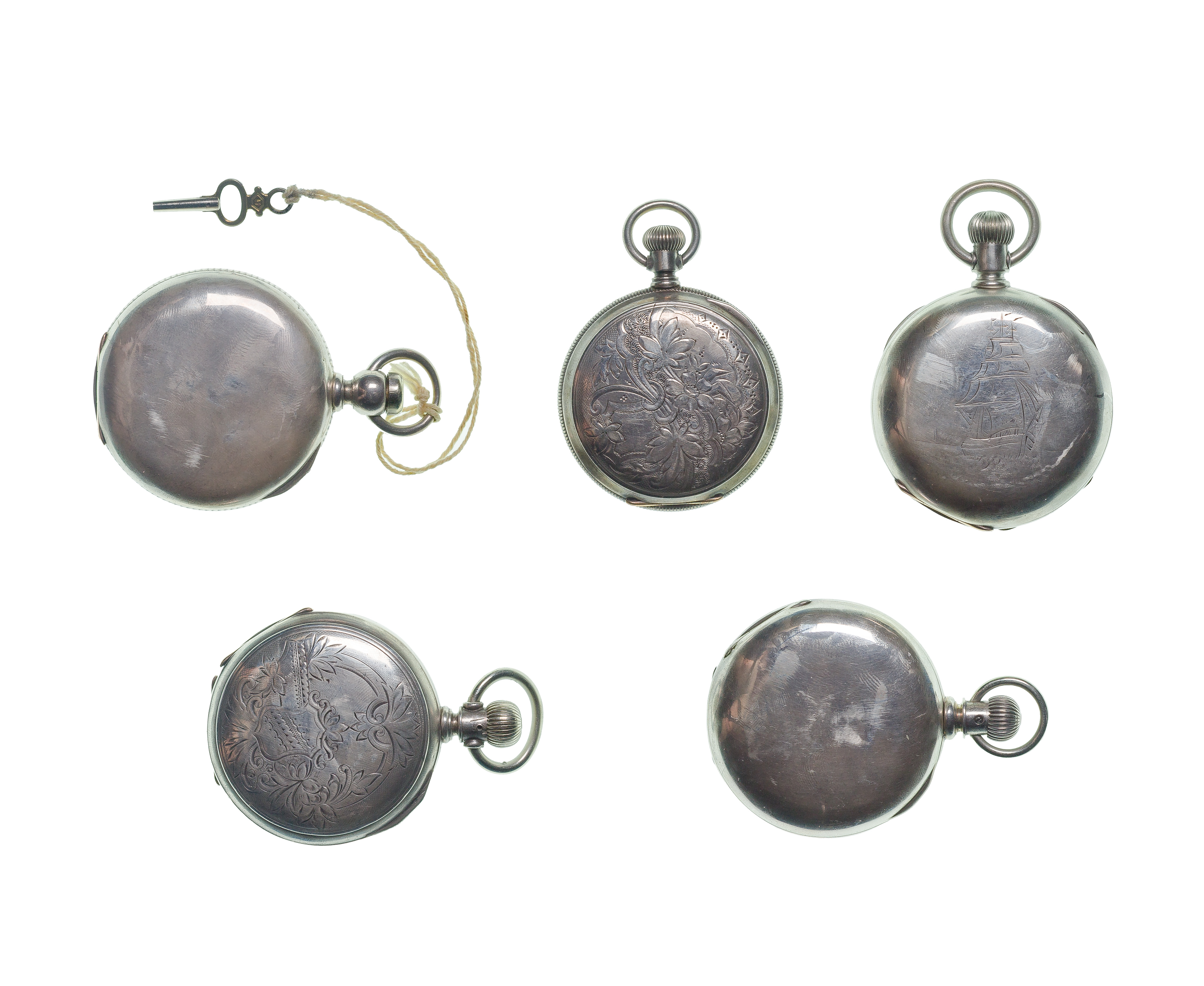 (5) items including (3) hunter case serial #15395102, #2416781 (having key) and #86000730 as well as (2) open face serial #14378891 and #2349550 (all marked ‘coin’)