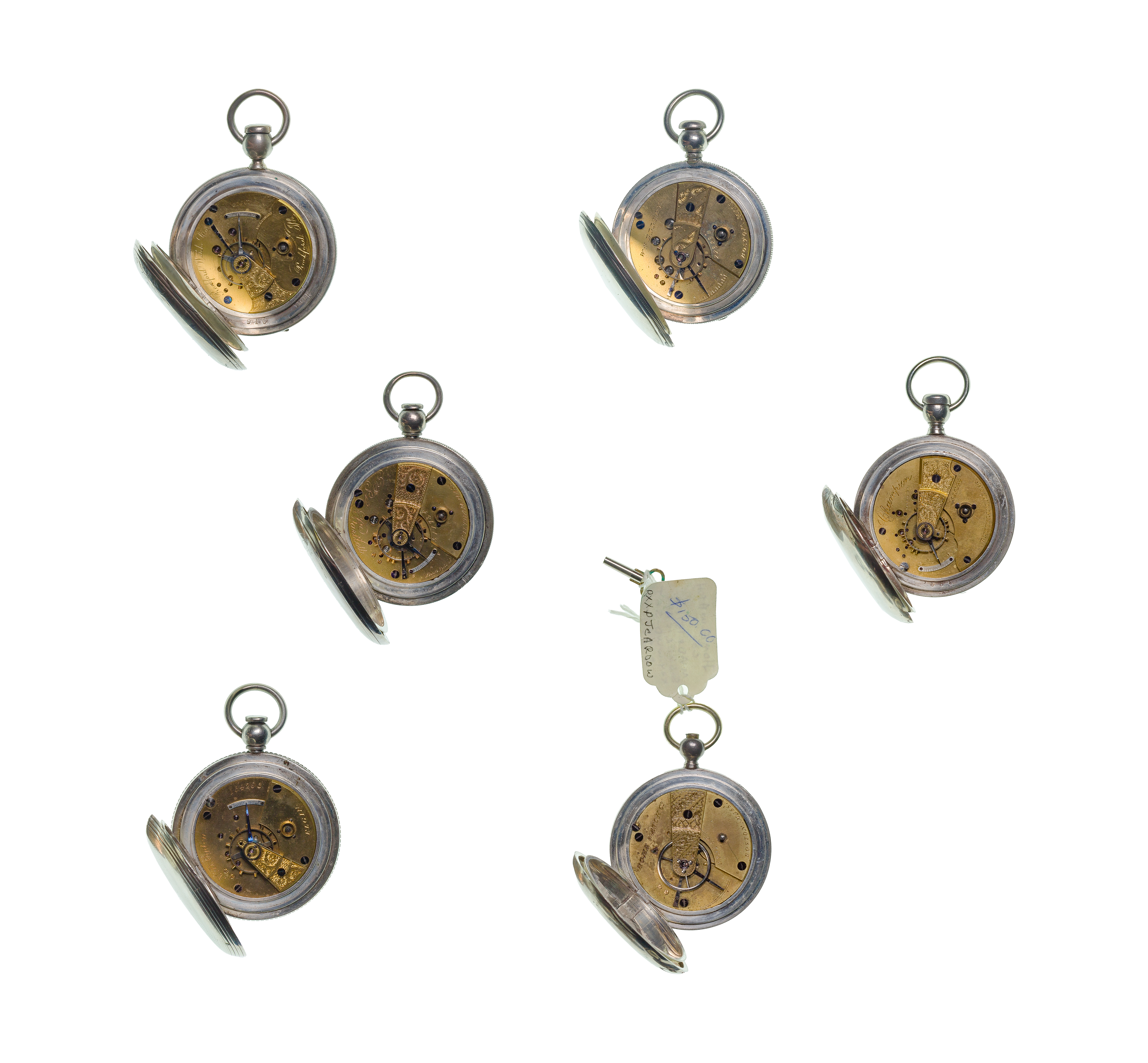 (6) items including an unmarked key wind including key, (2) American Watch Company, a Rockford Watch Company, a Champion and a National (all marked ‘Warranted Coin Silver’)